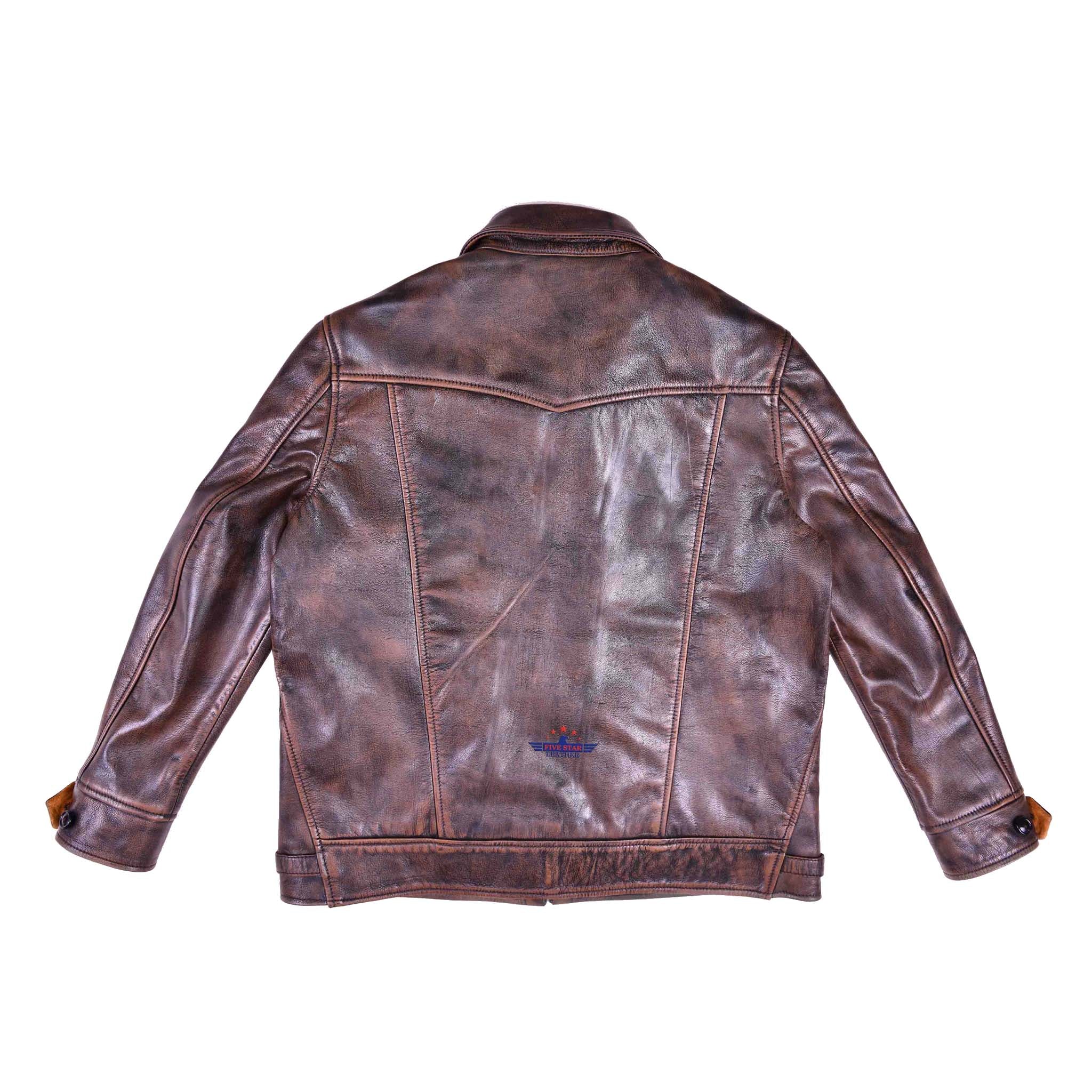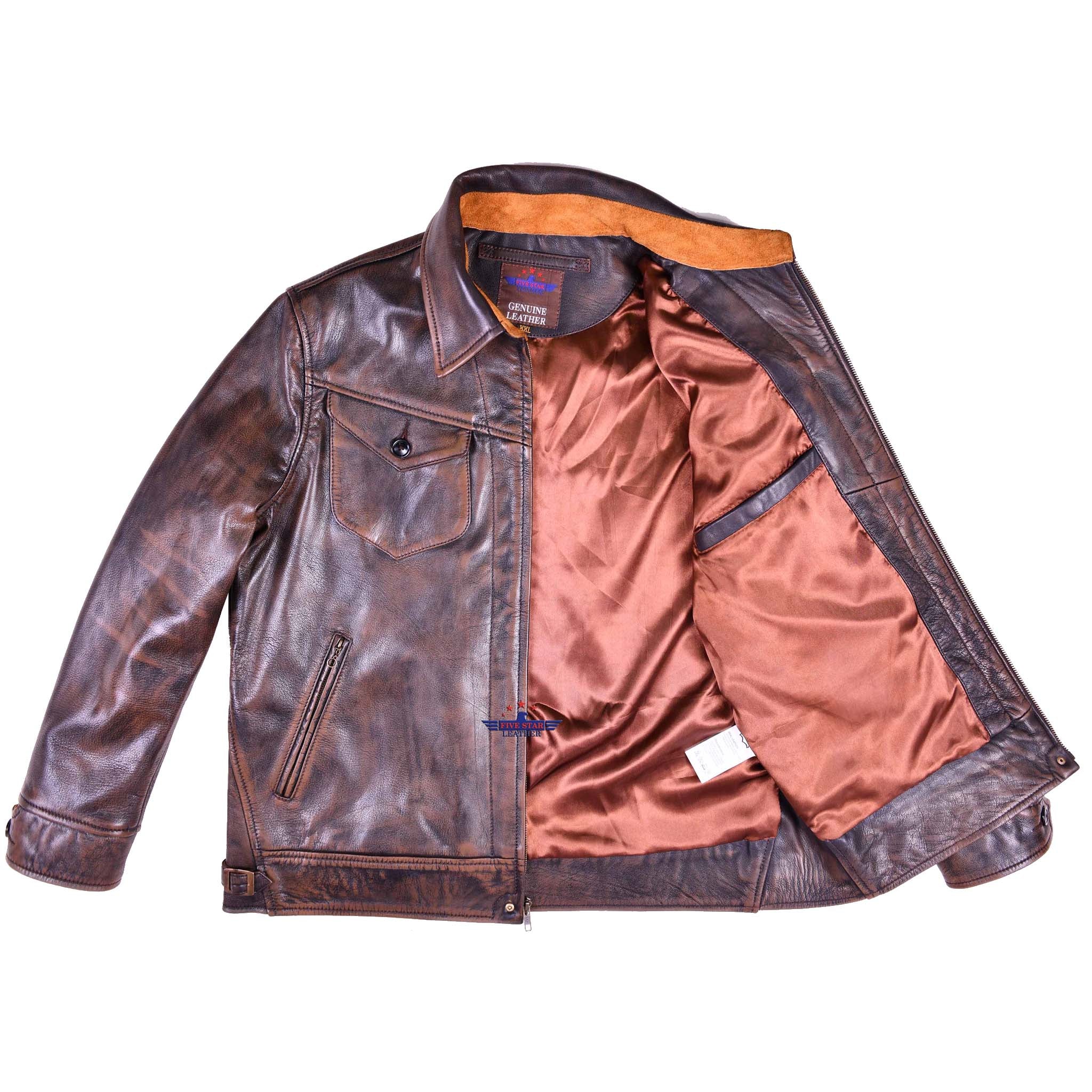 FiveStar Leather Men Classic Vintage look Ranch Jacket Real Goatskin Leather