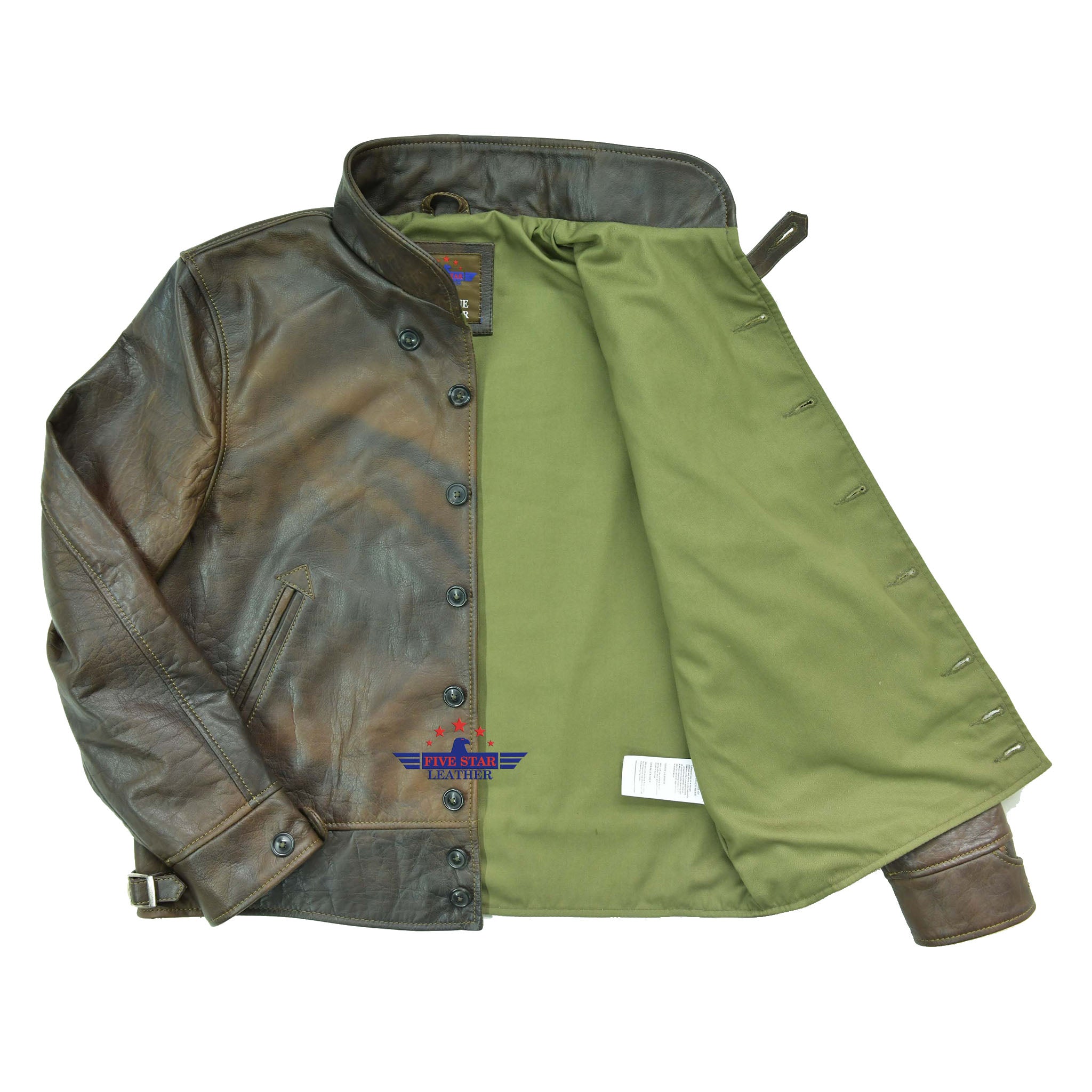 Men's Repro 1930'S Vintage Cossack Real Leather Buffalo Distressed Jacket