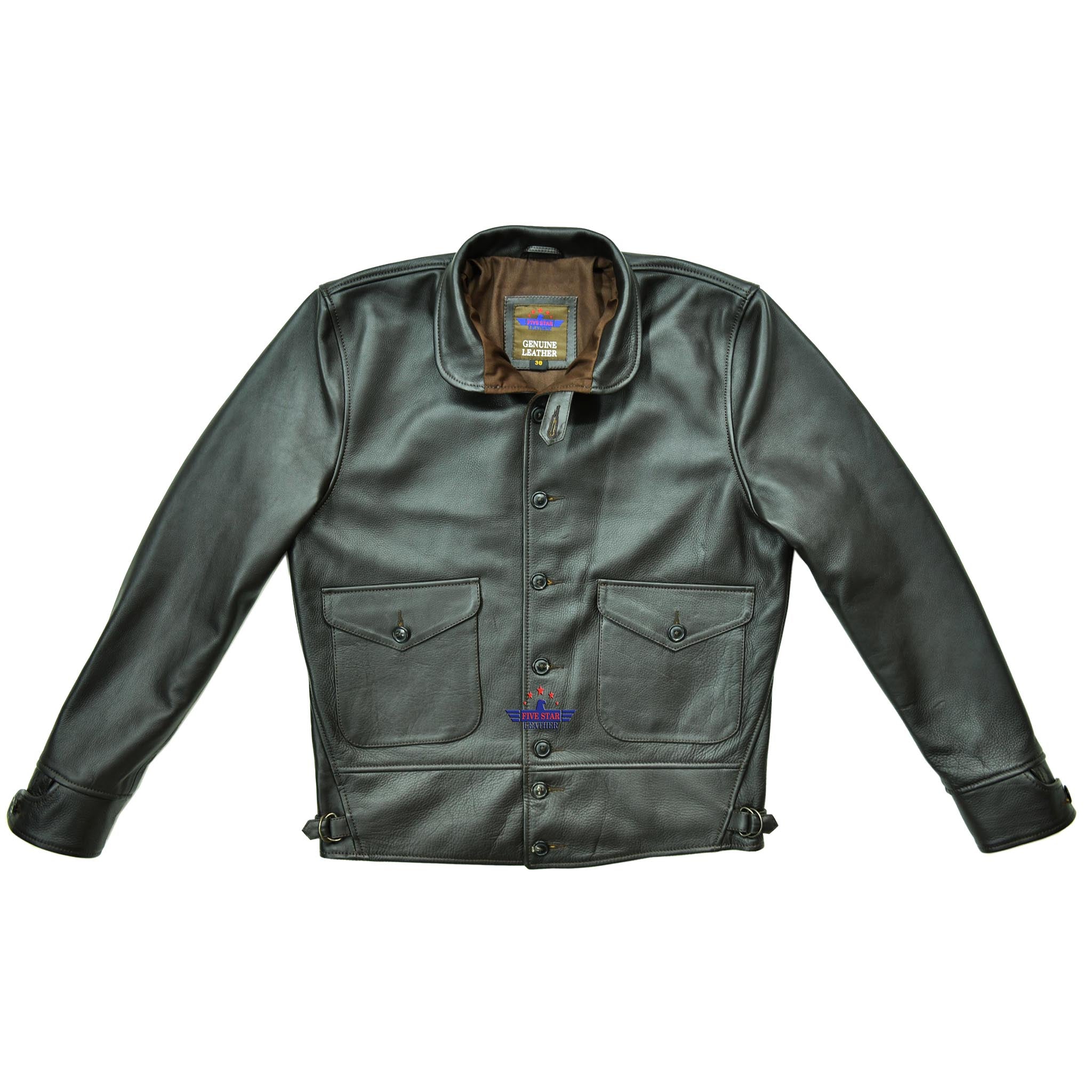 Men's Repro 1930's Vintage Cossack Real Seal Brown Cowhide Leather Jacket