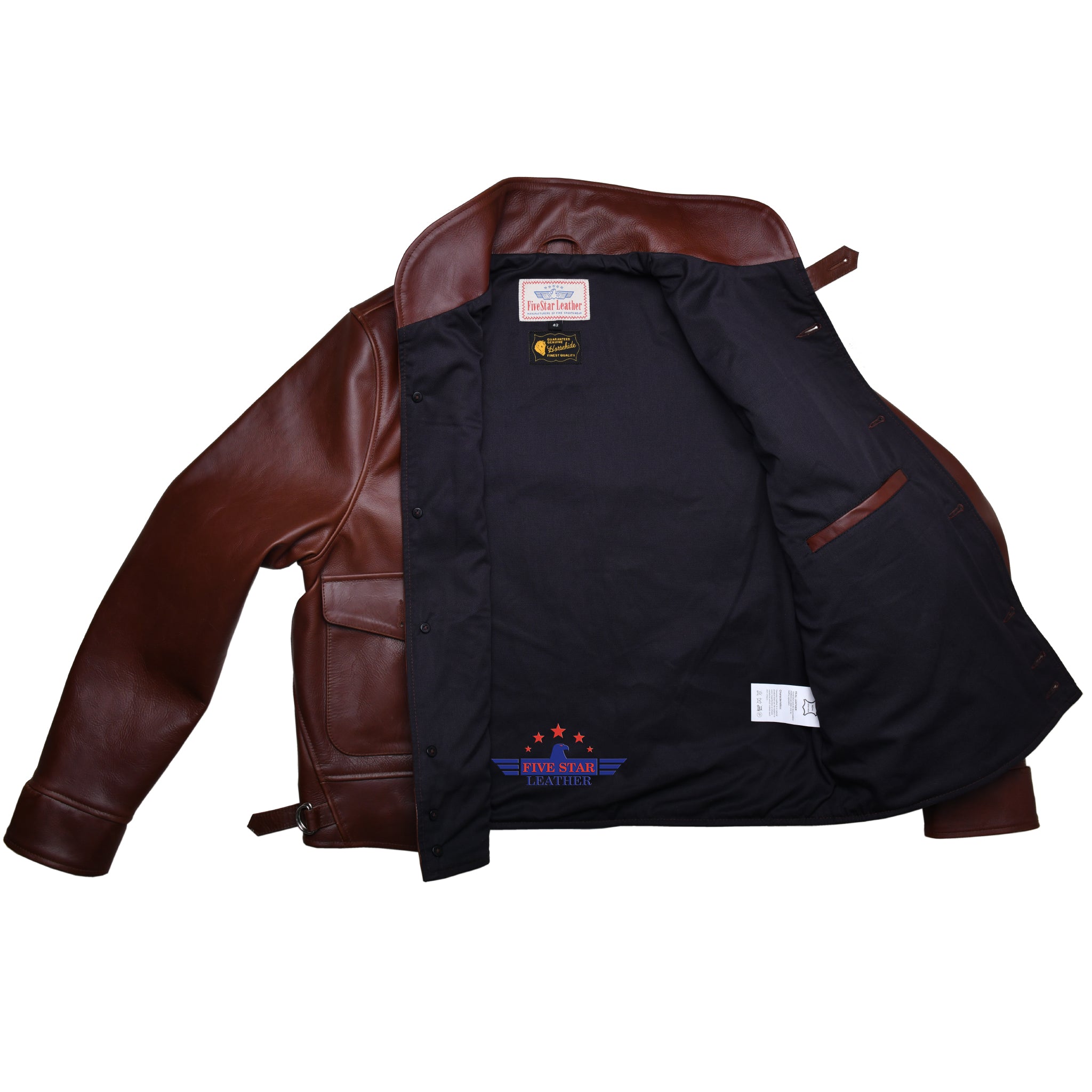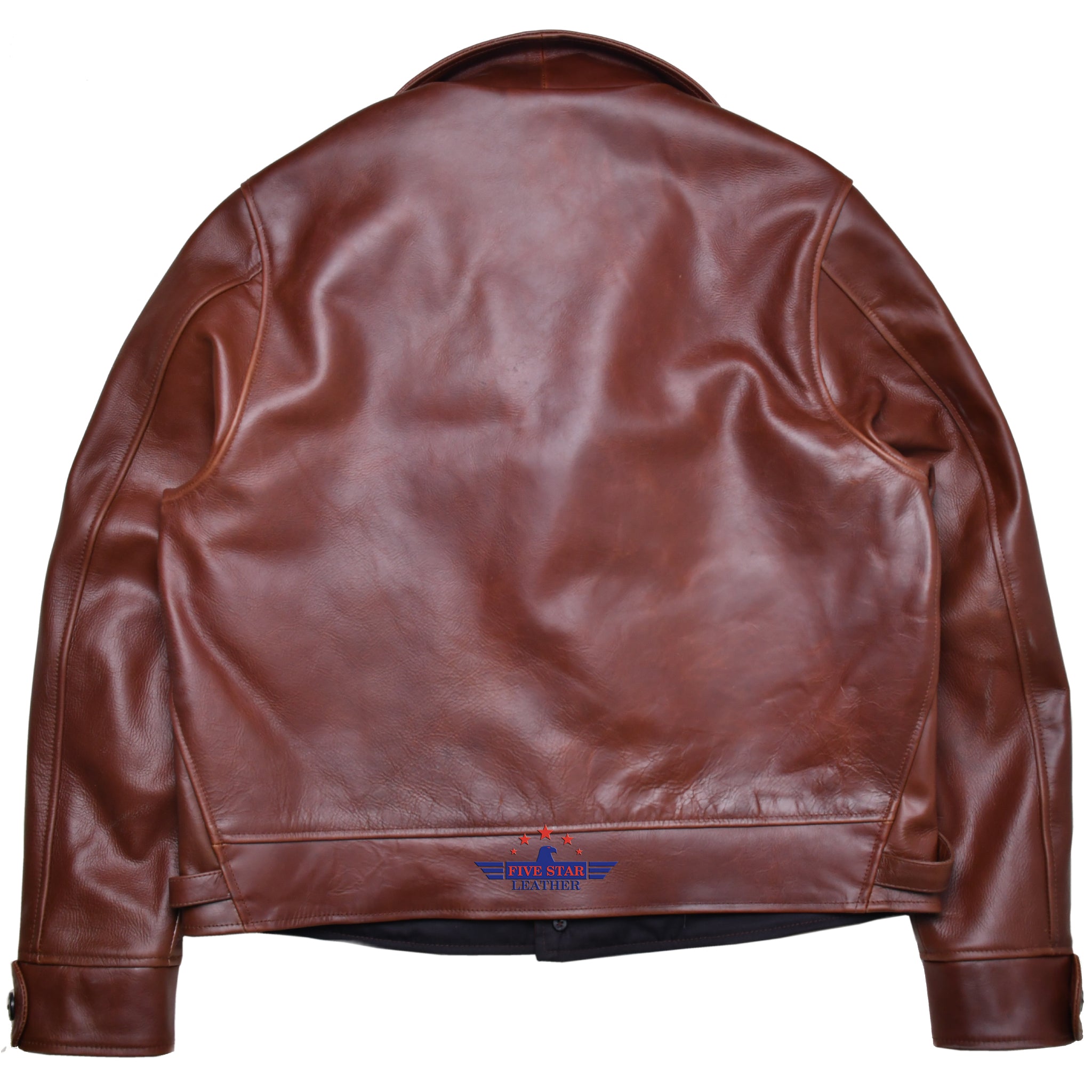 Men's Repro 1930s Vintage Cossack Real Horse Hide Brown Pull up Leather Jacket