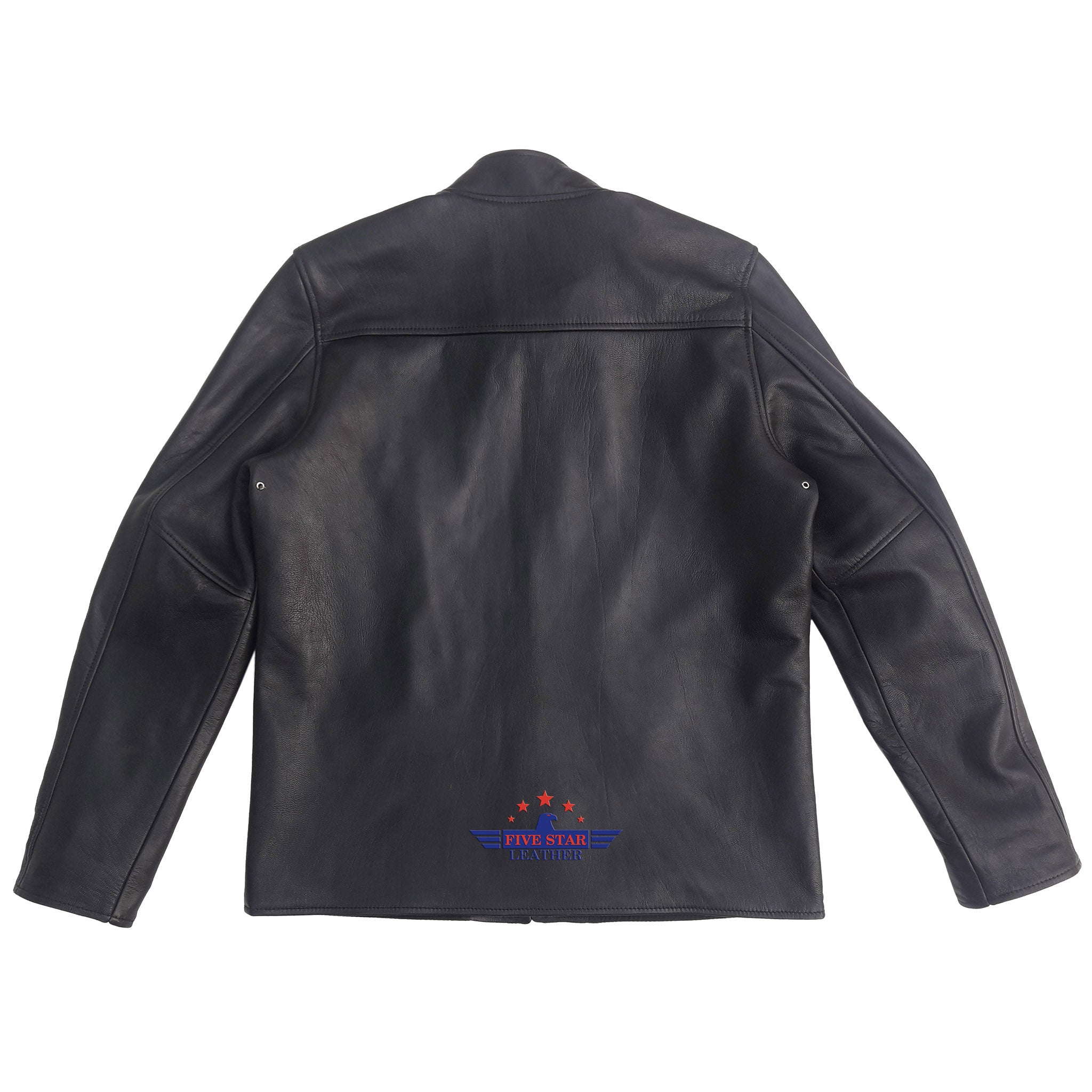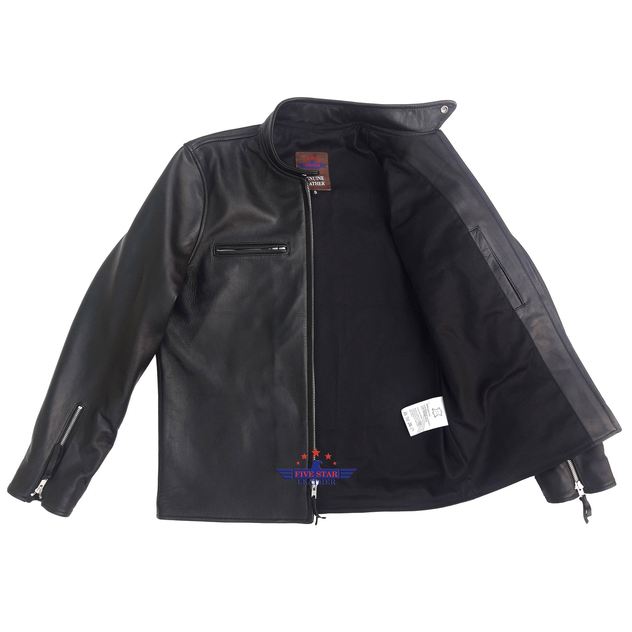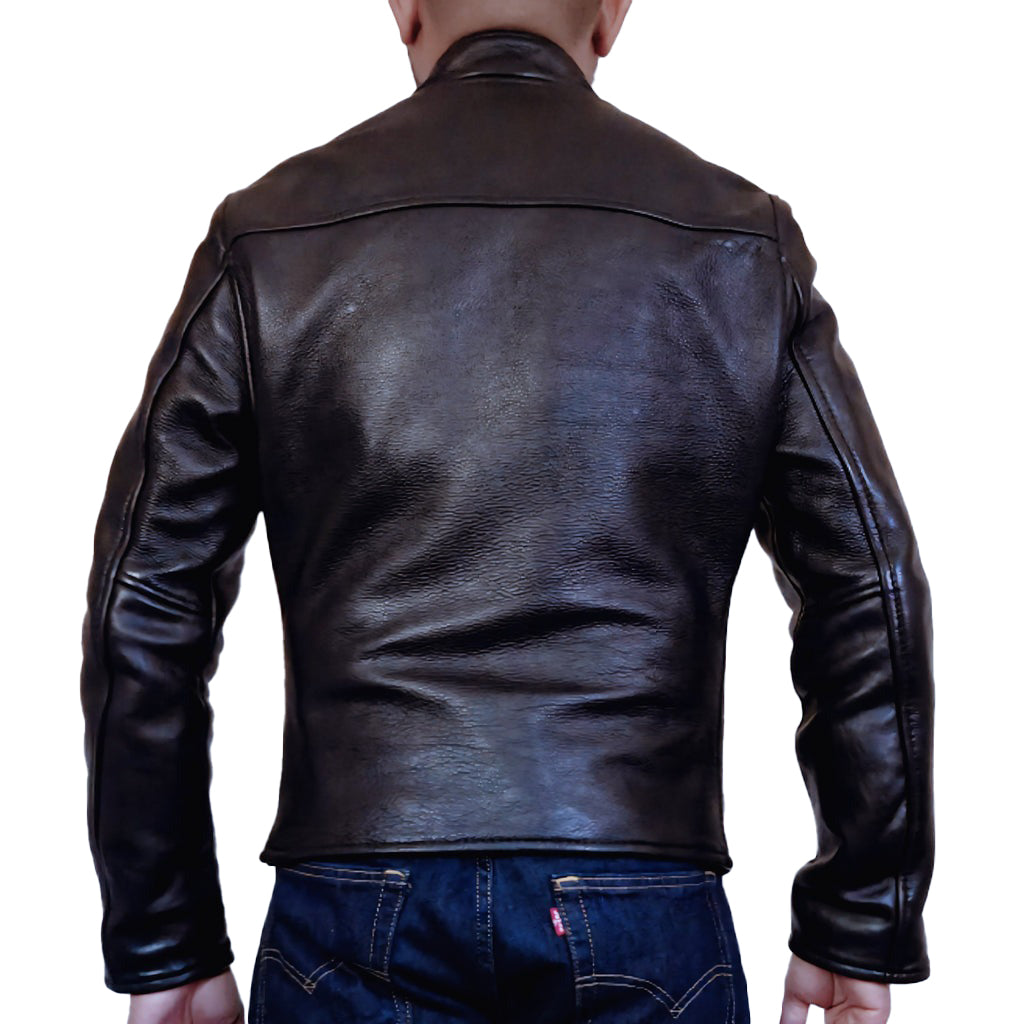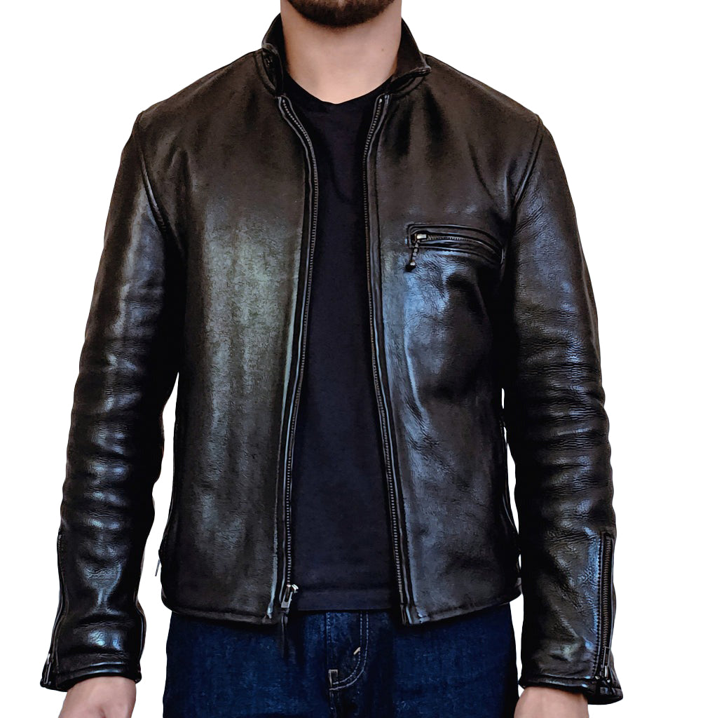Mens Vintage Cafe Racer Black Geniune Goatskin Leather Slim Fit Racer Jacket