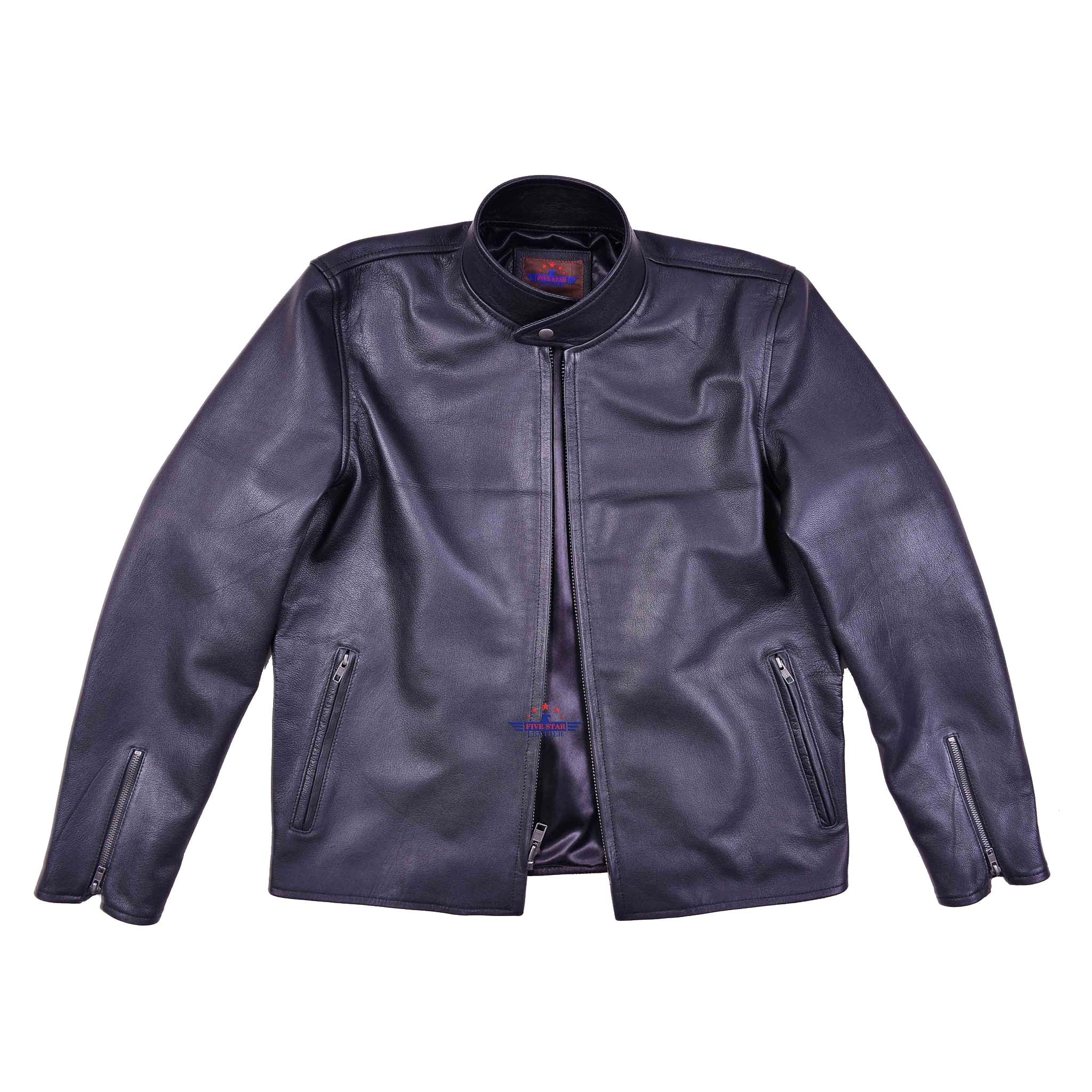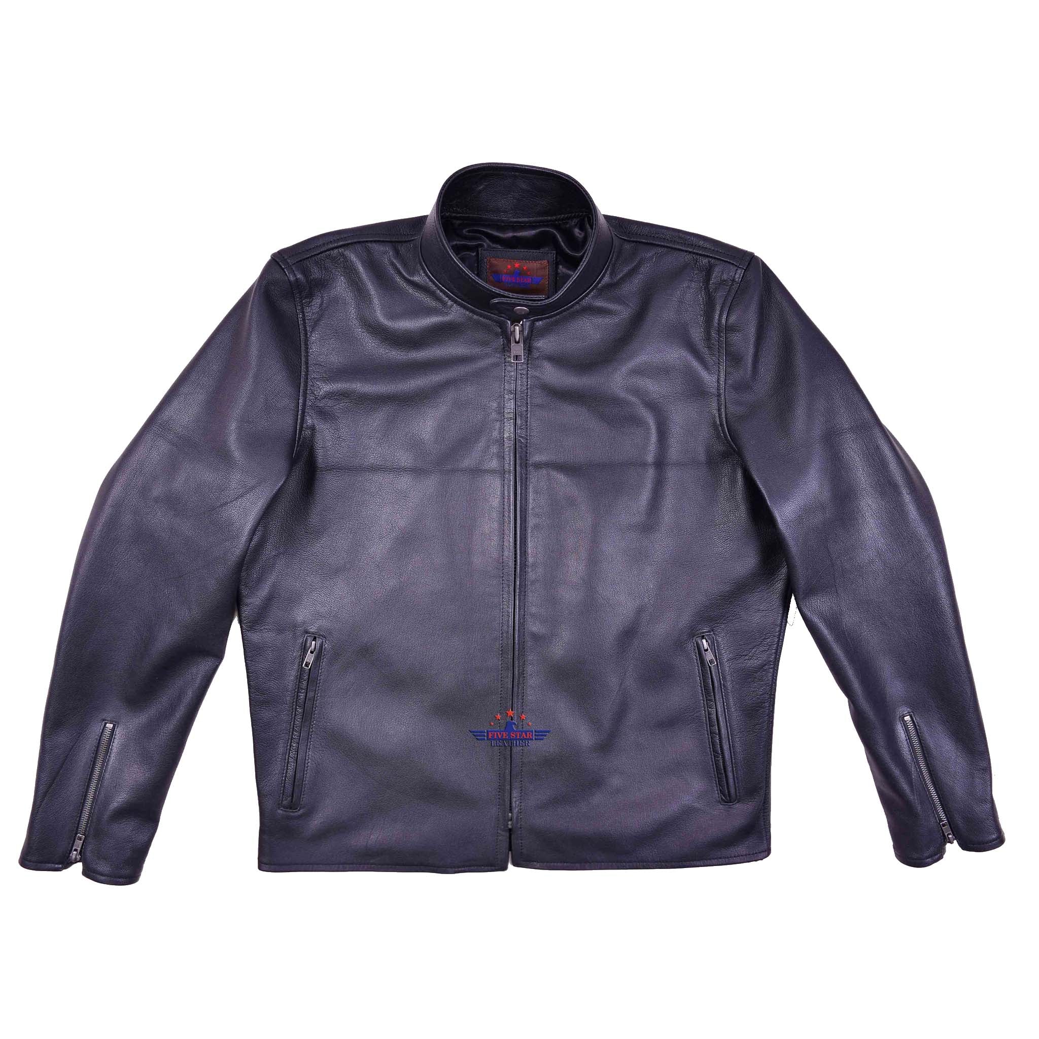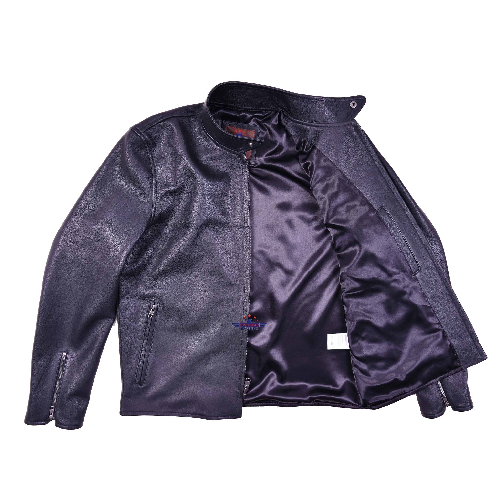 FiveStar Leather Men's Vintage Cafe Racer Goatskin Leather Jacket