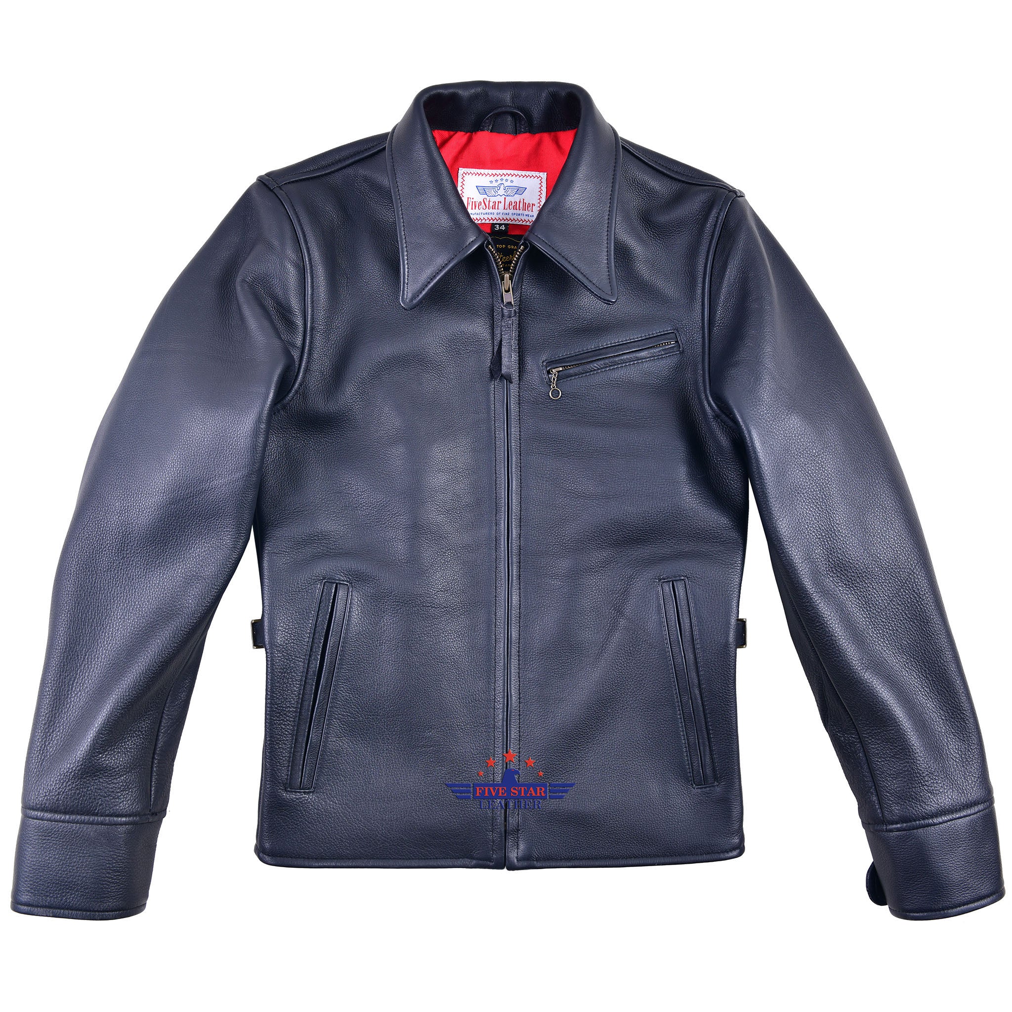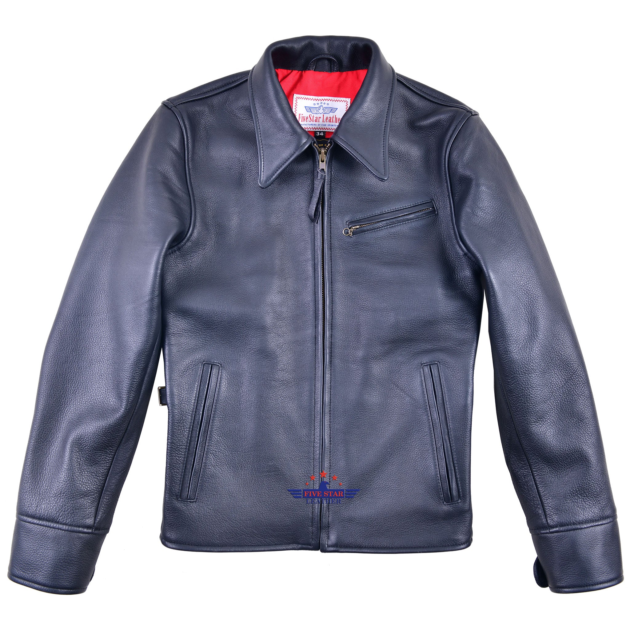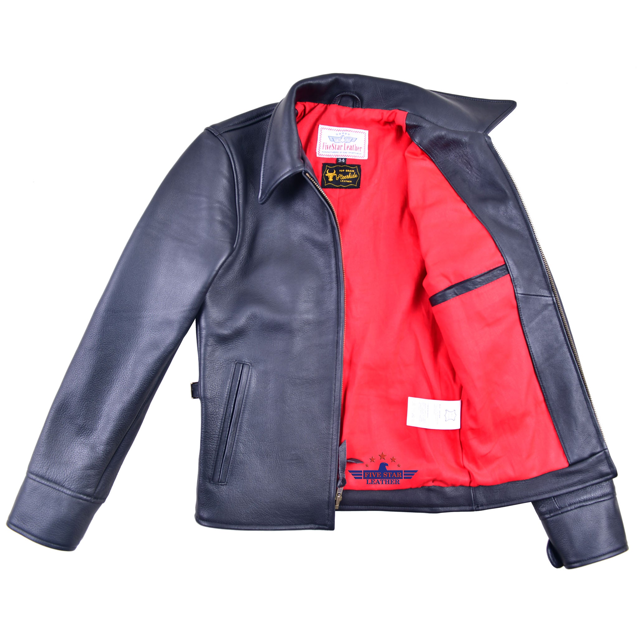 FiveStar Leather Vintage Custom 1930s Steer hide Leather Jacket Black