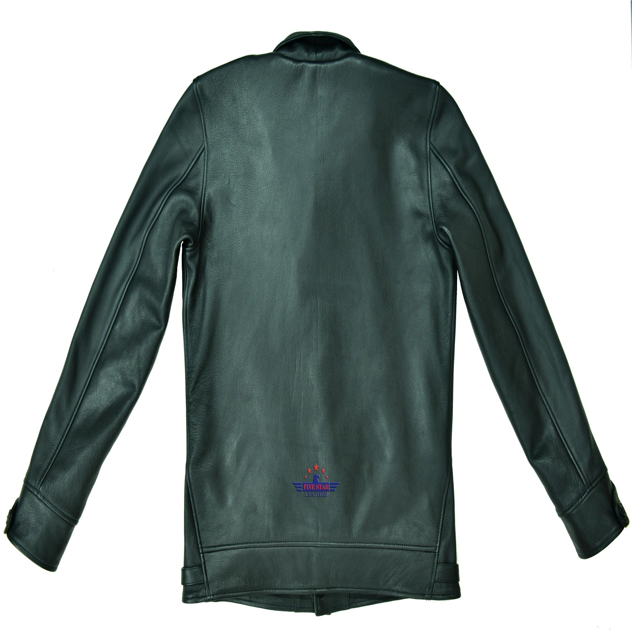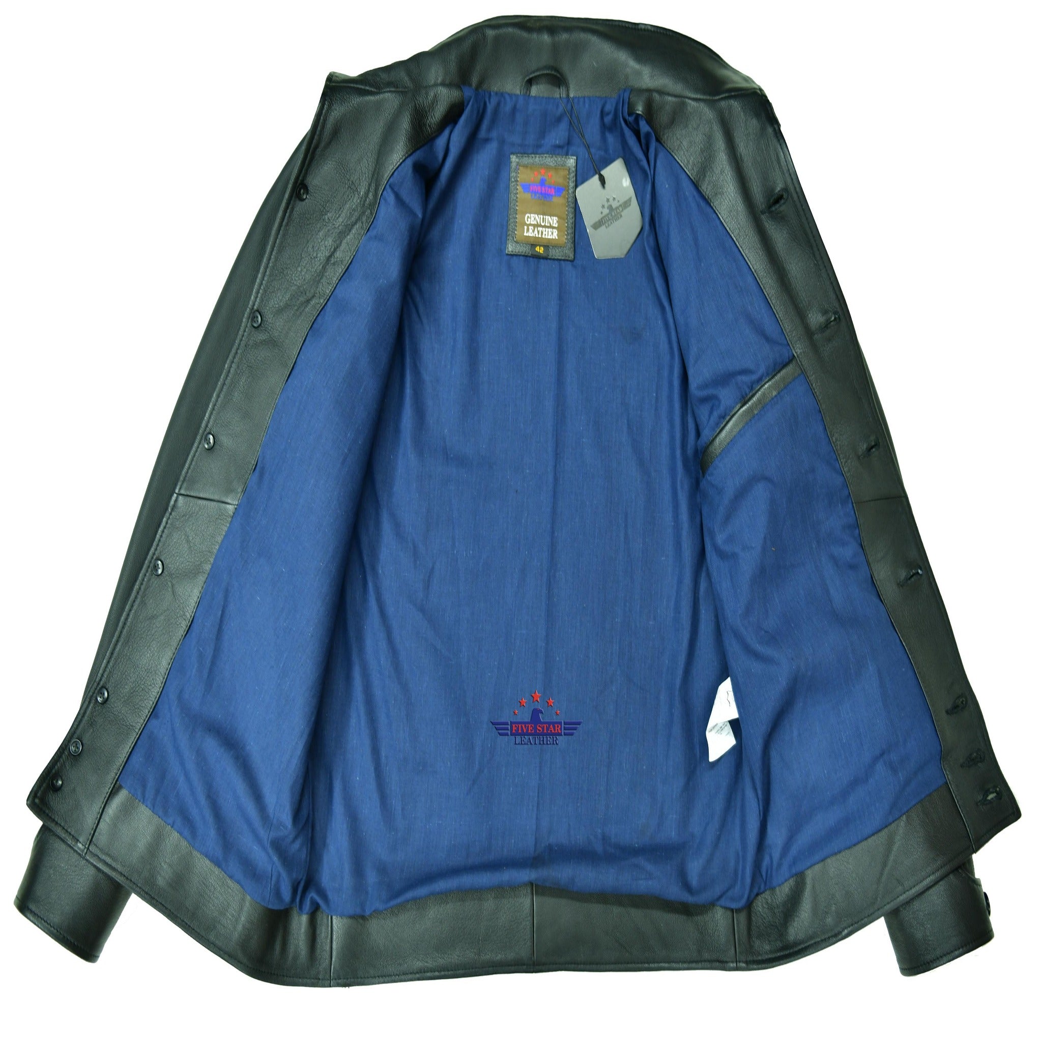 Men's Real Goatskin Brakeman Coat Jacket with Stand-Up Shawl Collar and Vintage Front Button