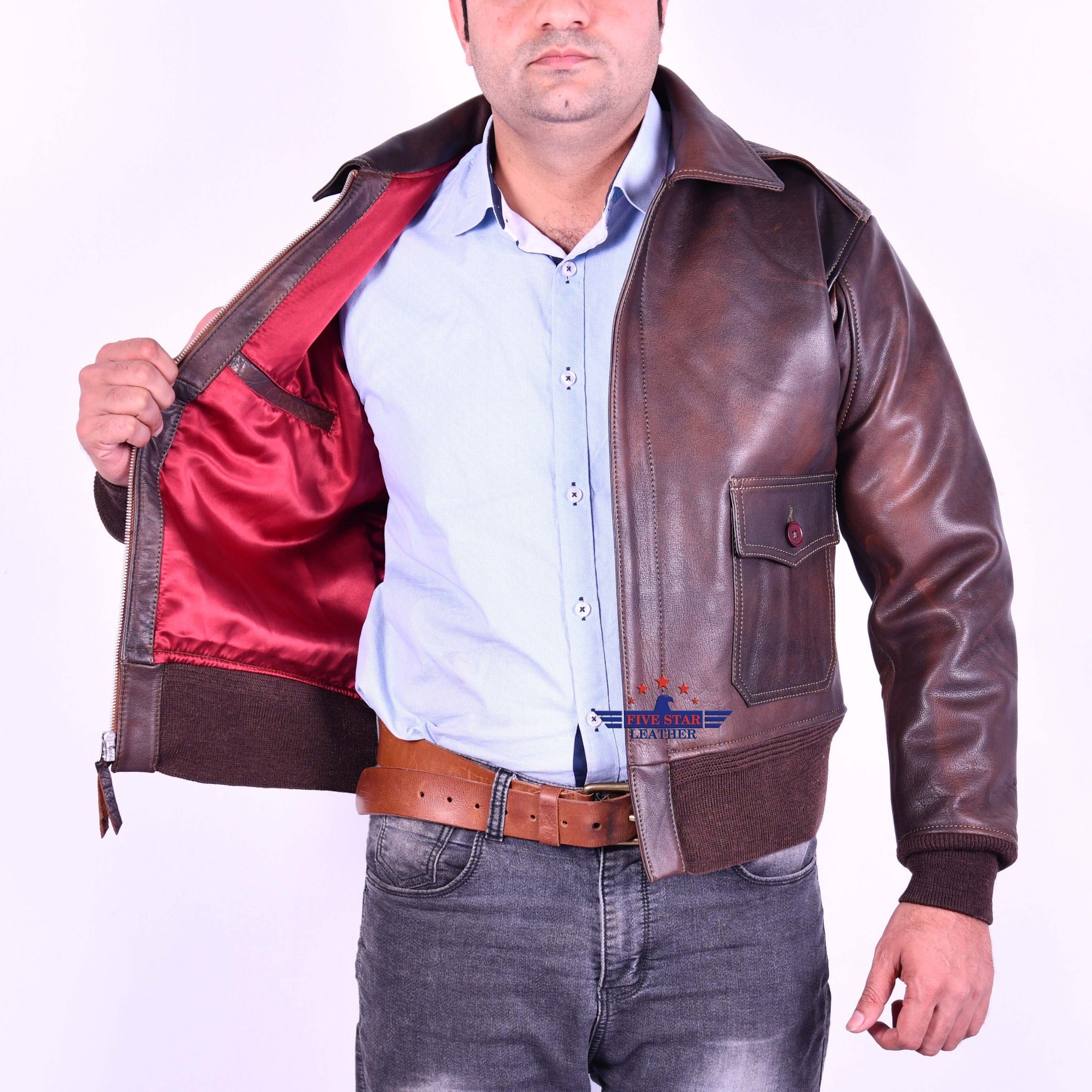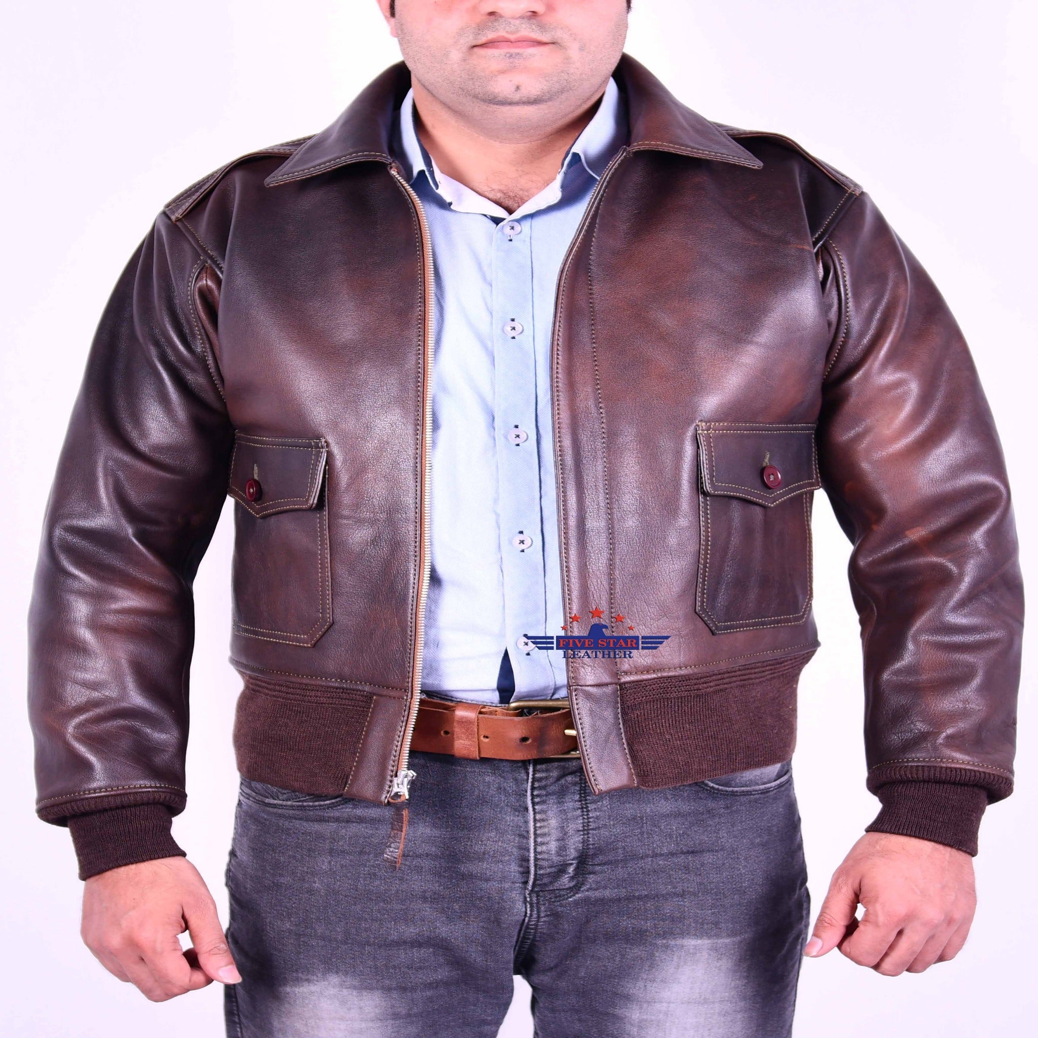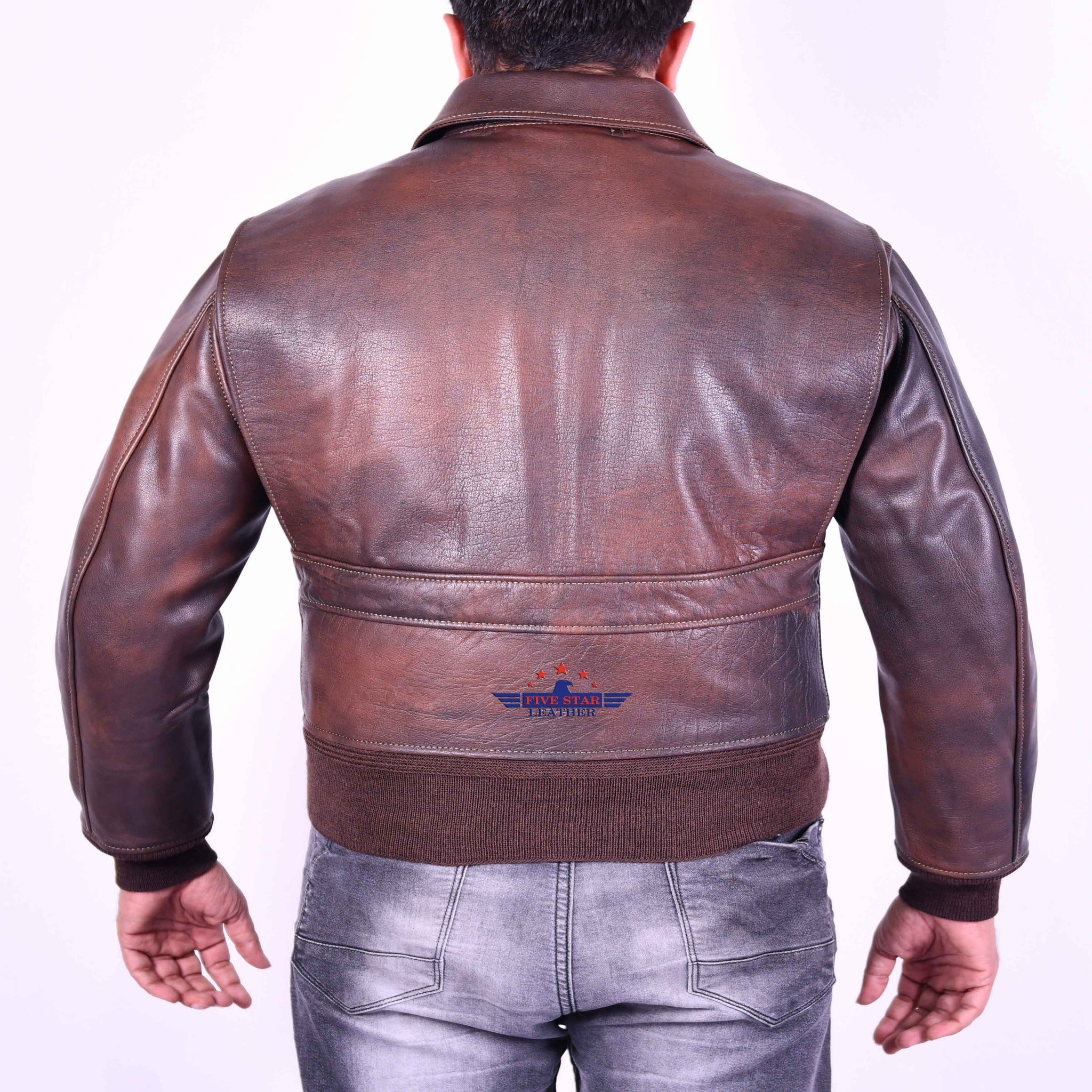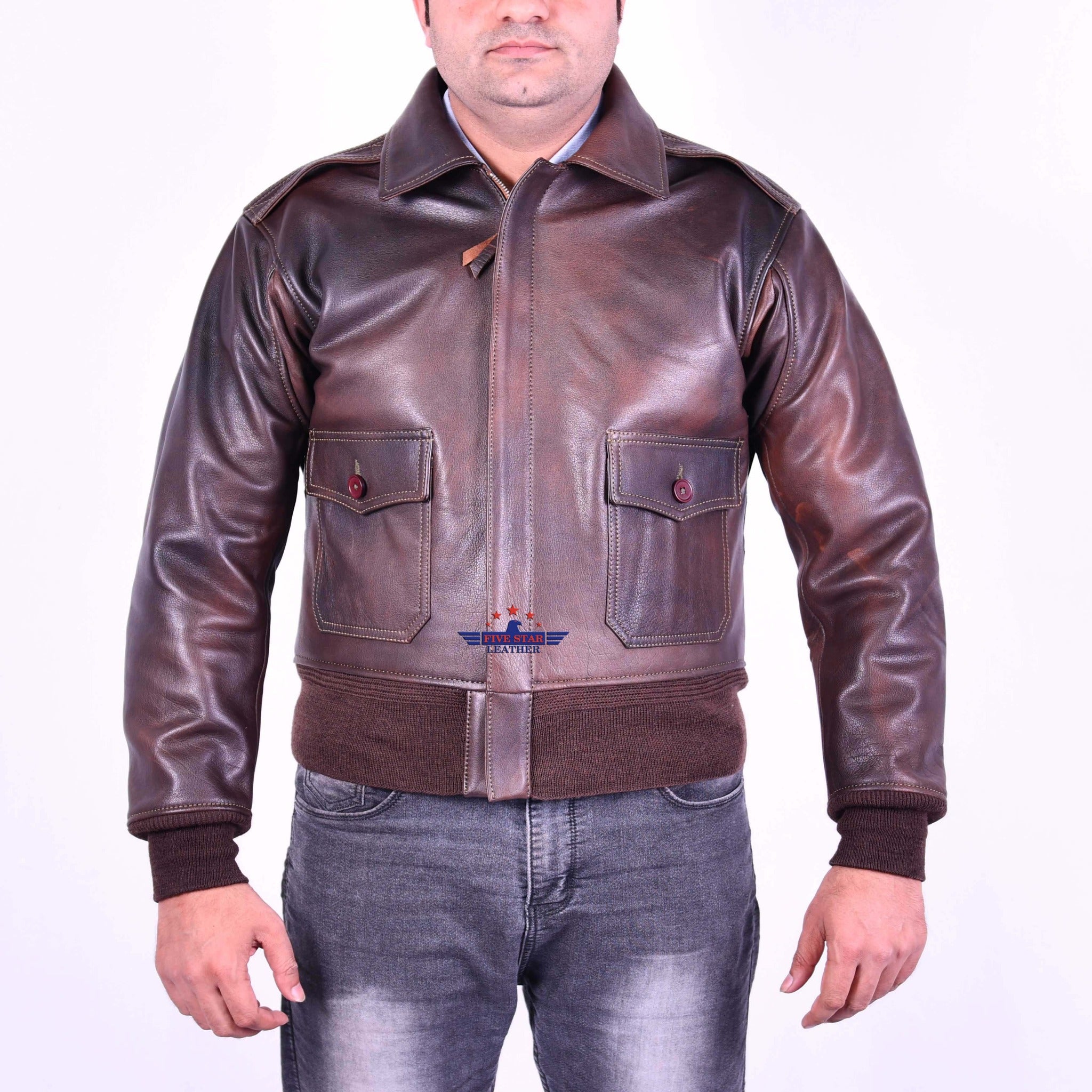 FiveStar Leather Vintage WWII ANJ-3 Army and Navy Real Leather Flight Jacket