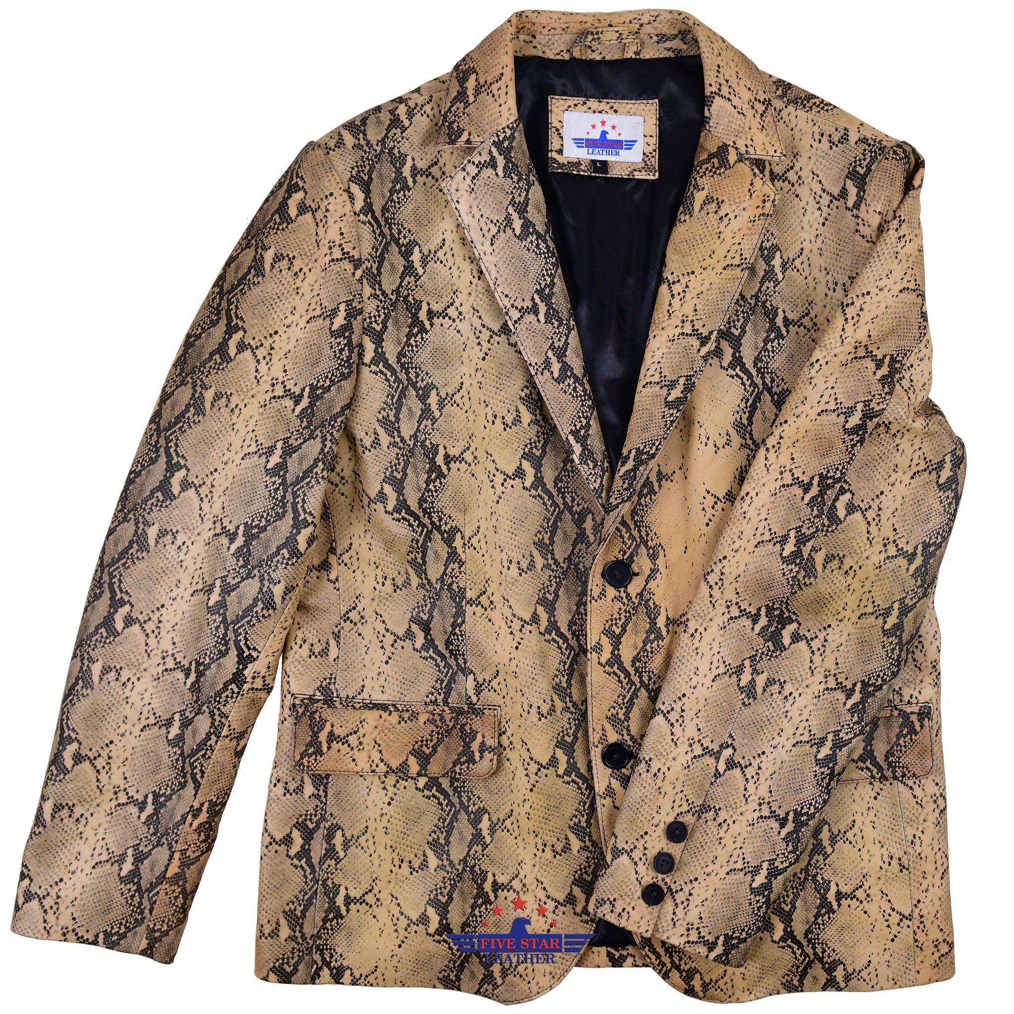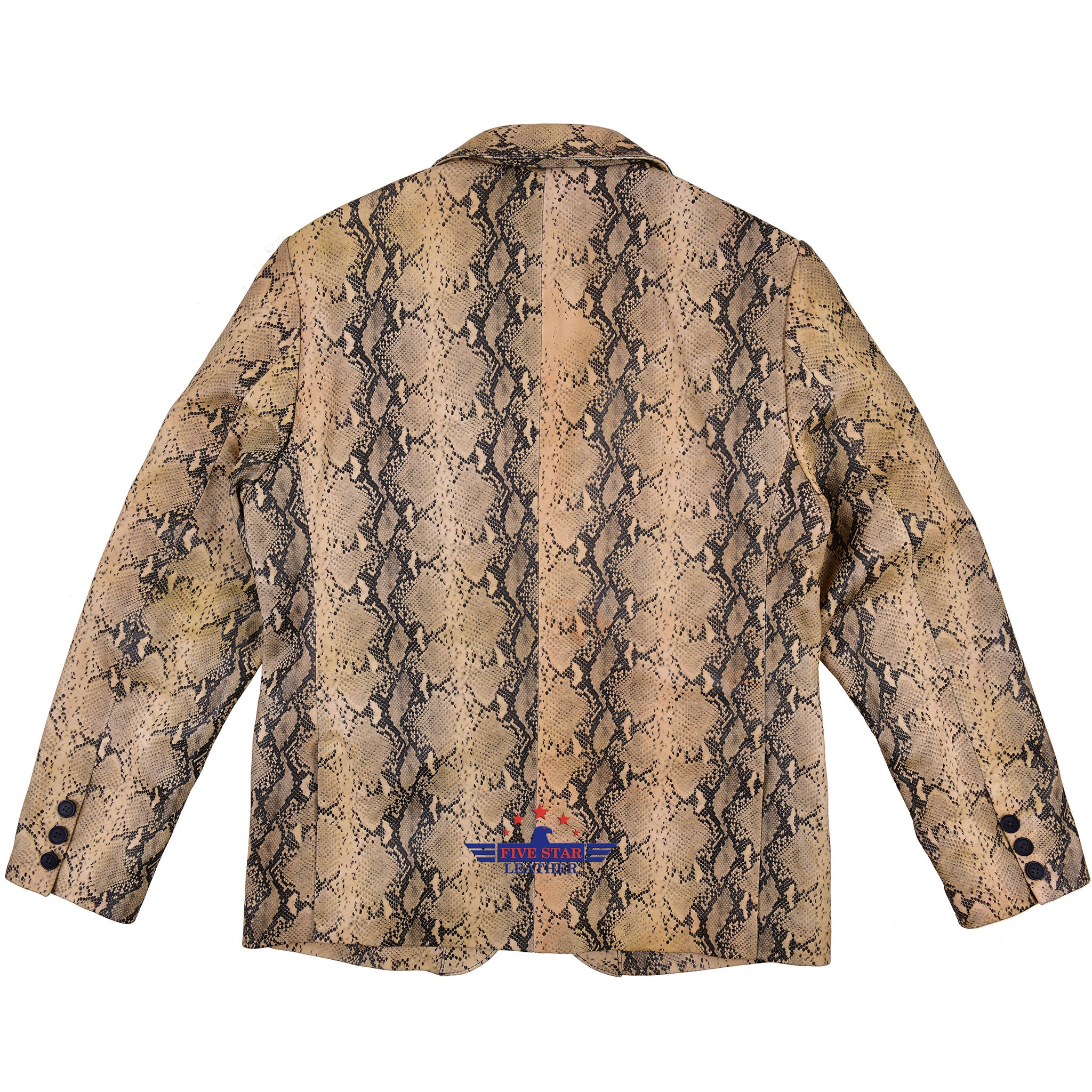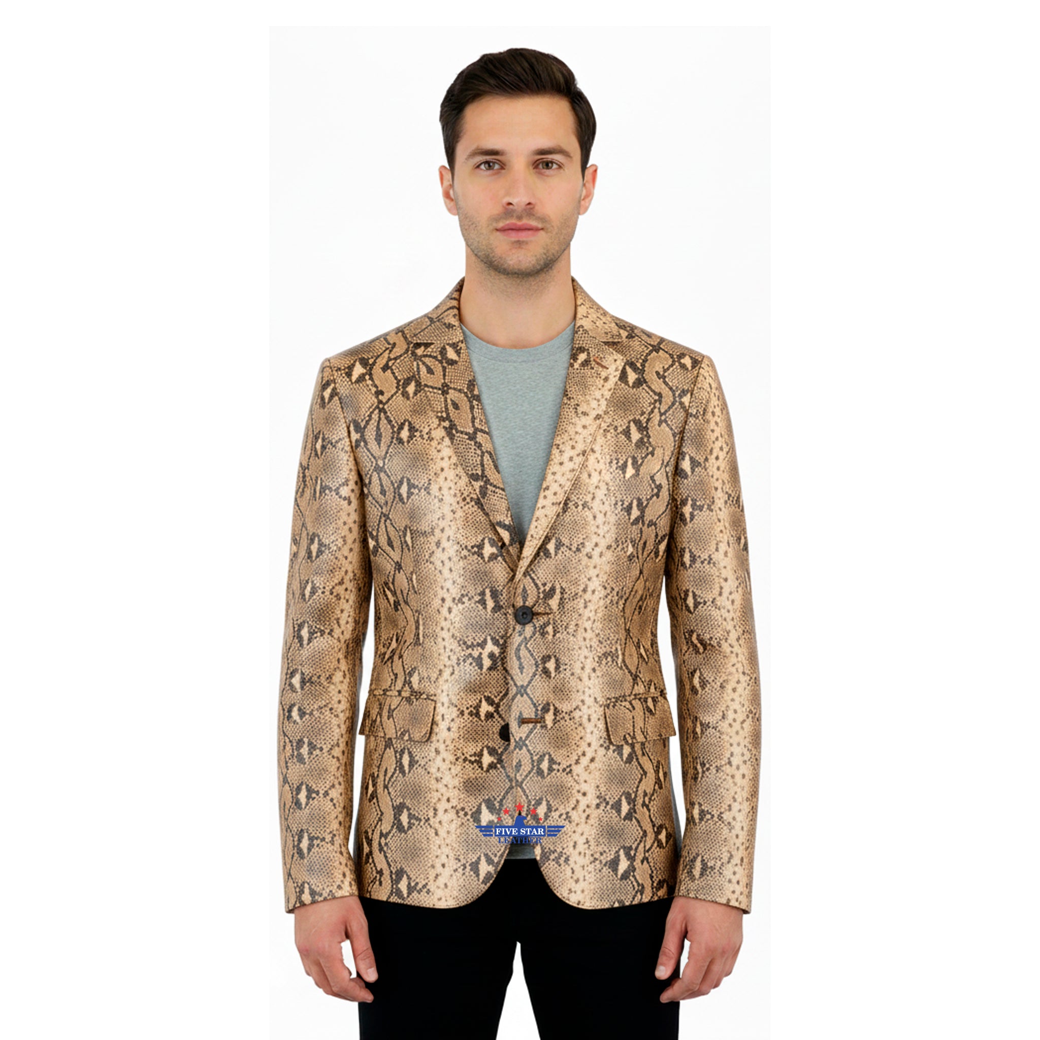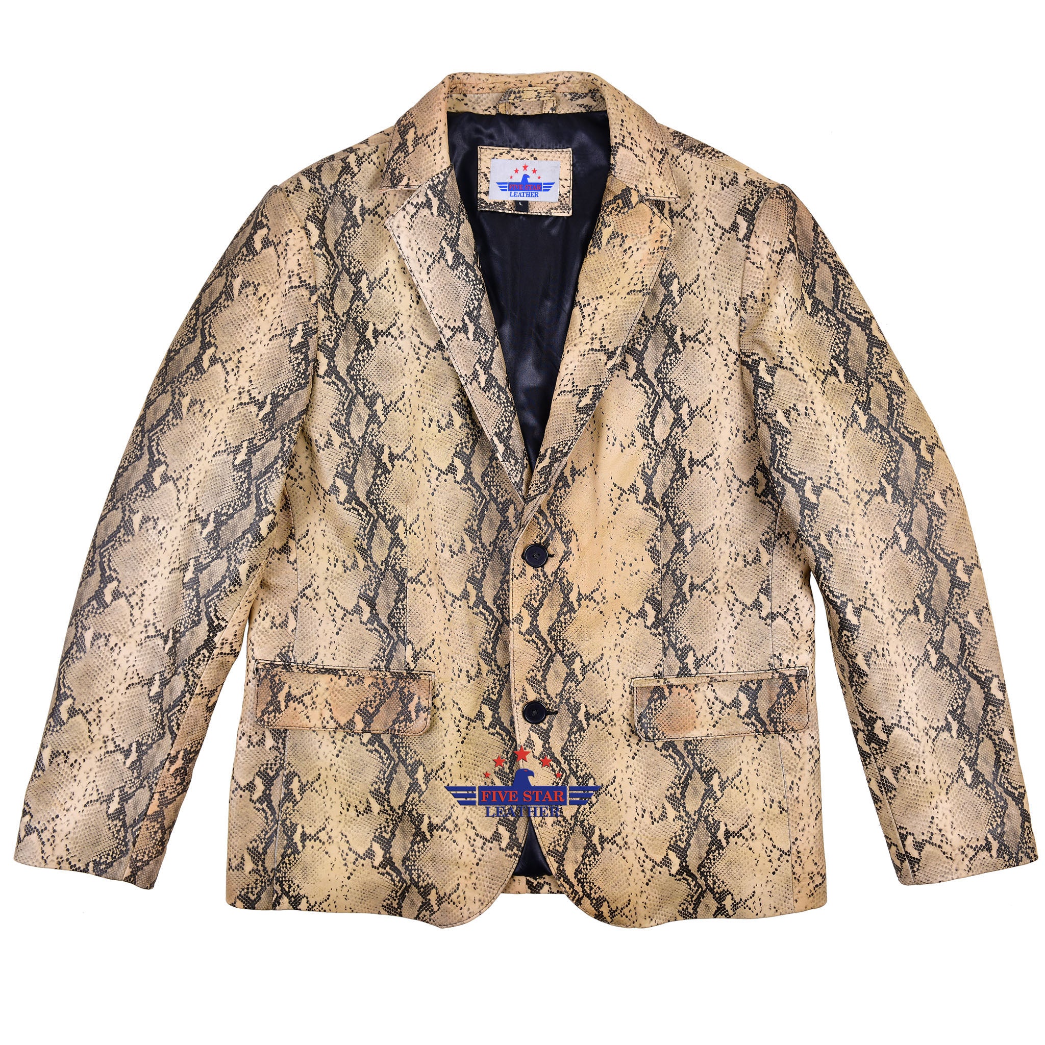 Men Blazer Fashion Real Leather Python Snake Cobra Textured Jacket Two Button