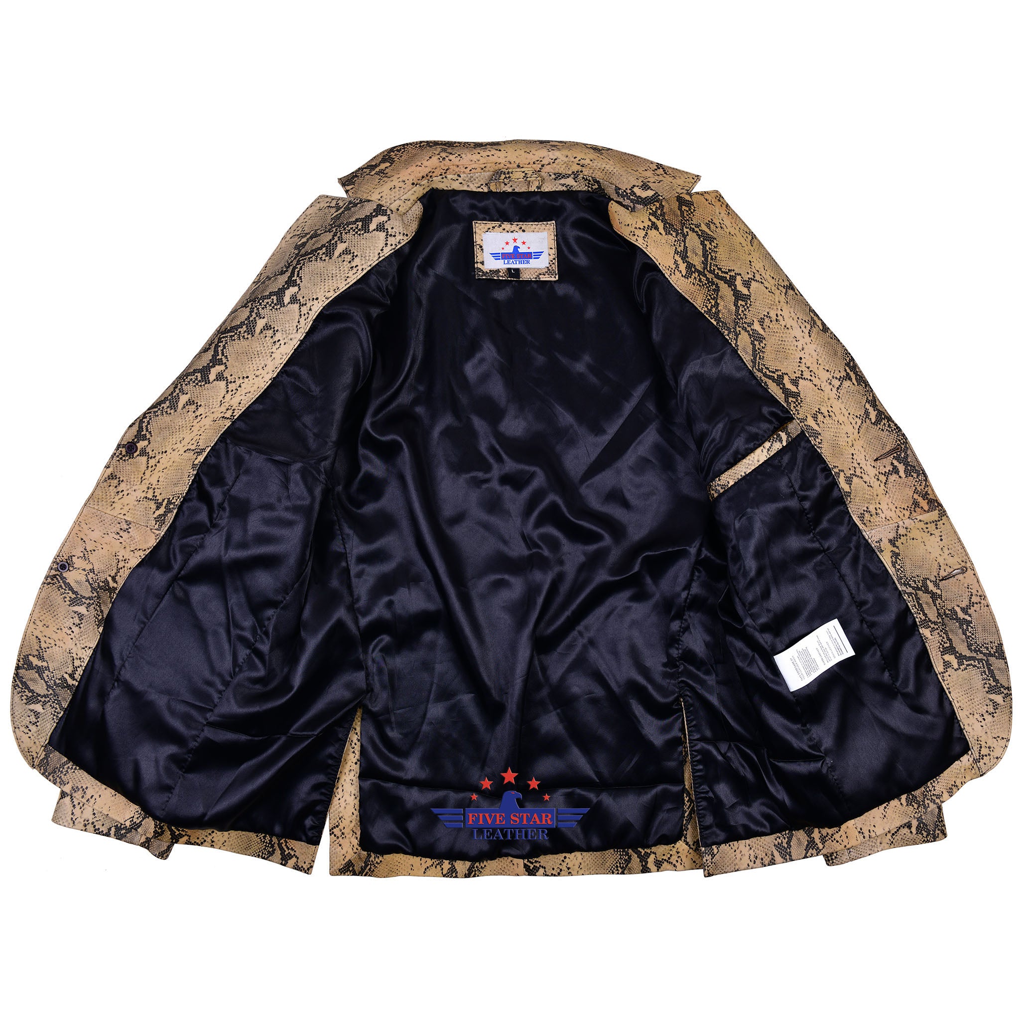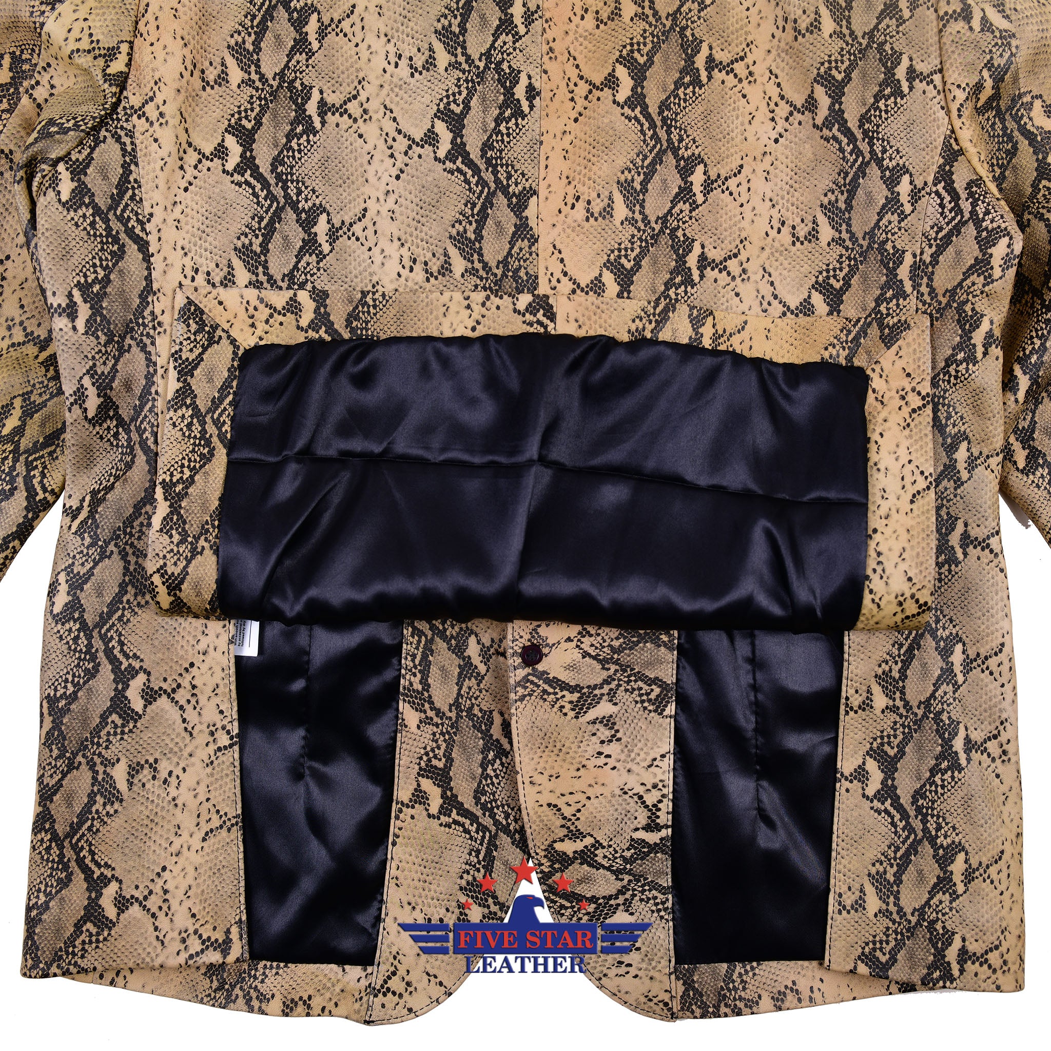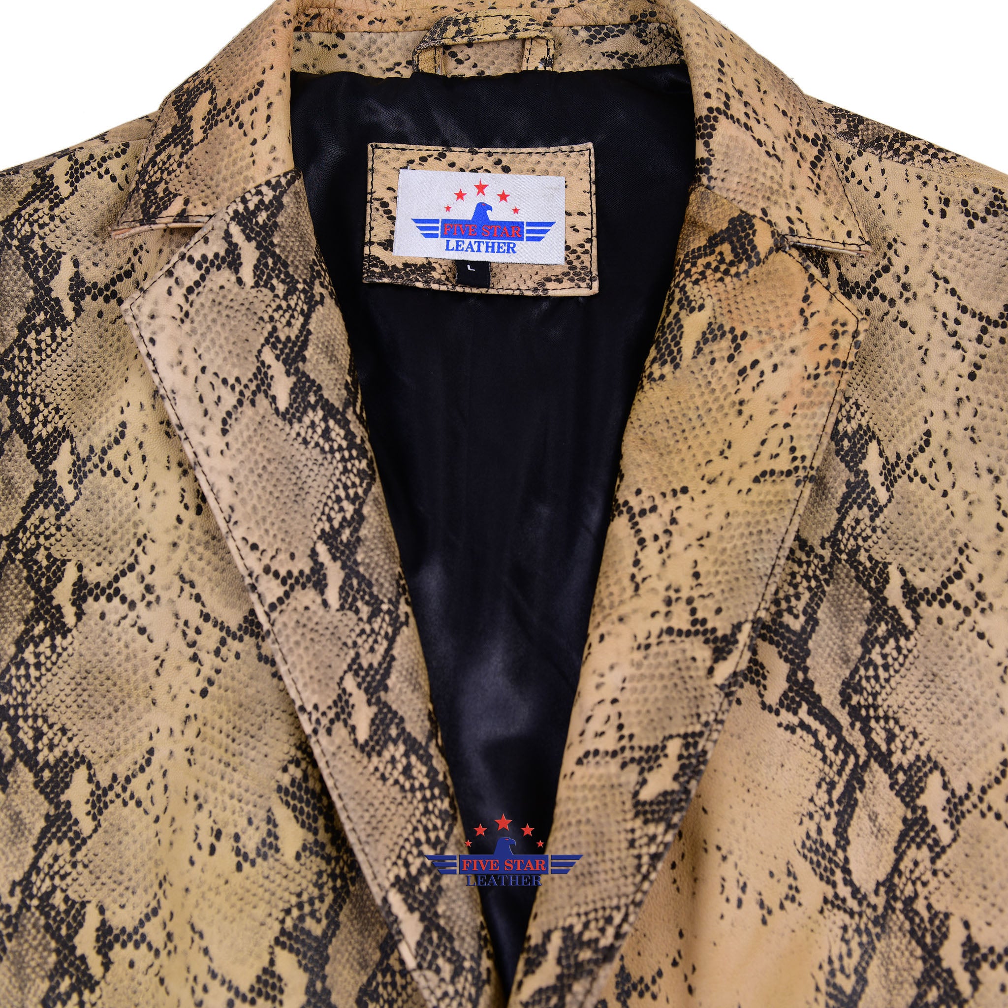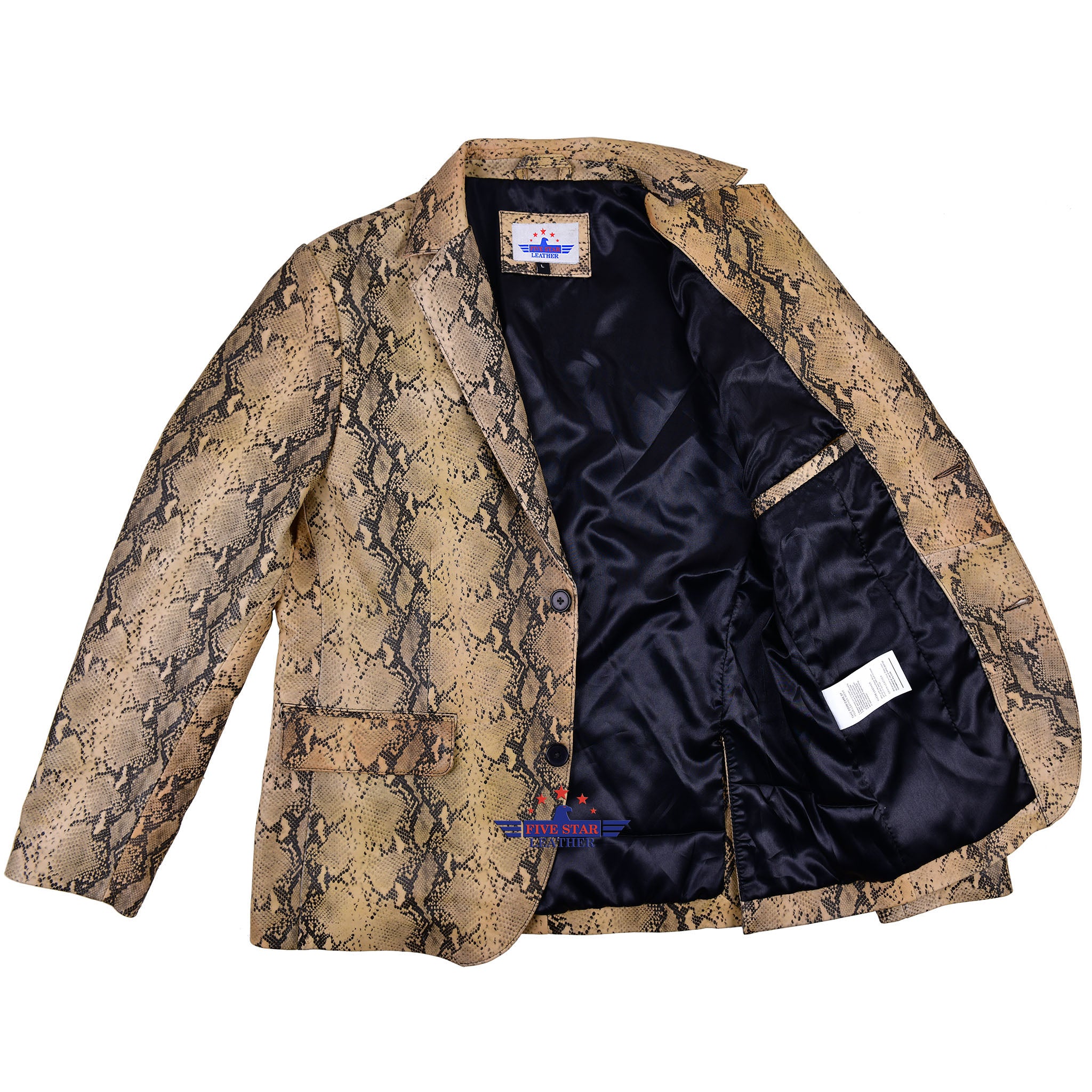 Men Blazer Fashion Real Leather Python Snake Cobra Textured Jacket Two Button