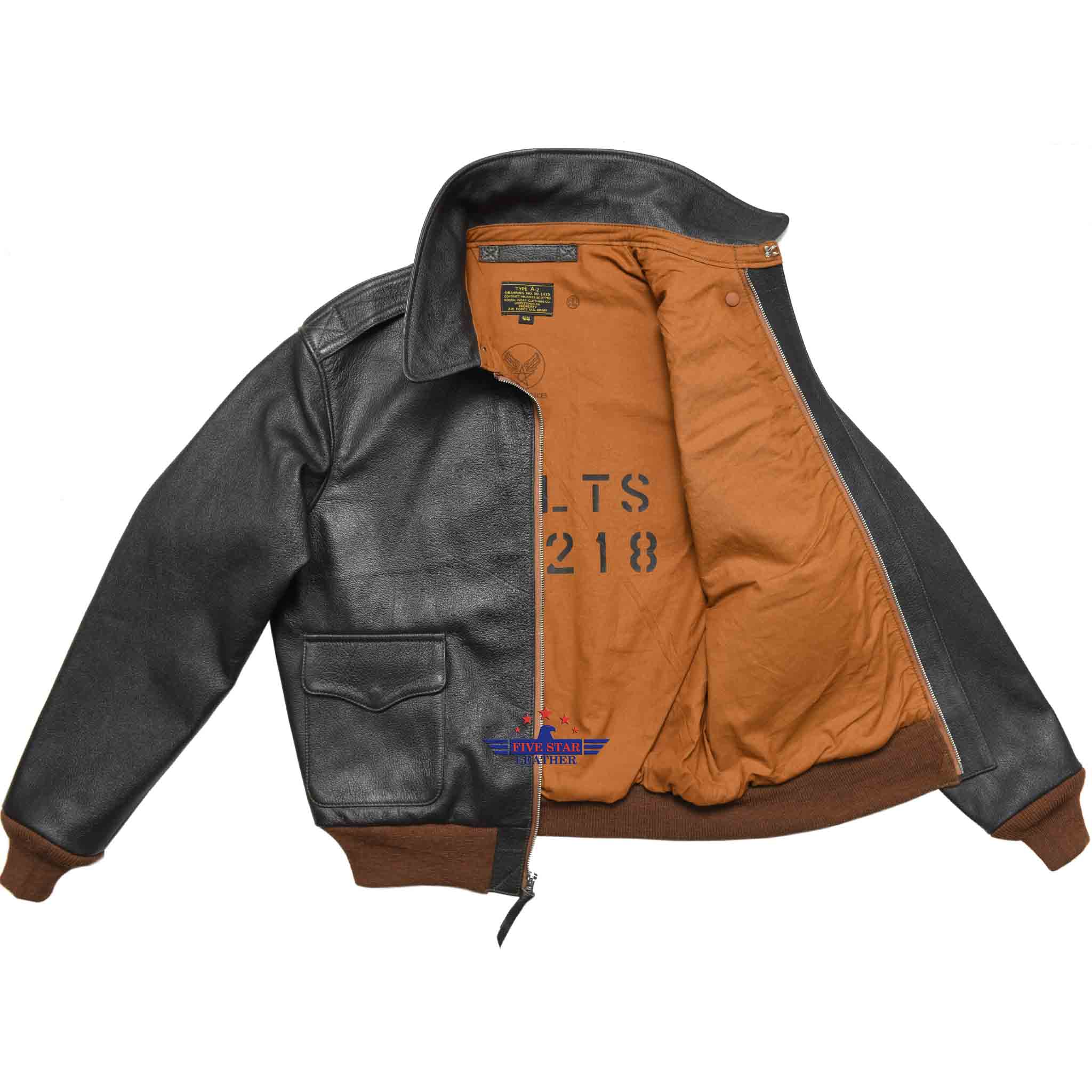 FiveStar Leather Repro A2 V Hilts Escape Jacket Seal Brown, This Leather is Semi Veg. Tanned and True to Original Color, We use 100% Real wool Knitting's In Mid Brown color made in USA in this jacket, however other knitting colors in Wool are also available, Repro Talon Front Zipper Fastening, 100% Cotton lining true to original Color