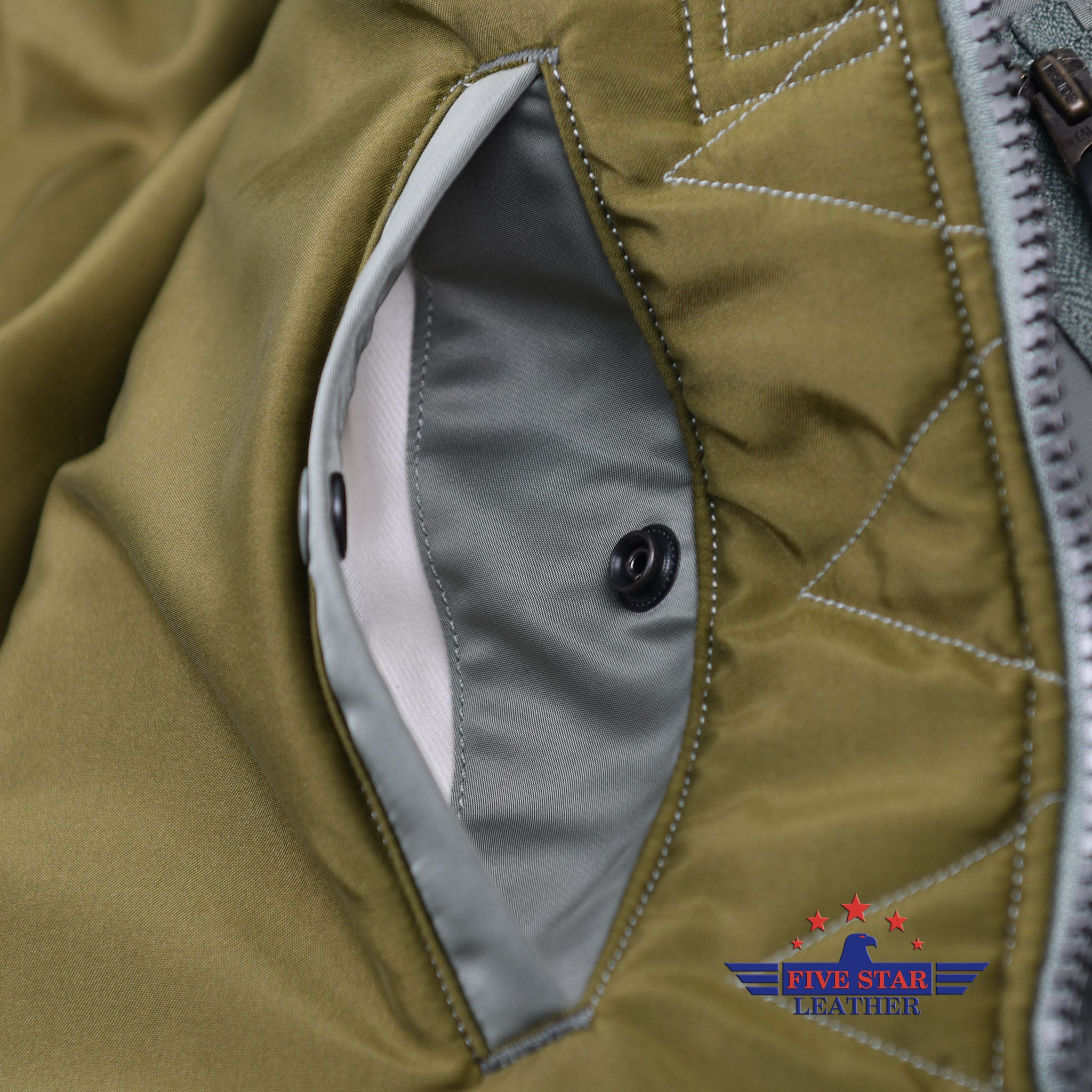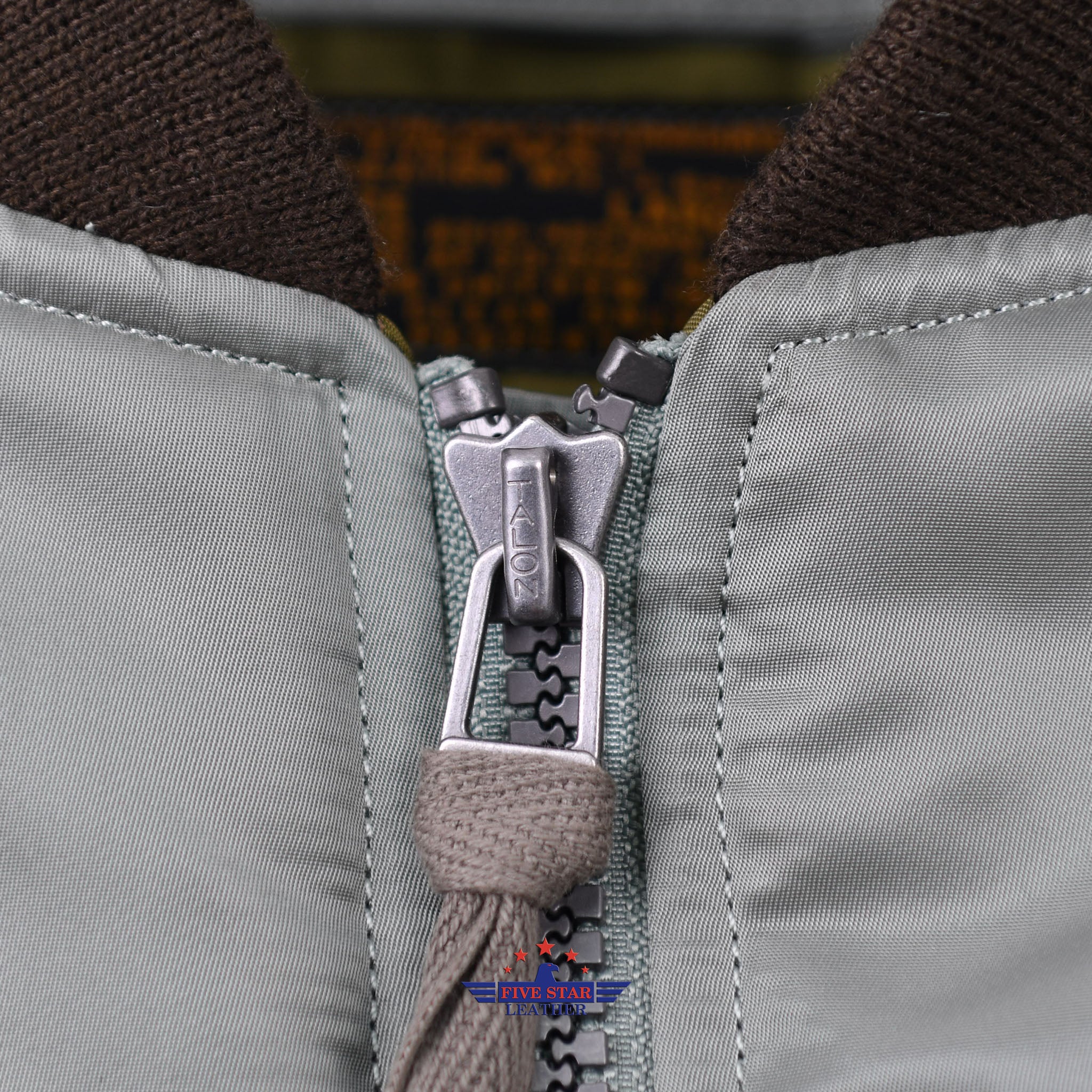 Confident and enduring, the FiveStar Leather Reproduction of the 1950s USAF Type MA-1 Flight Jacket captures the essence of classic military heritage. Meticulously recreated from the original 1955 SPEC. MIL-J-8279, it uses nylon fabric precisely matched to the original’s lab dip sample, featuring the authentic weight, weave, and vintage colors of Sage Green, Navy Blue, and Red. It includes genuine military labeling, olive green acrylic wool knit cuffs, and a robust No. 8 zipper for reliability. Custom sizes are available, making it a perfect choice for collectors, aviation enthusiasts, and those who appreciate true vintage military style. This jacket is a carefully crafted tribute to history.