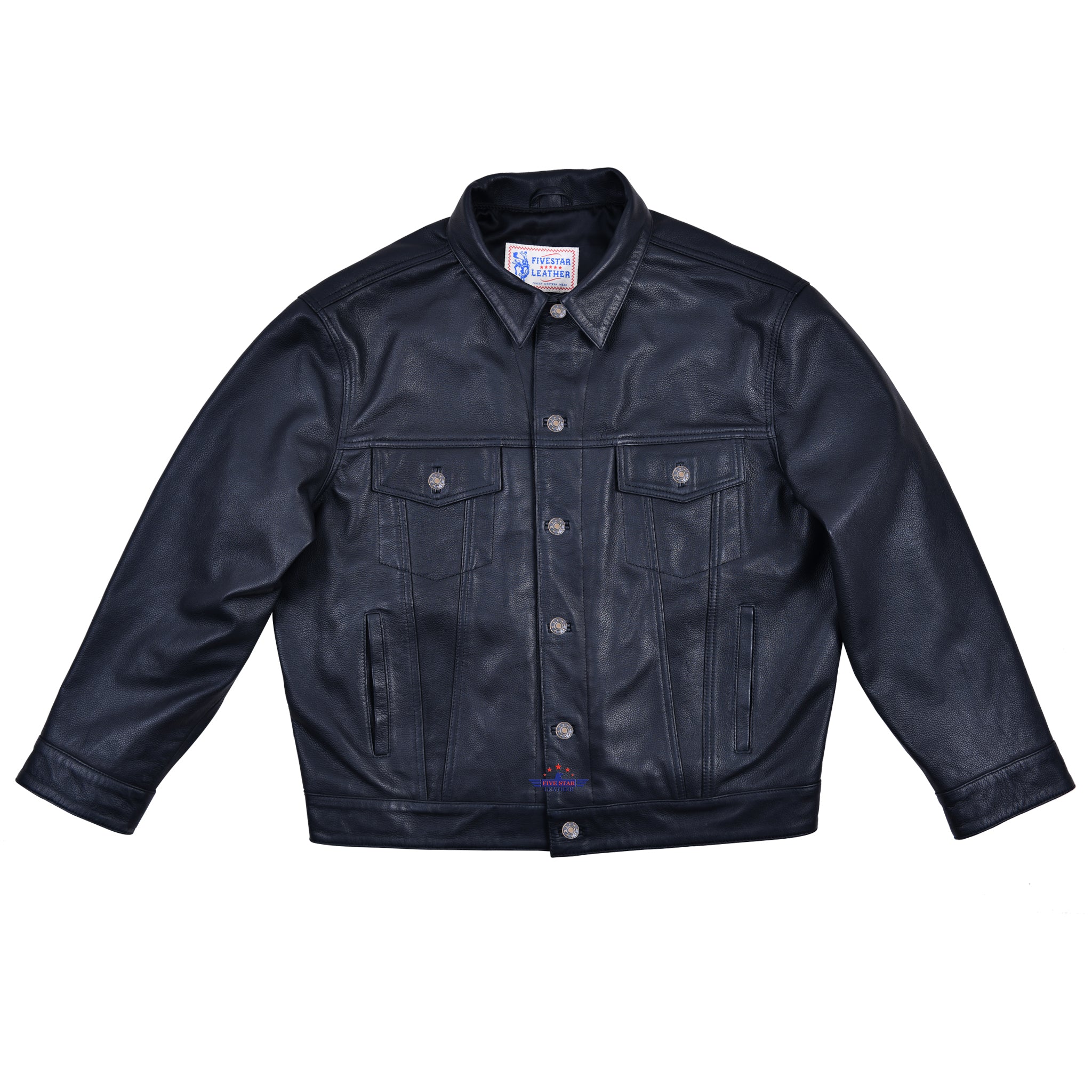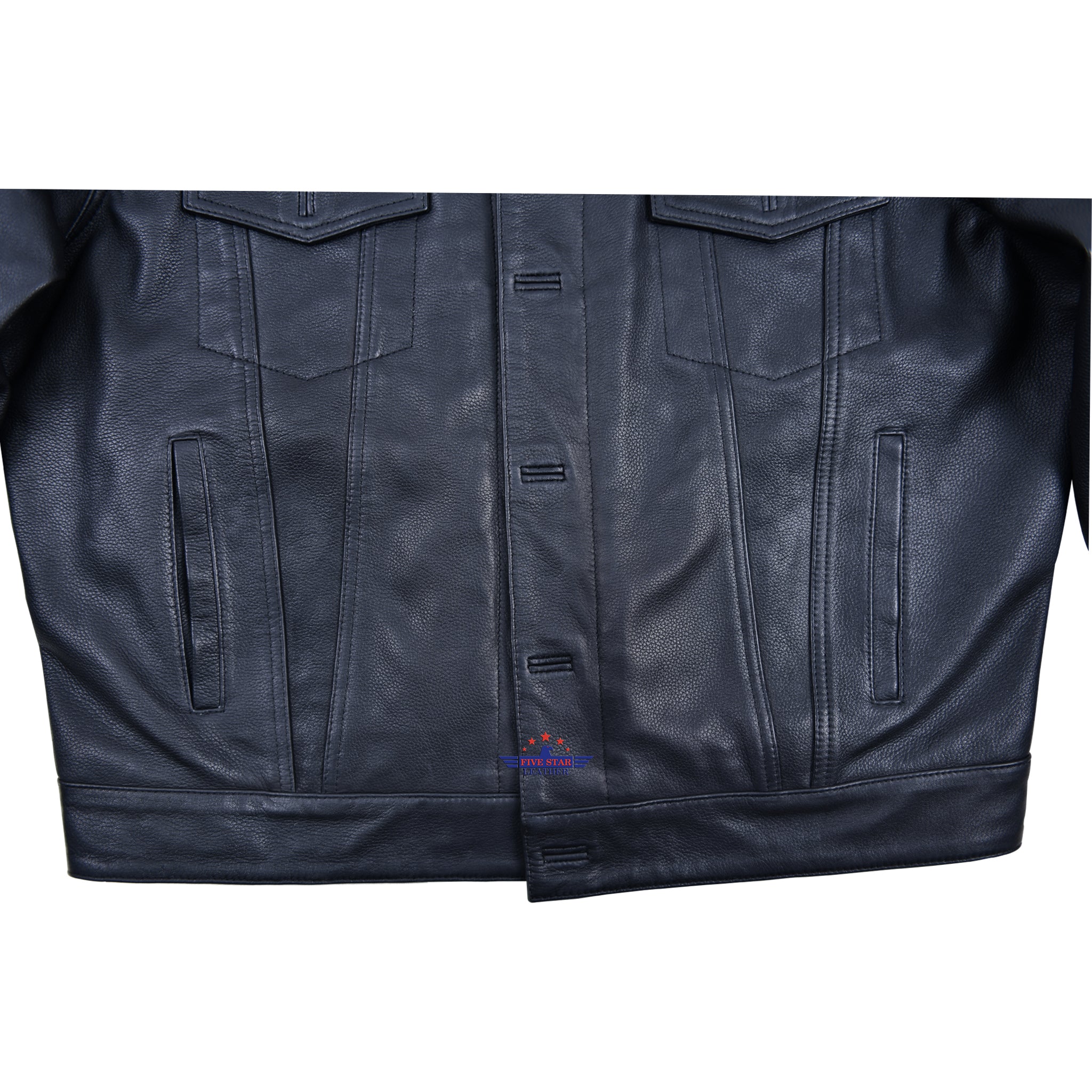 FiveStar Leather Vintage Men Trucker Jacket Black Deerskin Leather