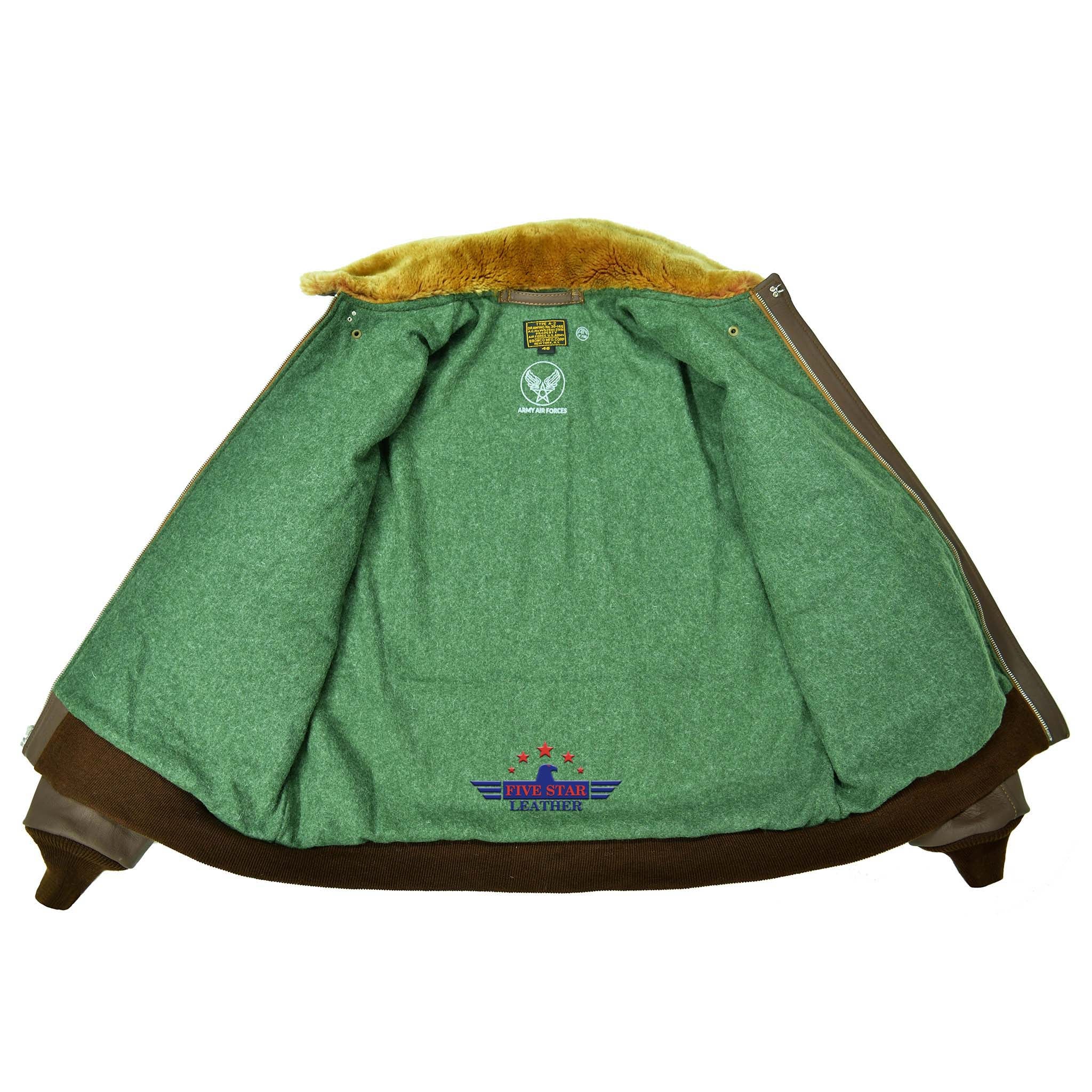 Winterized Type A2 Repro Military Flight Jacket Real Goatskin Leather Russet Brown