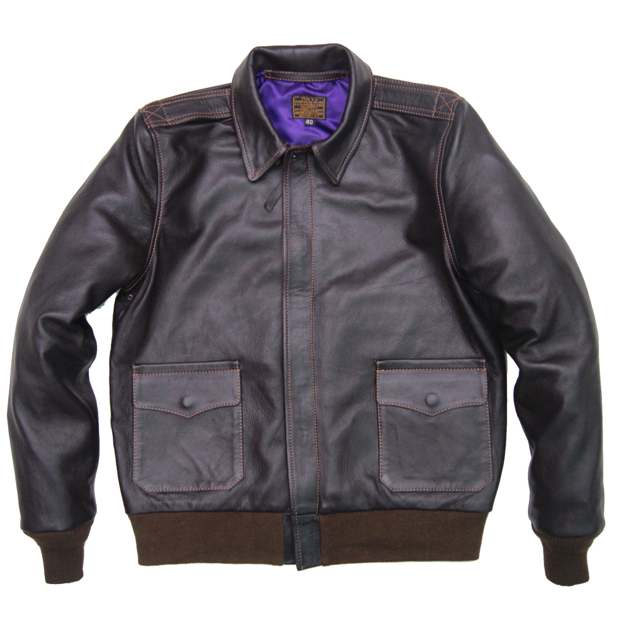 Men Type A2 Repro Military Flight Jacket Real Goatskin thick leather Seal Brown