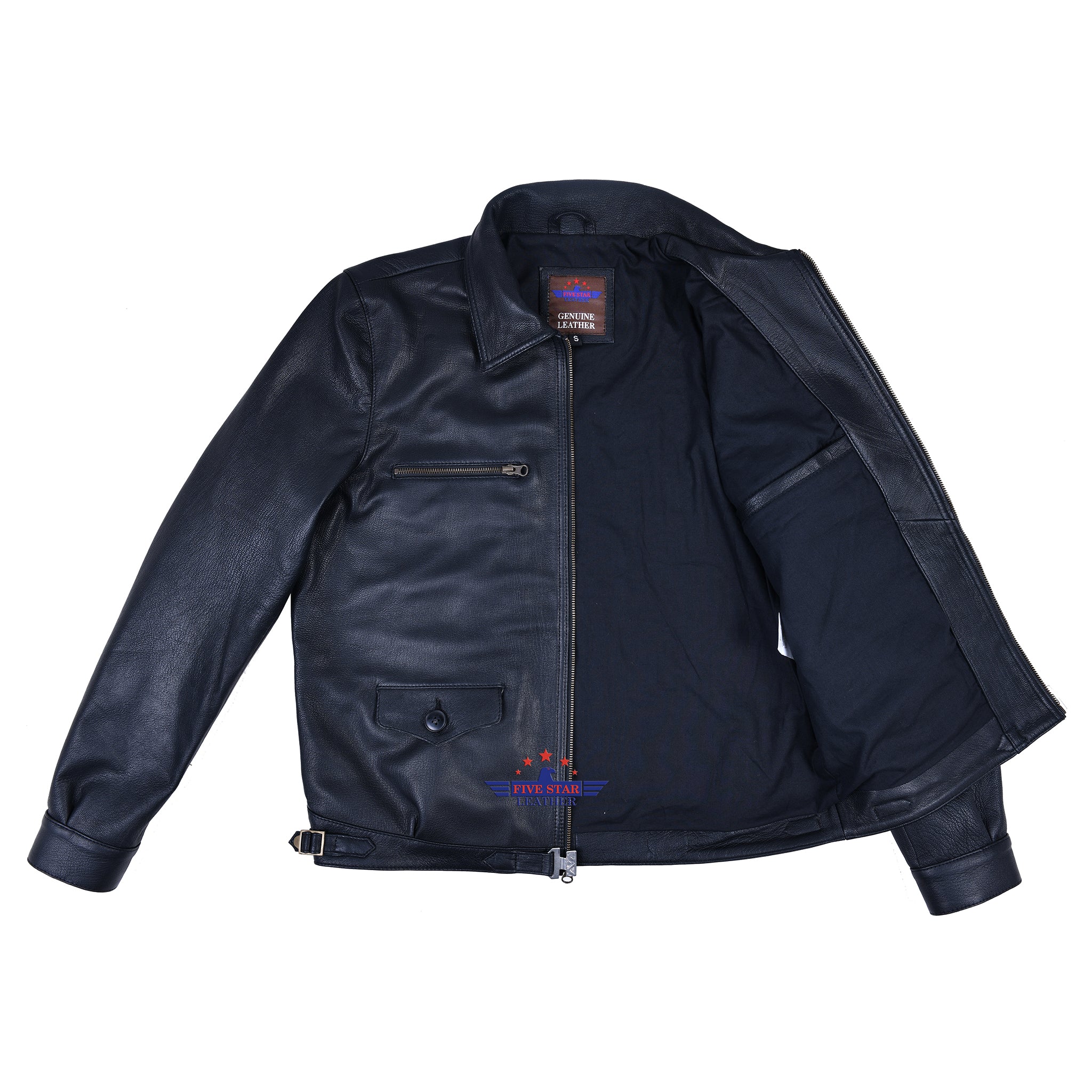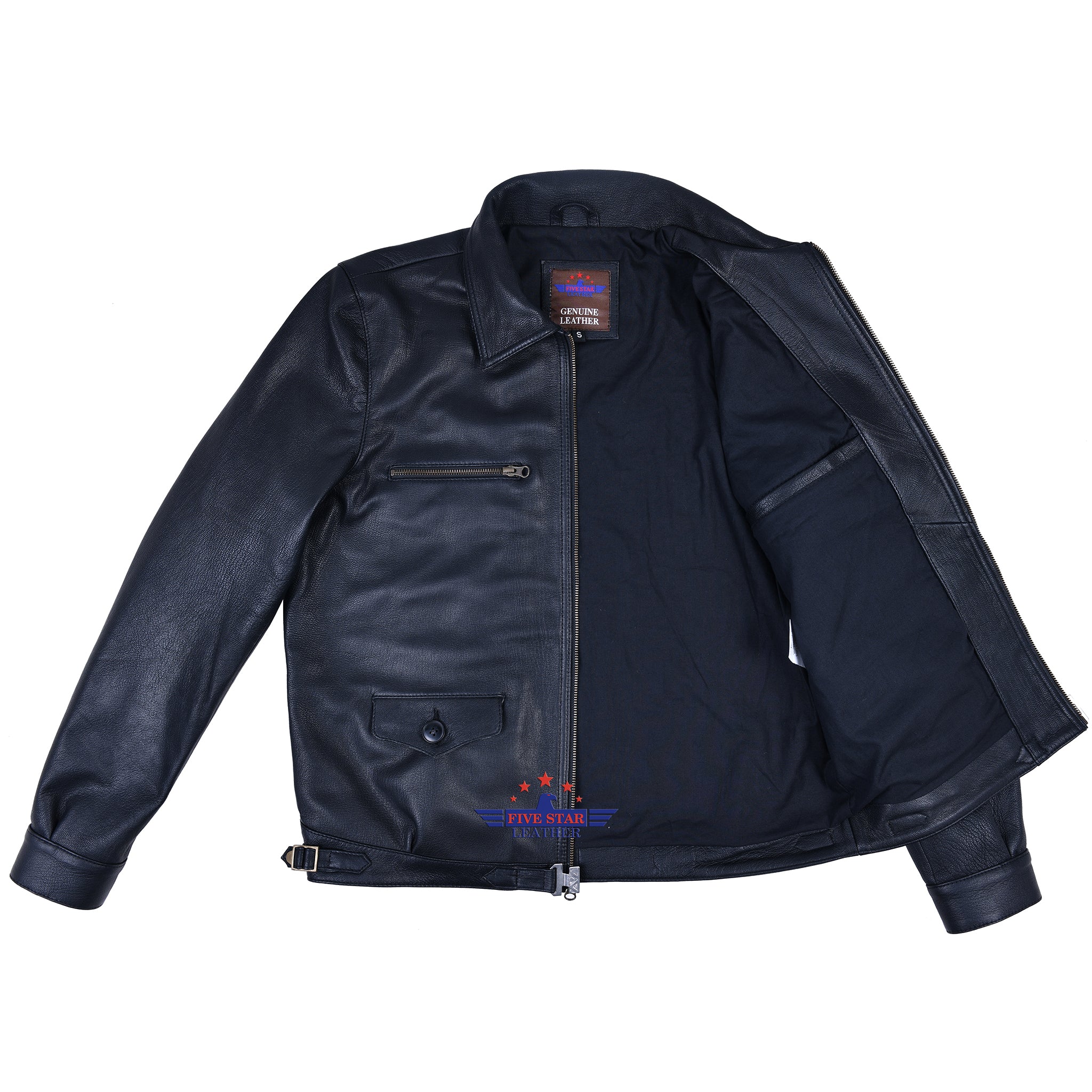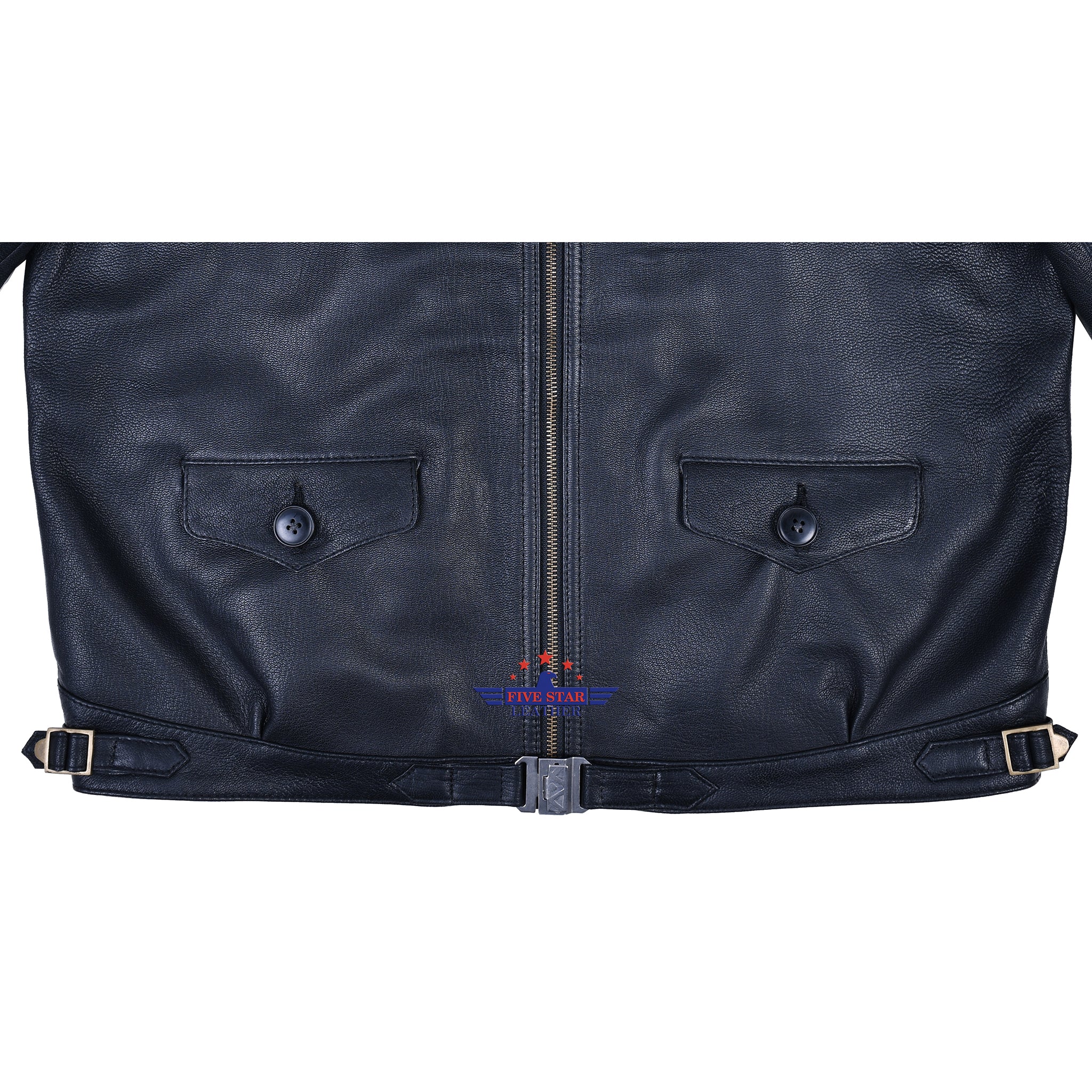 FiveStar Leather Premium Quality Leather Jacket made from Real and high quality Goatskin Leather Front Zipper Fastening, High quality Quilted lining, Authentic Military Standards, Fine and outclass stitching, This bomber jacket is crafted from 100% authentic goatskin leather and has a front zipper fastening. The high-quality quilted lining and military-grade standards make for fine and outclass stitching, ensuring a durable and authentic piece.