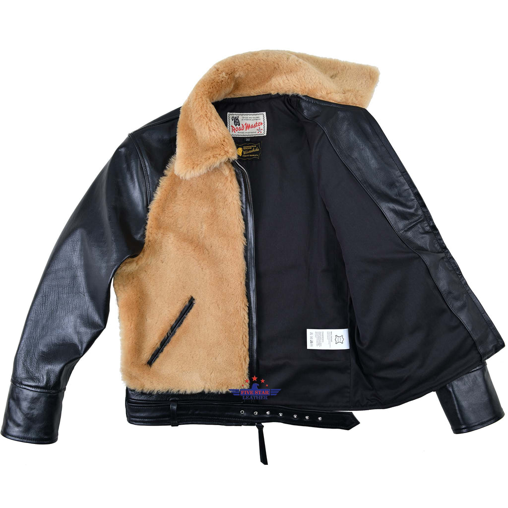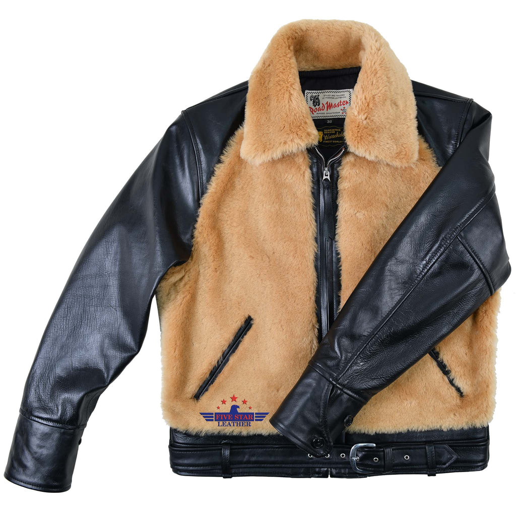 FiveStar Leather 1930s Grizzly Jacket Blonde Fur with HorseHide Black Leather