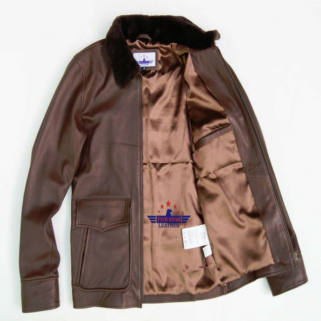 Pilot Bomber Air Force Luftwaffe Real Leather Aviation Jacket Mouton Fur Collar