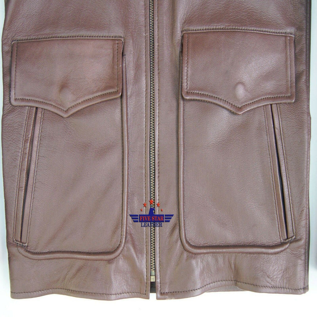 This premium "A" Grade genuine leather jacket is crafted from high-quality goatskin leather. It features a front zipper closure, a durable quilted lining, and meets authentic military standards. Expertly stitched with attention to detail, this jacket is available in all sizes to ensure the perfect fit.