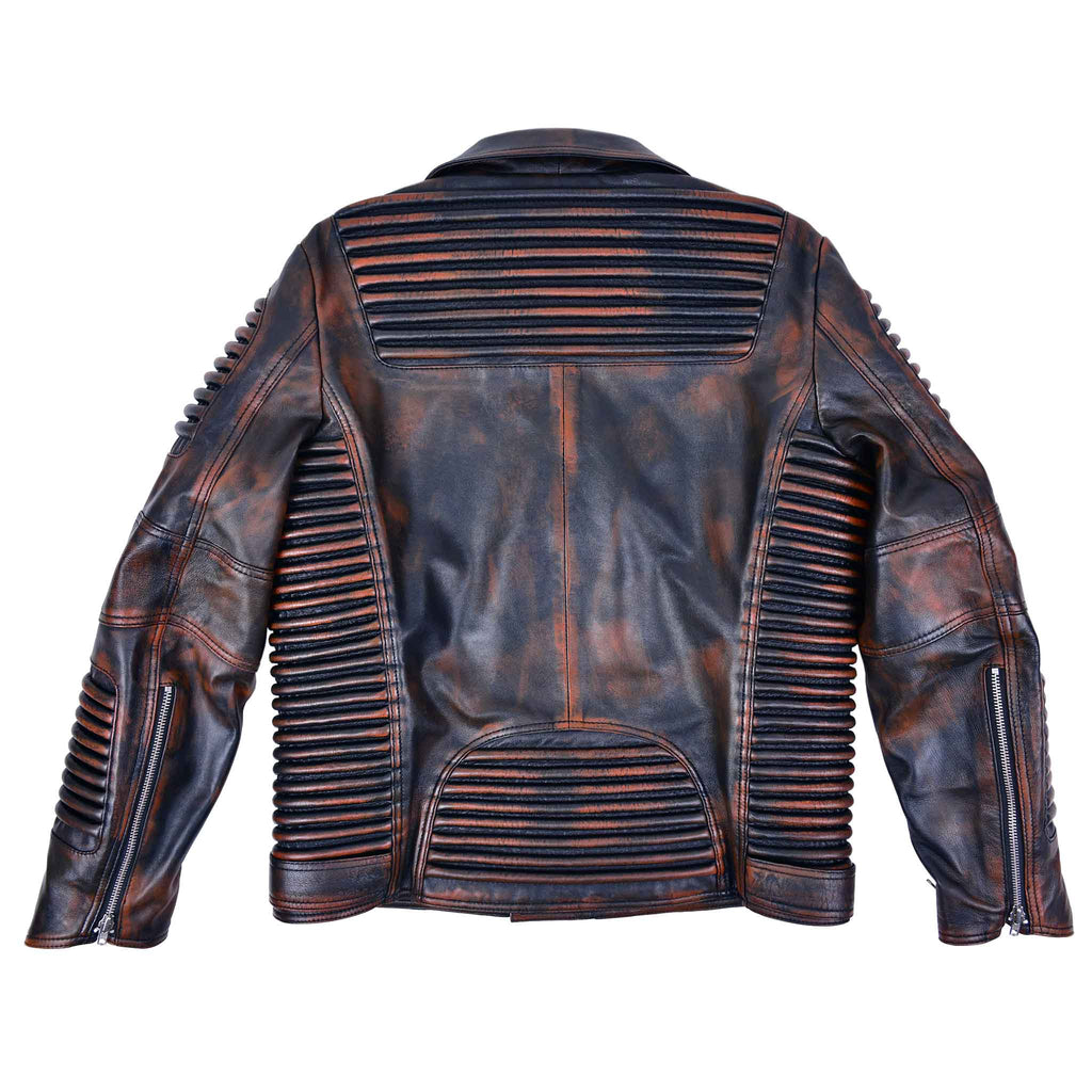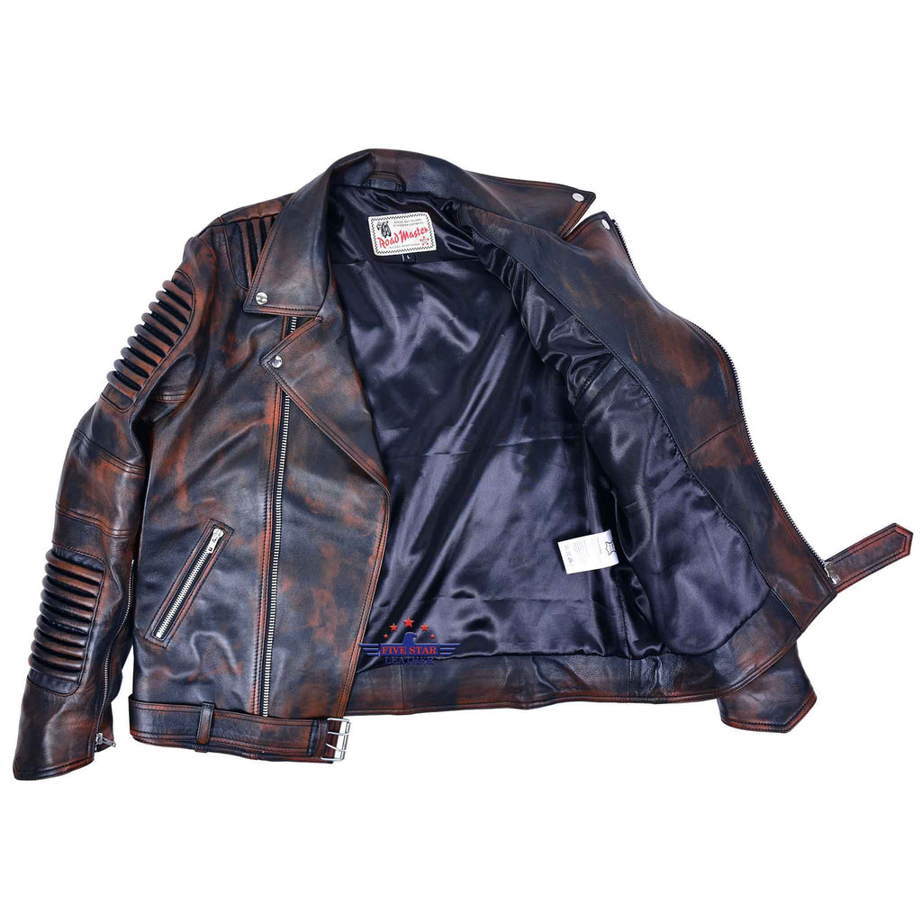 Crafted from genuine, high-quality sheepskin leather, this distressed black jacket features an asymmetrical front zipper for a bold look. It includes one inside pocket and a soft, handmade waxed finish that adds both comfort and style. With a durable 100% polyester lining, fine stitching, and an original YKK zipper, this jacket offers lasting quality. Available in all sizes, with additional styles and colors in stock to suit your preference.
