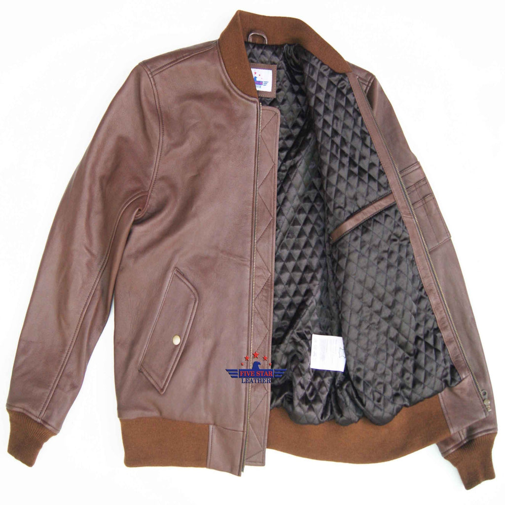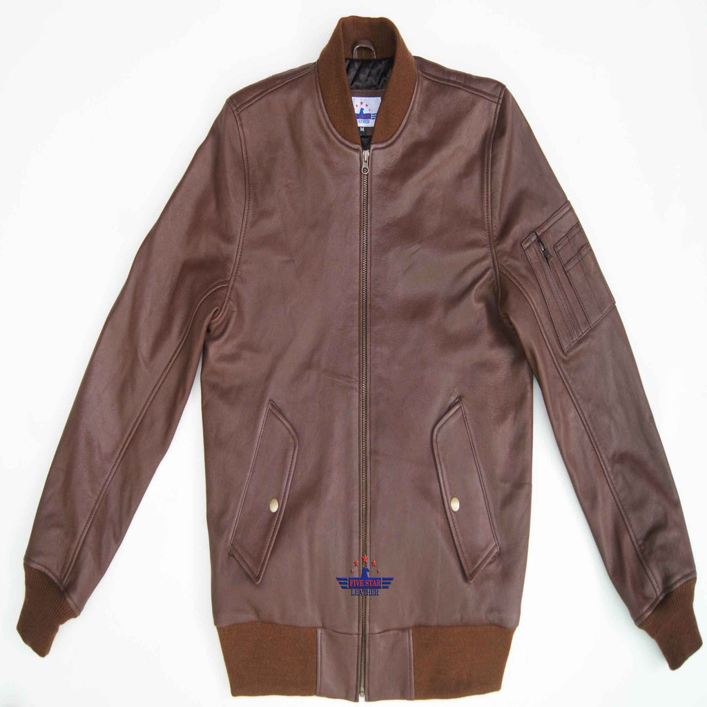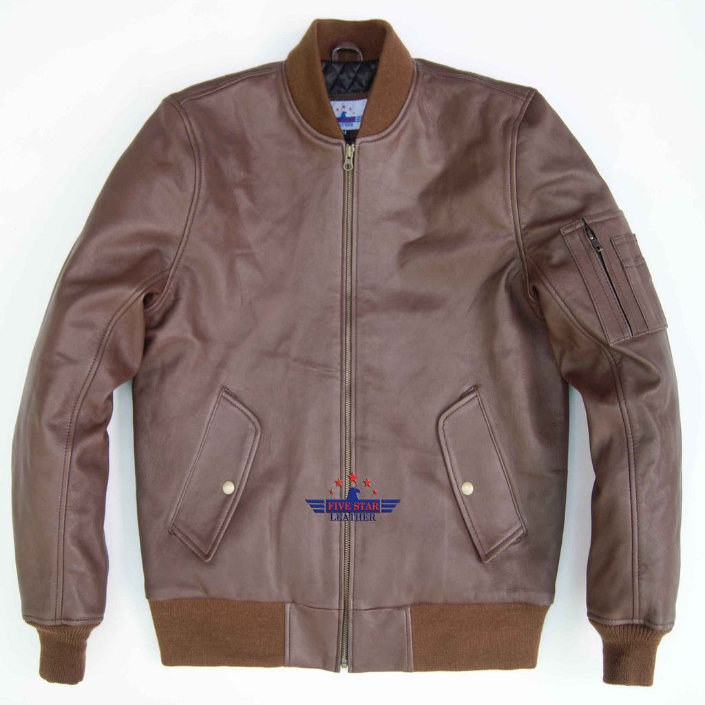 MA-1 Army Pilot Bomber Military Real Goat Leather Men Jacket Tan