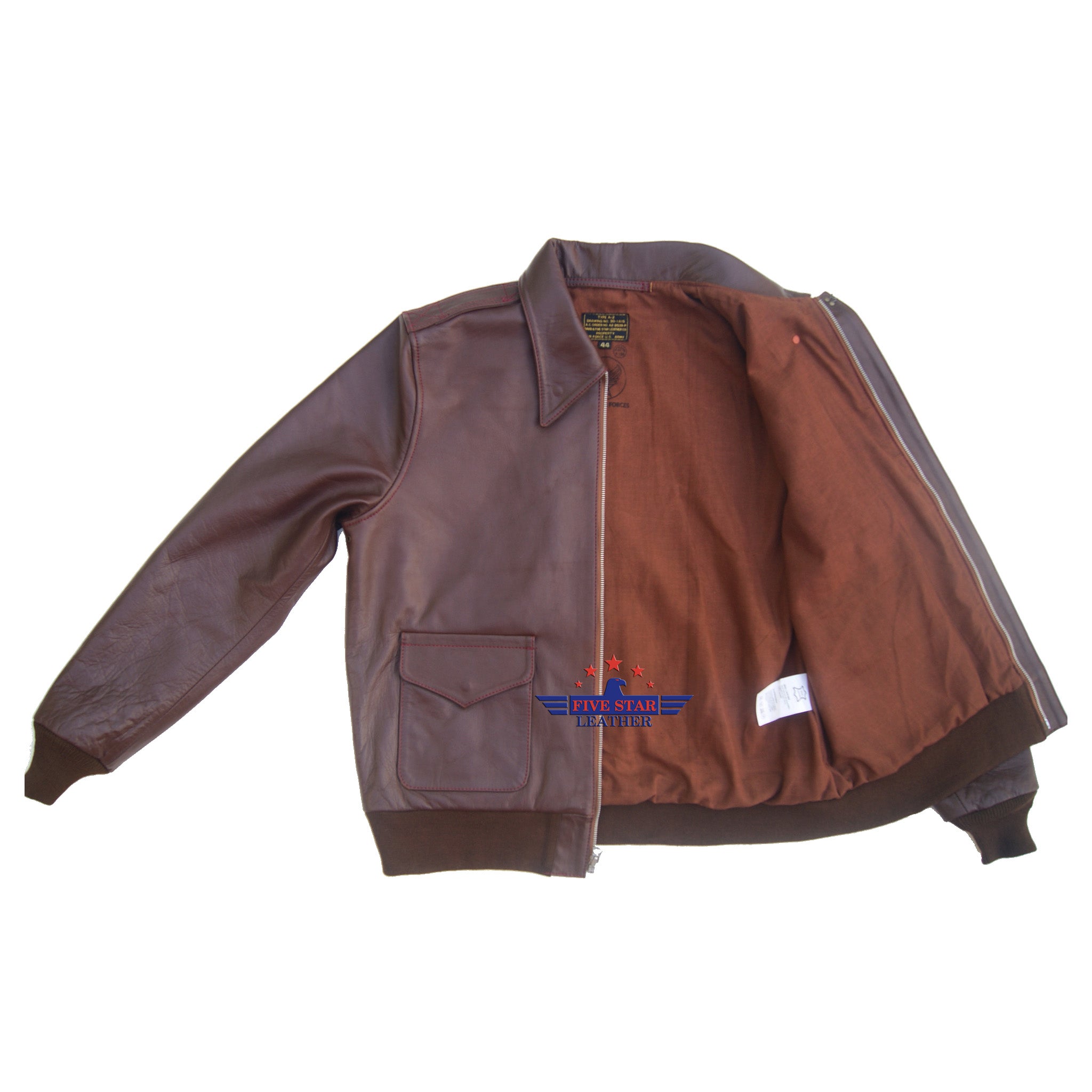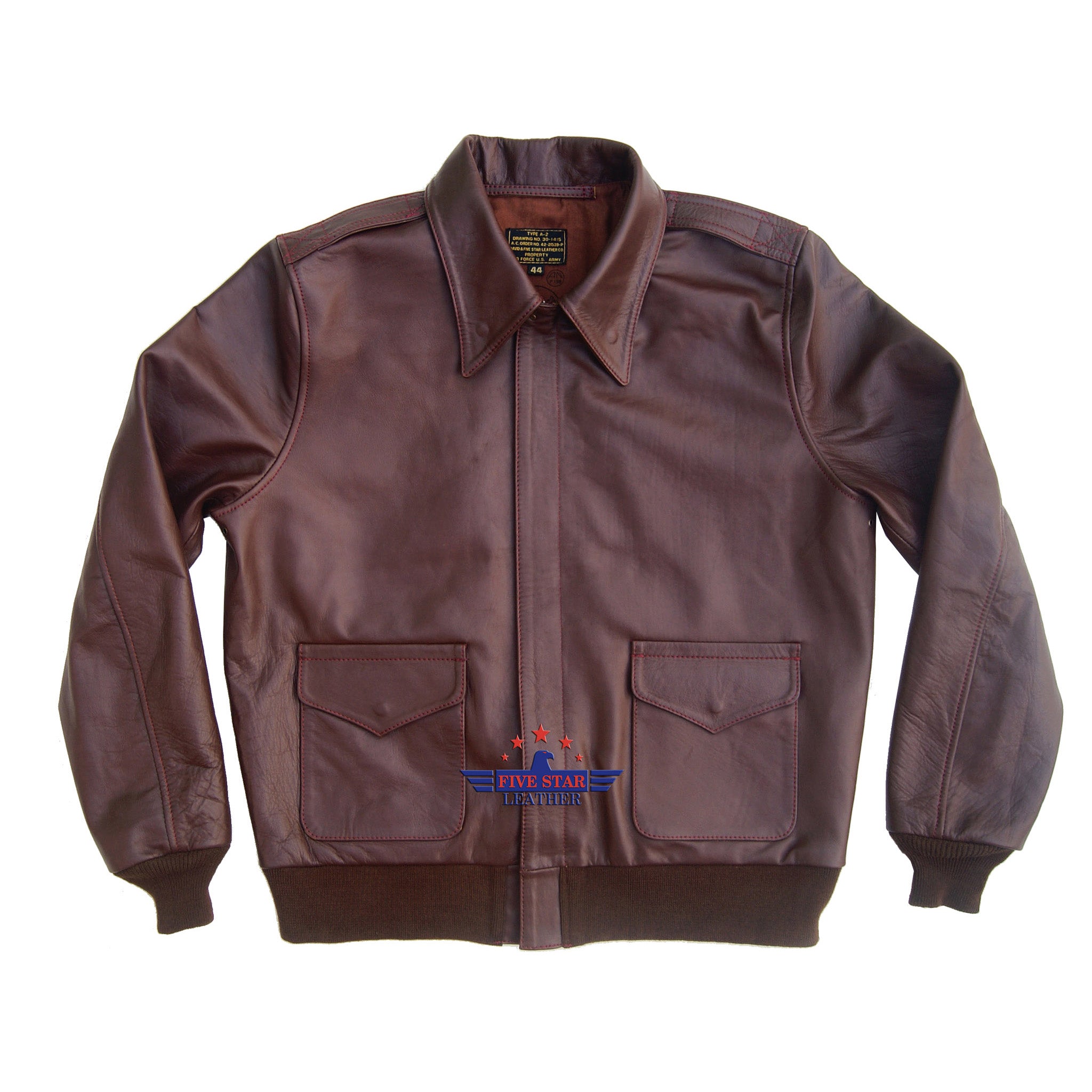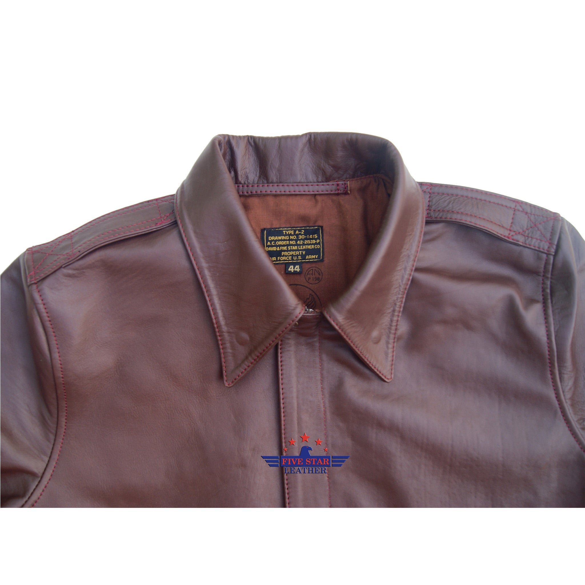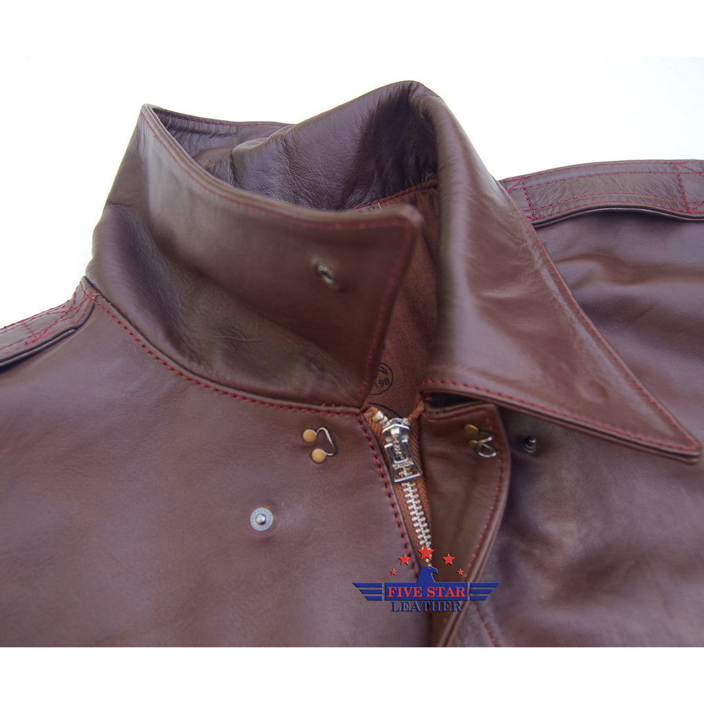 Men A2 Repro David D. Doniger Military Flight Real Horsehide Russet Brown Leather Jacket
