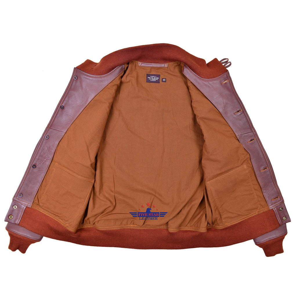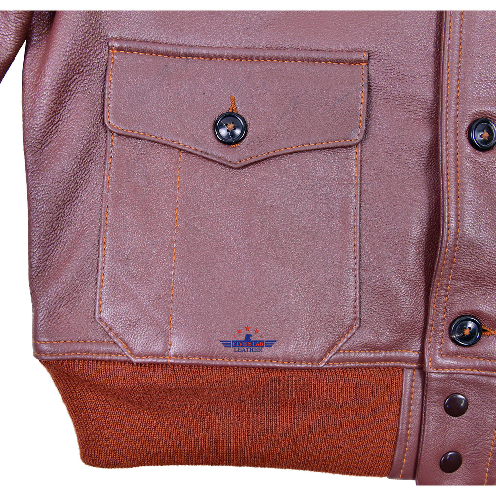 Men Real Goatskin Russet Brown Leather Air Force A-1 Jacket Pilot Flying Aviator