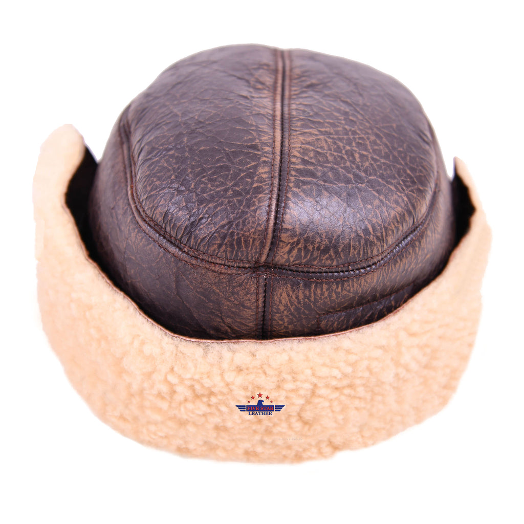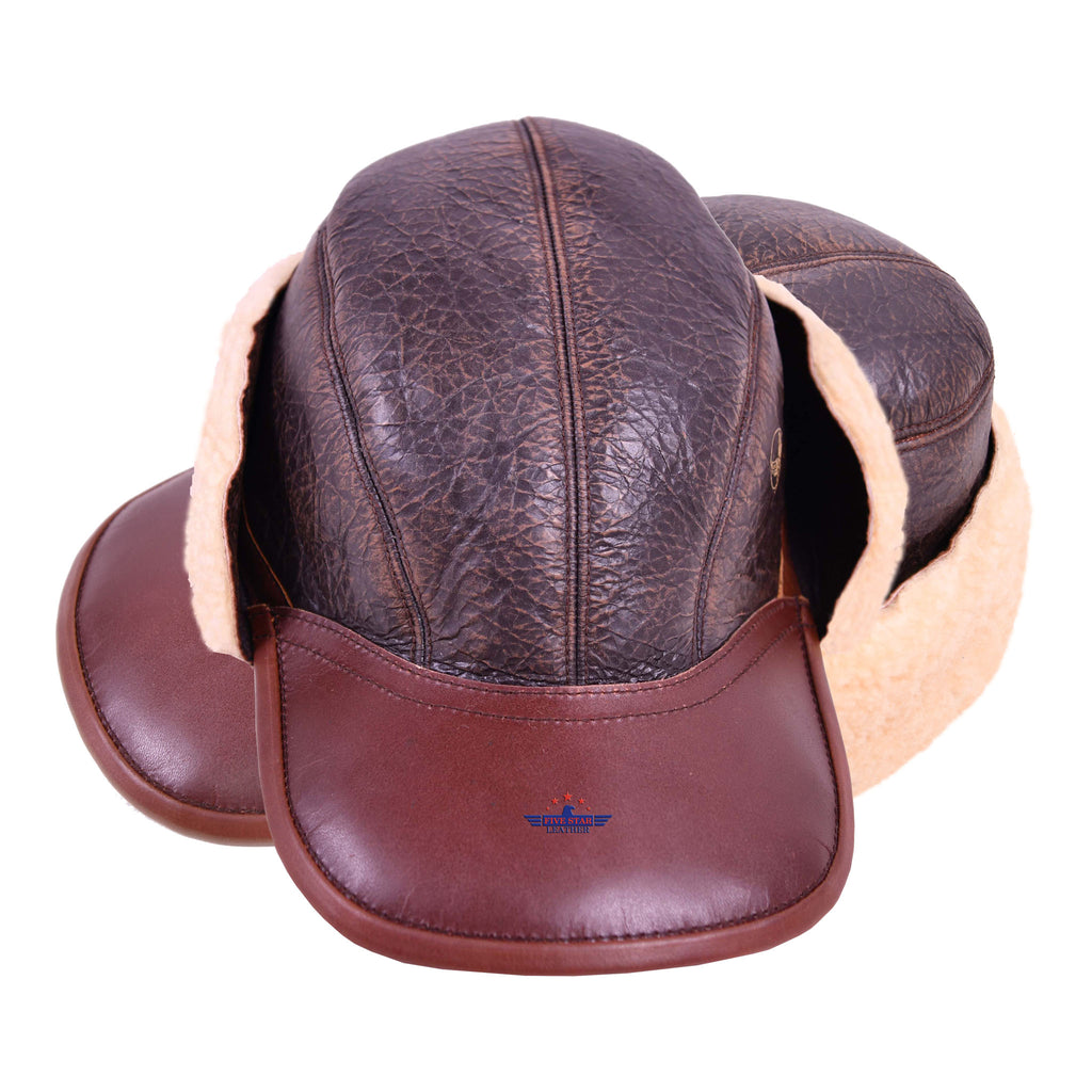 FIVESTAR LEATHER Distressed Commando B2 FLIGHT AVIATOR SHEEPSKIN LEATHER CAP