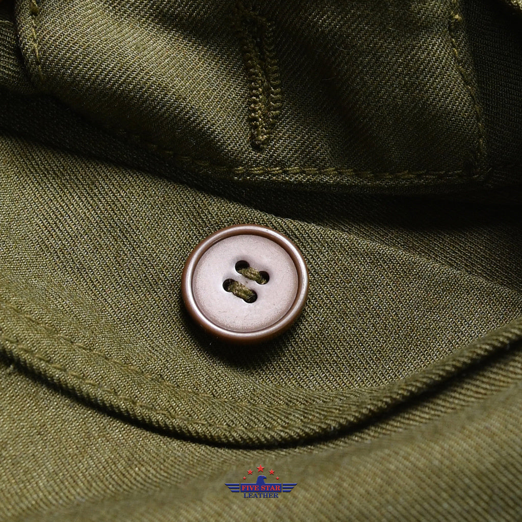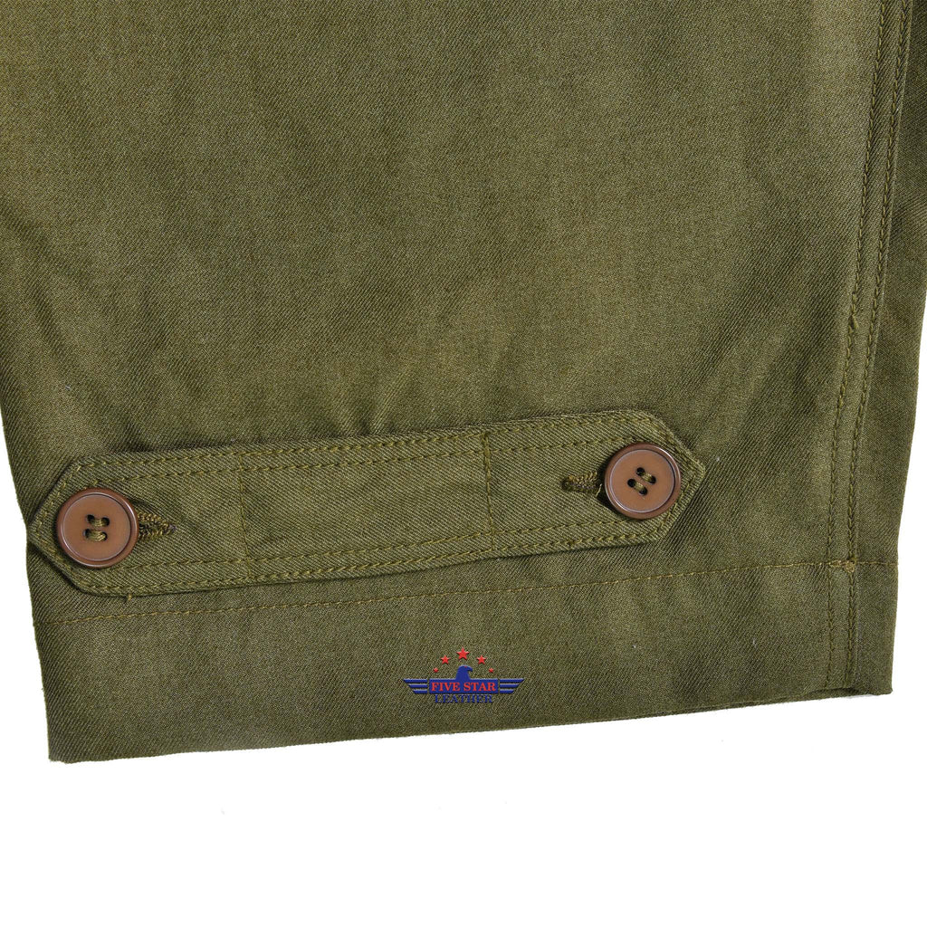 The FiveStar Leather Repro USAAF AN-6550 suit was crafted from a mixture of gabardine and wool, enhancing its endurance and adaptability for various weather conditions. The gabardine/wool material provided a perfect balance of durability, warmth, and breathability. We use the Repro Talon two way slider front zipper for the closure, and the number and placement of pockets mirrored that of the original version. The AN-6550 gabardine/wool suit typically came in the same olive drab color as the original, serving as a popular choice among USAAF pilots, especially those operating in colder climates or during winter months. This versatile and enduring suit quickly became a coveted piece of aviation attire throughout World War II.