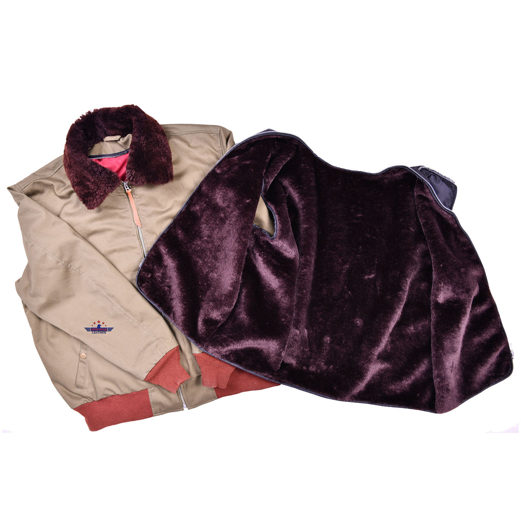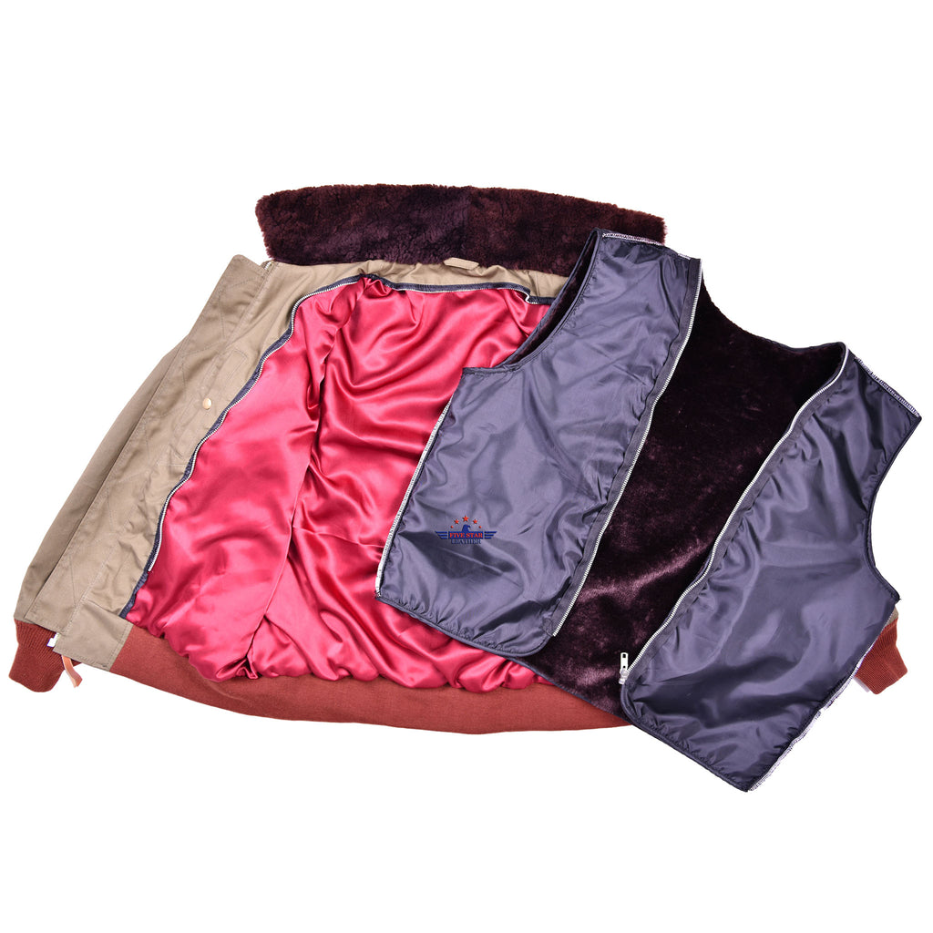 FiveStar Men’s Army B-15 Pilot Flight Jacket with Mouton Fur Collar Fabric