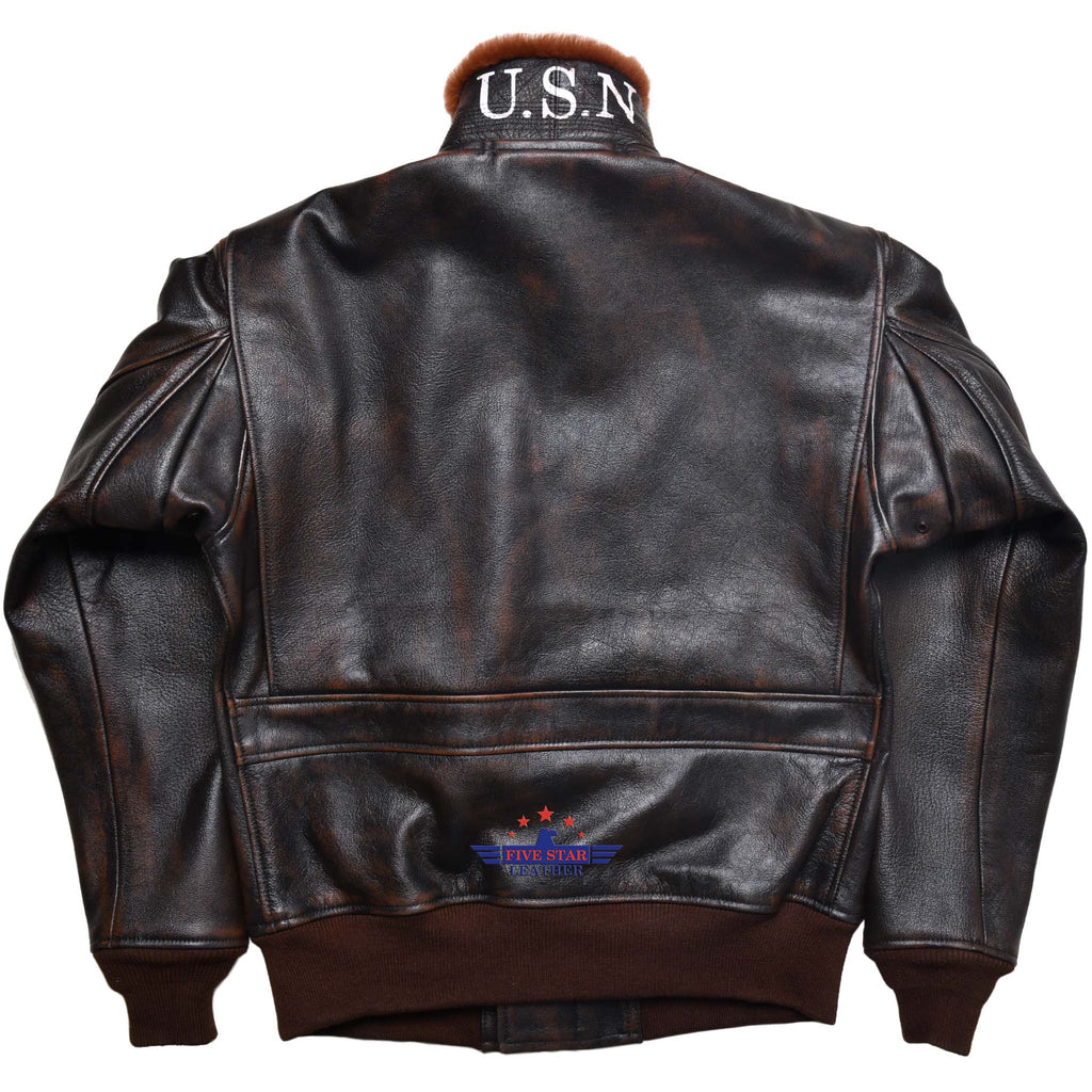 Fivestar Leather Flight G1 Bomber Naval Flying Men Jacket USN Goatskin Leather Distressed