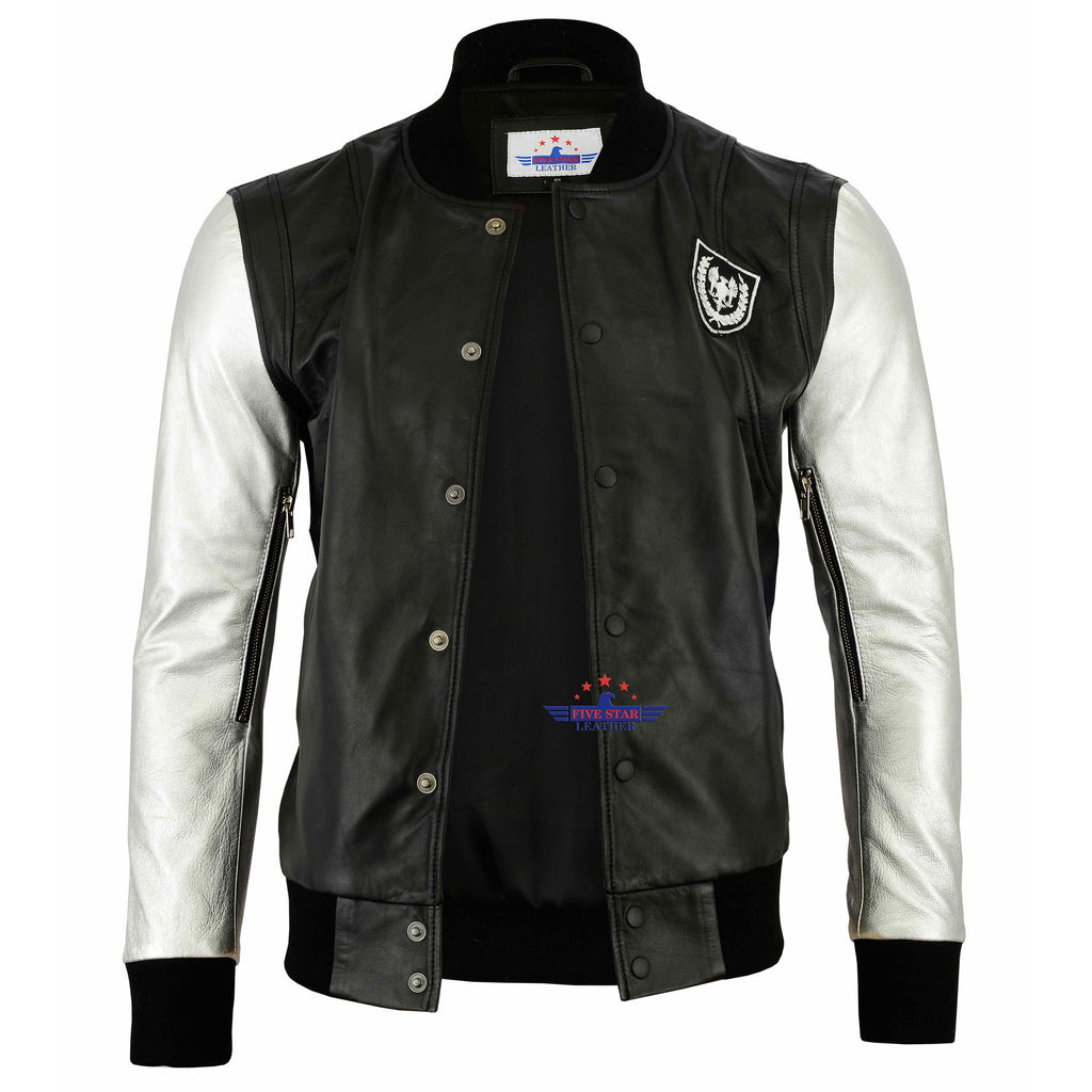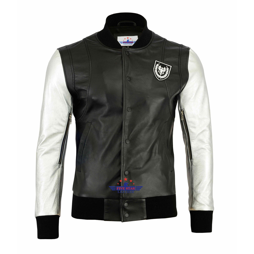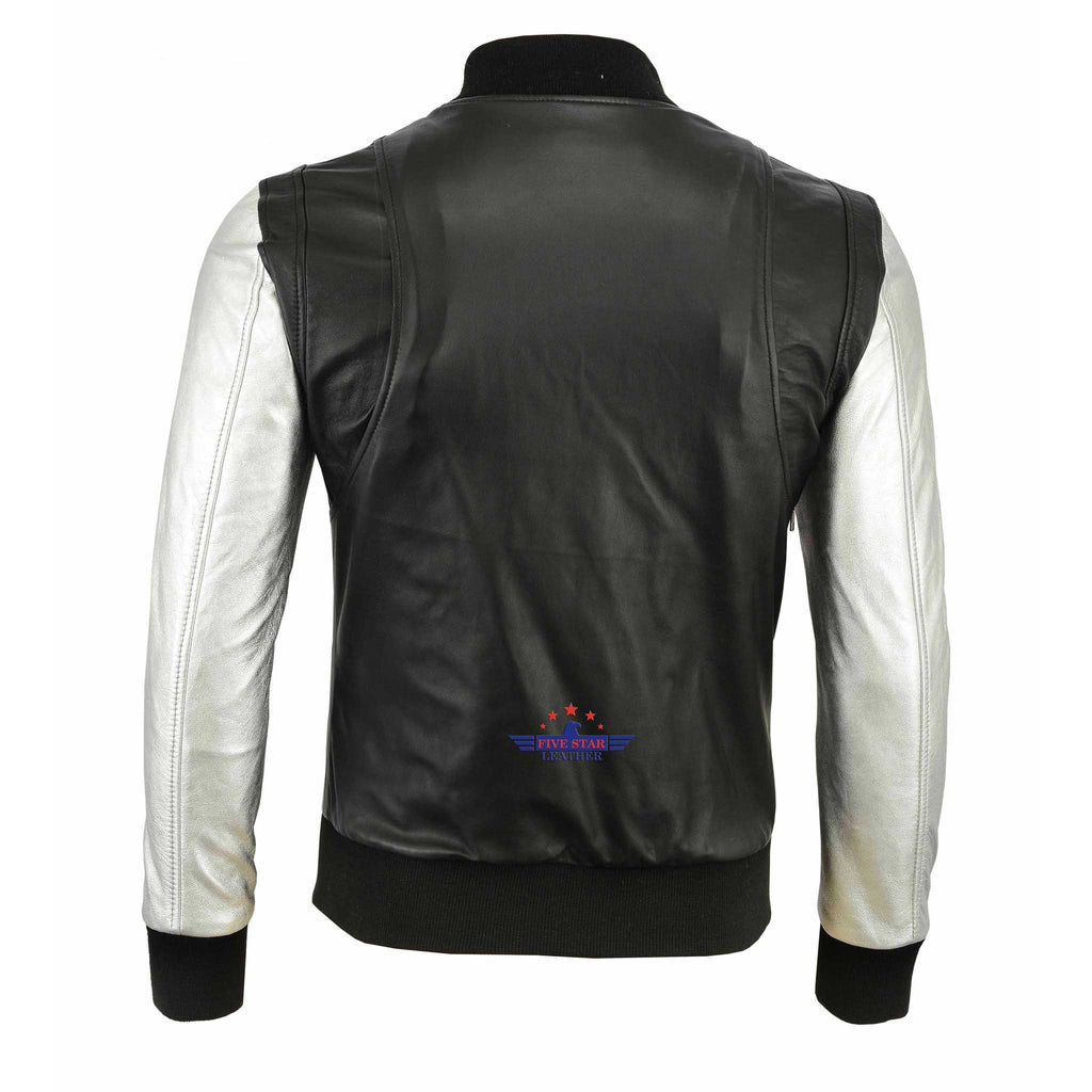 Justin Bieber Silver sleeves Taddy Real Leather Jacket for men Bomber Fashion