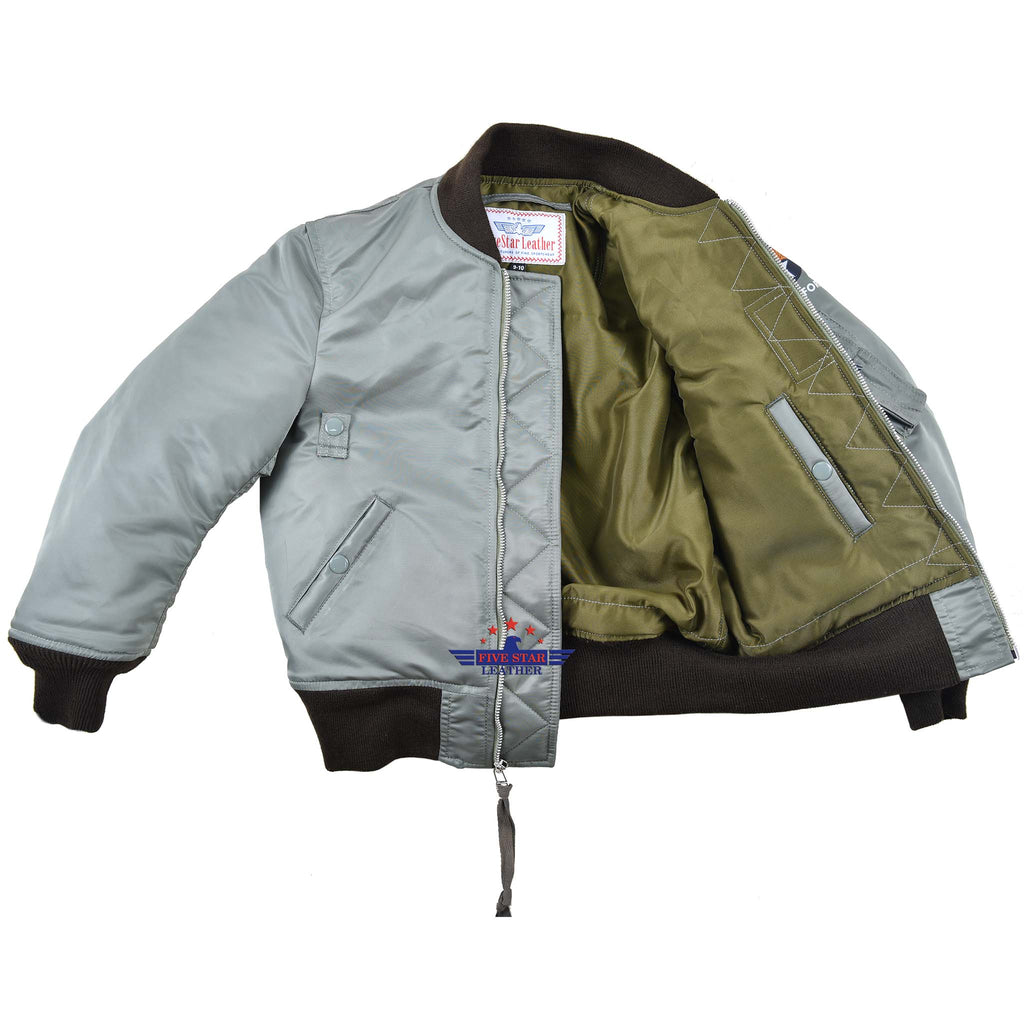 FiveStar Leather MA-1 Kids Flight Jacket Sage Green Nylon