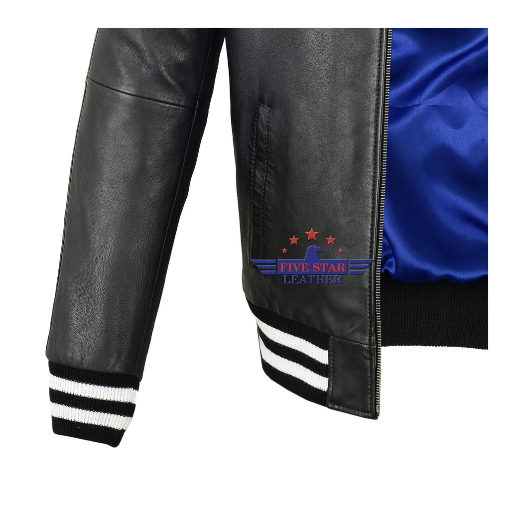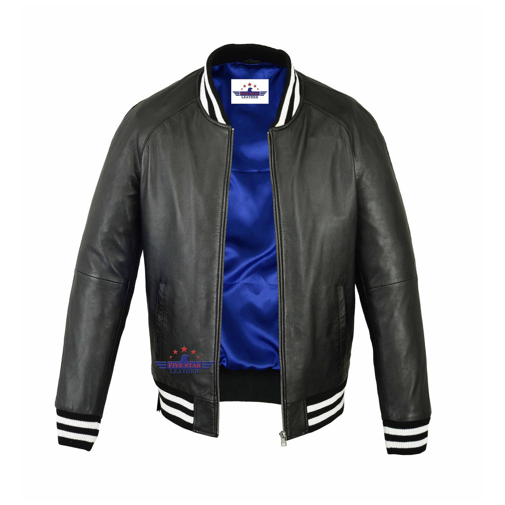 Men Real Soft Lamb Leather Varsity Baseball Bomber College Raglan sleeve Jacket