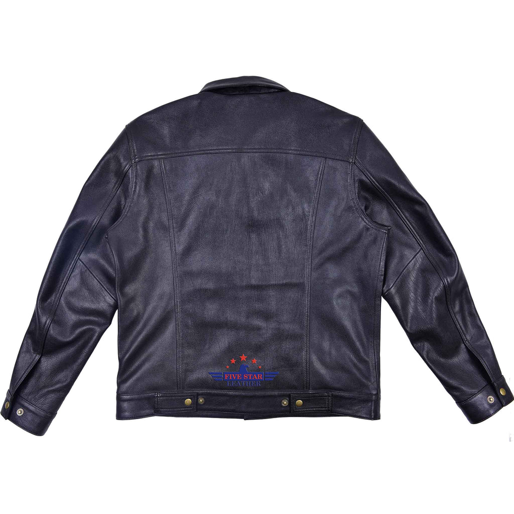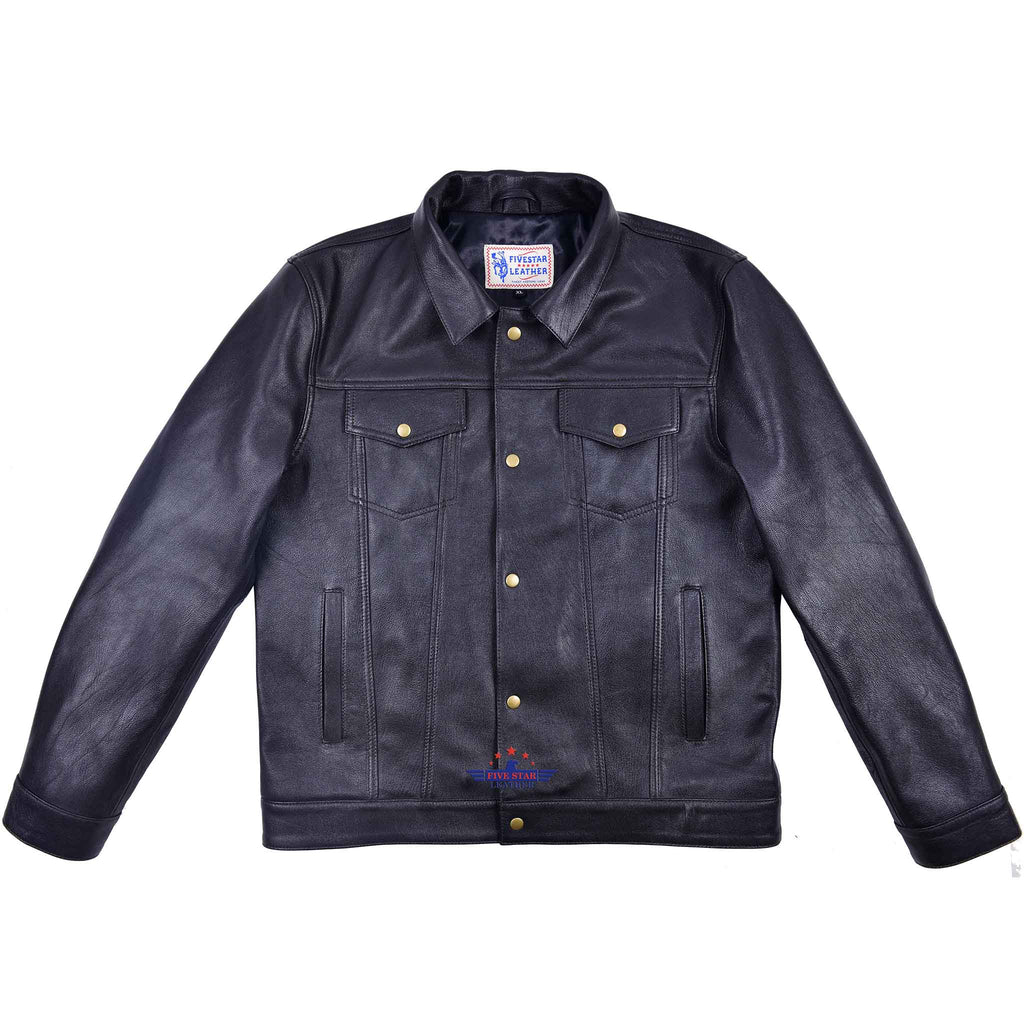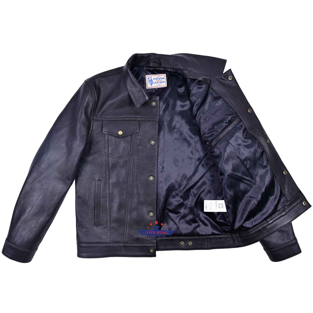 Men TRUCKER Real Goatskin Classic Western Denim Style Dark Brown Leather Jacket