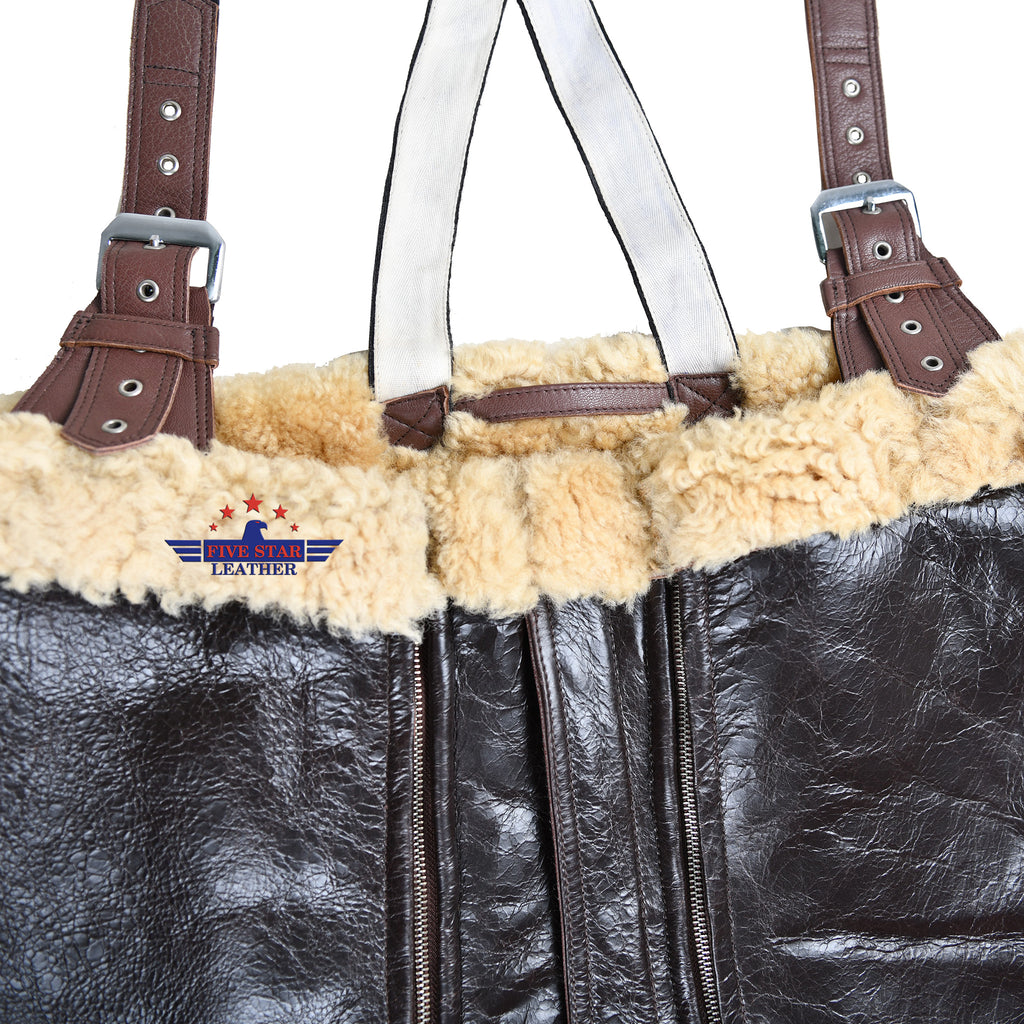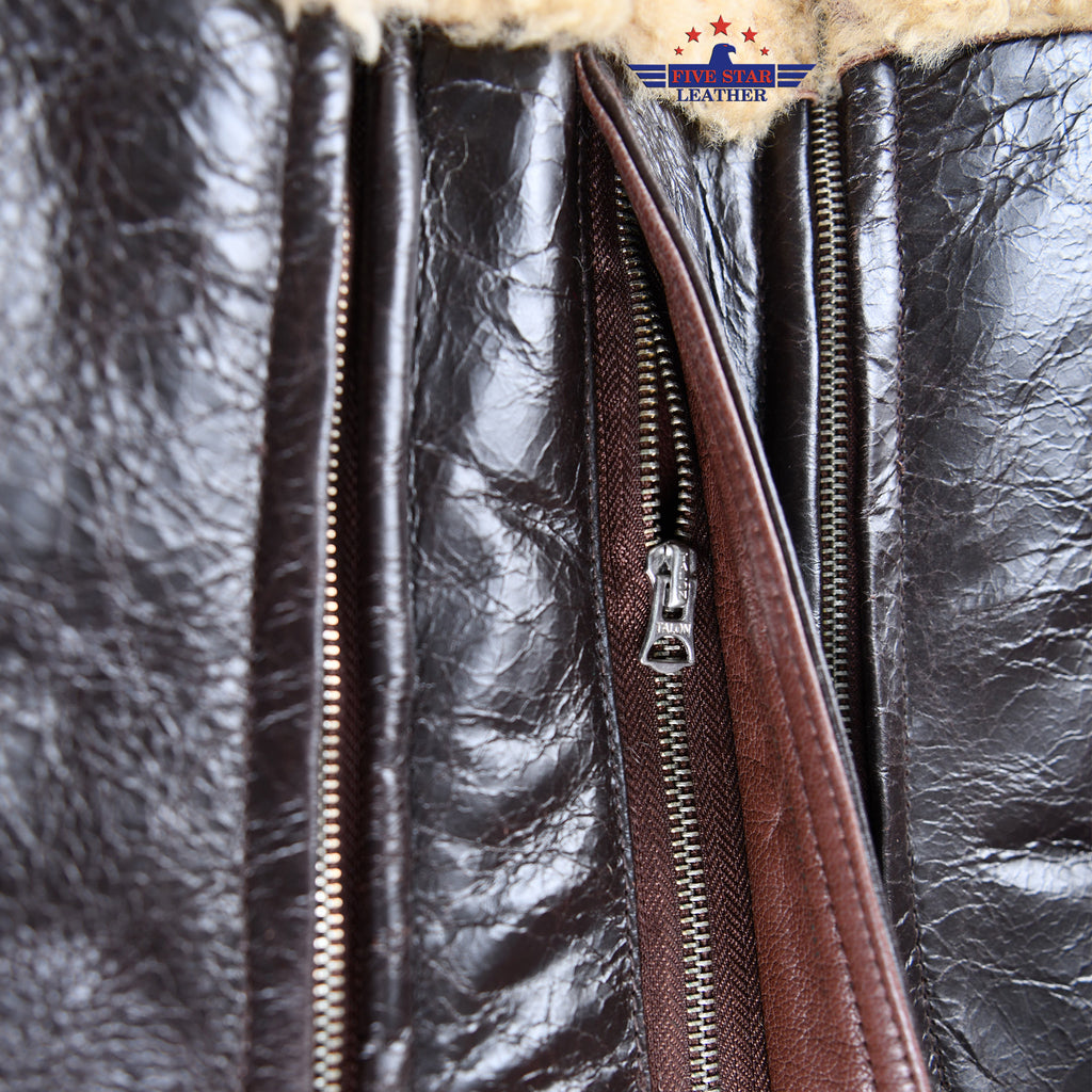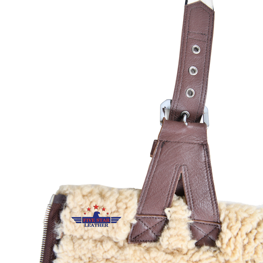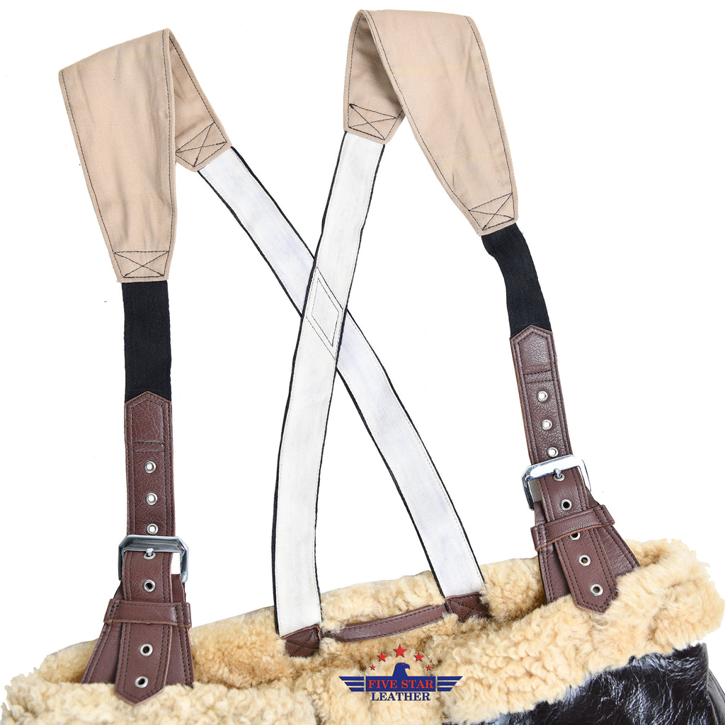 FiveStar Leather Repro Winter U.S. NAVY M-446 Monarch Mfg. Company Contract NOS. 87667 Flying Trouser's, made from High Quality DTM Color Sheepskin outer shell Seal Brown with proper inside fleece color and fleece thickness as 22mm, Have the Long Zippers fastening, and the original Design High quality Brass buckles with Nickle color outside finish. Adjustable Straps for better Comfortable fit. These Trousers are compatible with the M445A flight jackets worn by gunners, Radio Operators and other Personnel. These Trousers are normally available in sizes 36 - 46 , and can only be made on custom request, and for these trousers Orders we have no return policy.