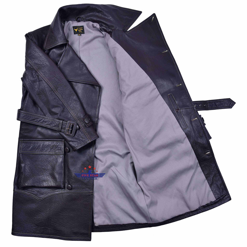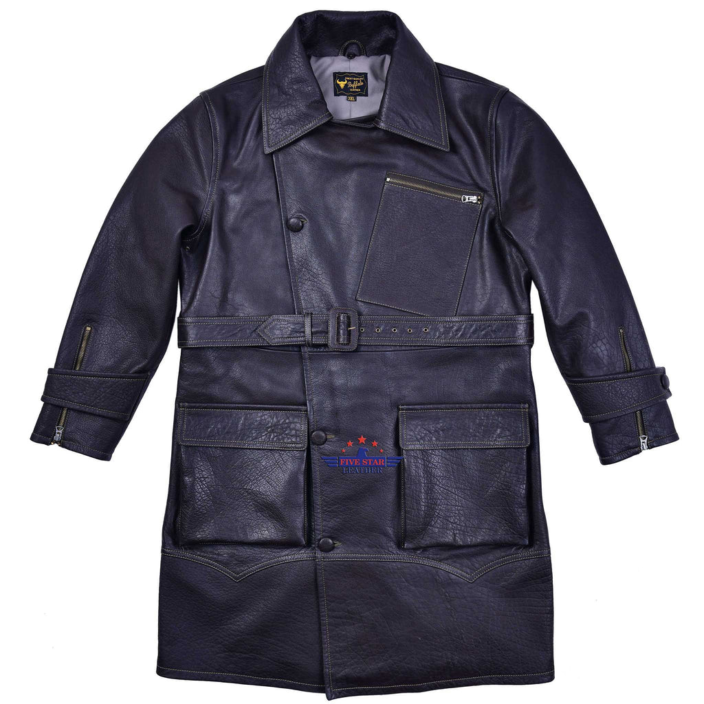 Fivestar Leather Men Fashion Trench Coat Buffalo Seal Brown