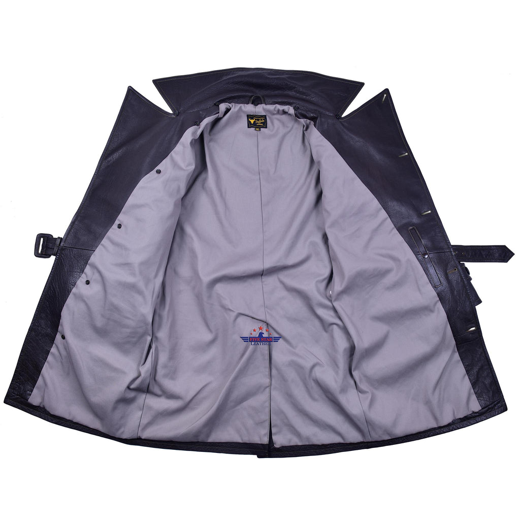 Expertly crafted from premium grade 1.2 mm Buffalo leather, this trench coat boasts superior quality and durability. The hand-stitched button closure and adjustable belt add a touch of sophistication. With two front pockets and a lined interior pocket, this coat also offers practicality. The high quality cotton lining and impeccable stitching make this coat both stylish and long-lasting. Available in all sizes upon request, and a diverse range of styles and colors are stocked.