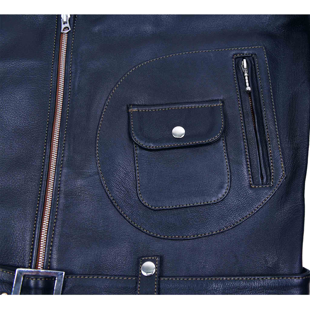 FiveStar Leather Vintage Reverse D Pocket Road Master Men Jacket Black Goatskin