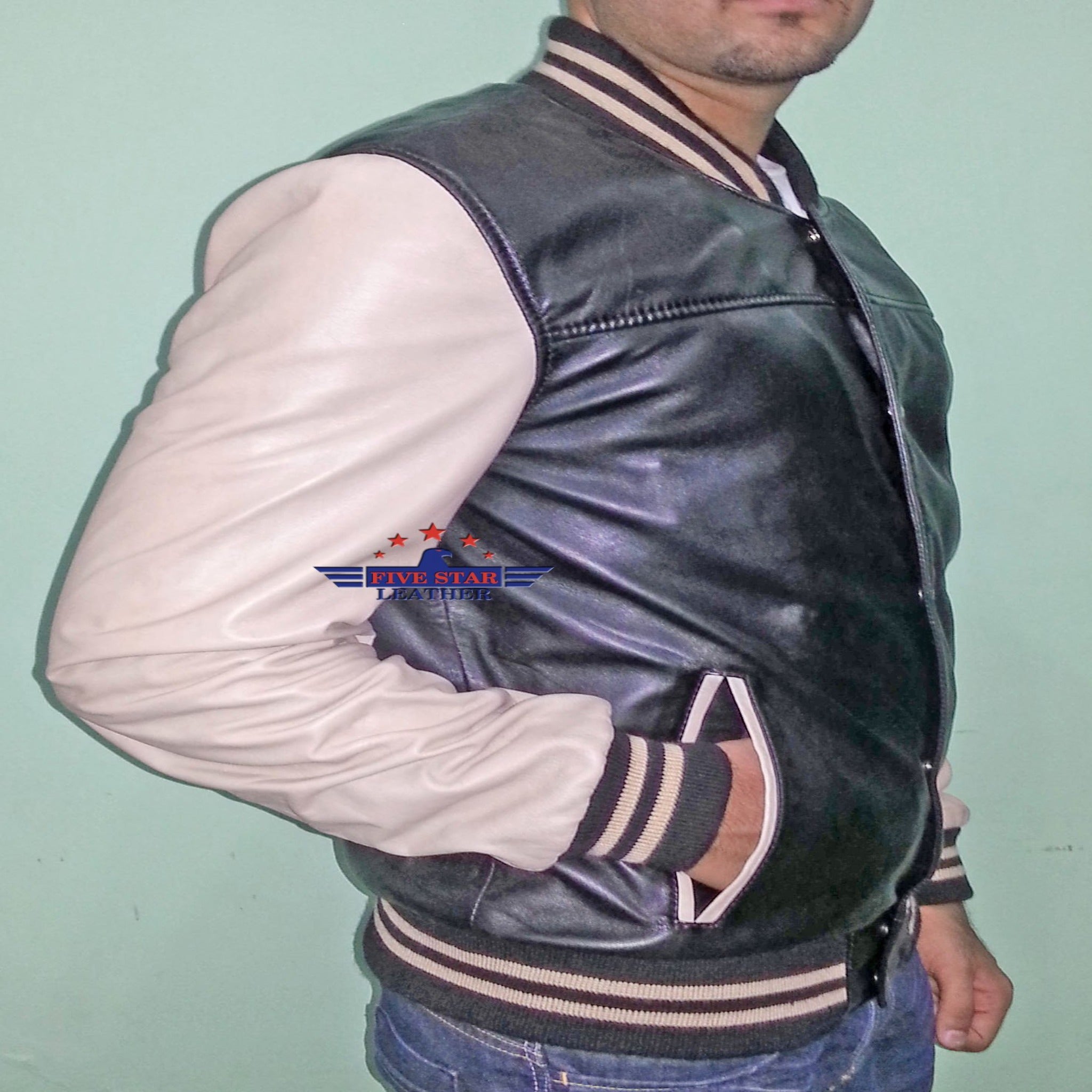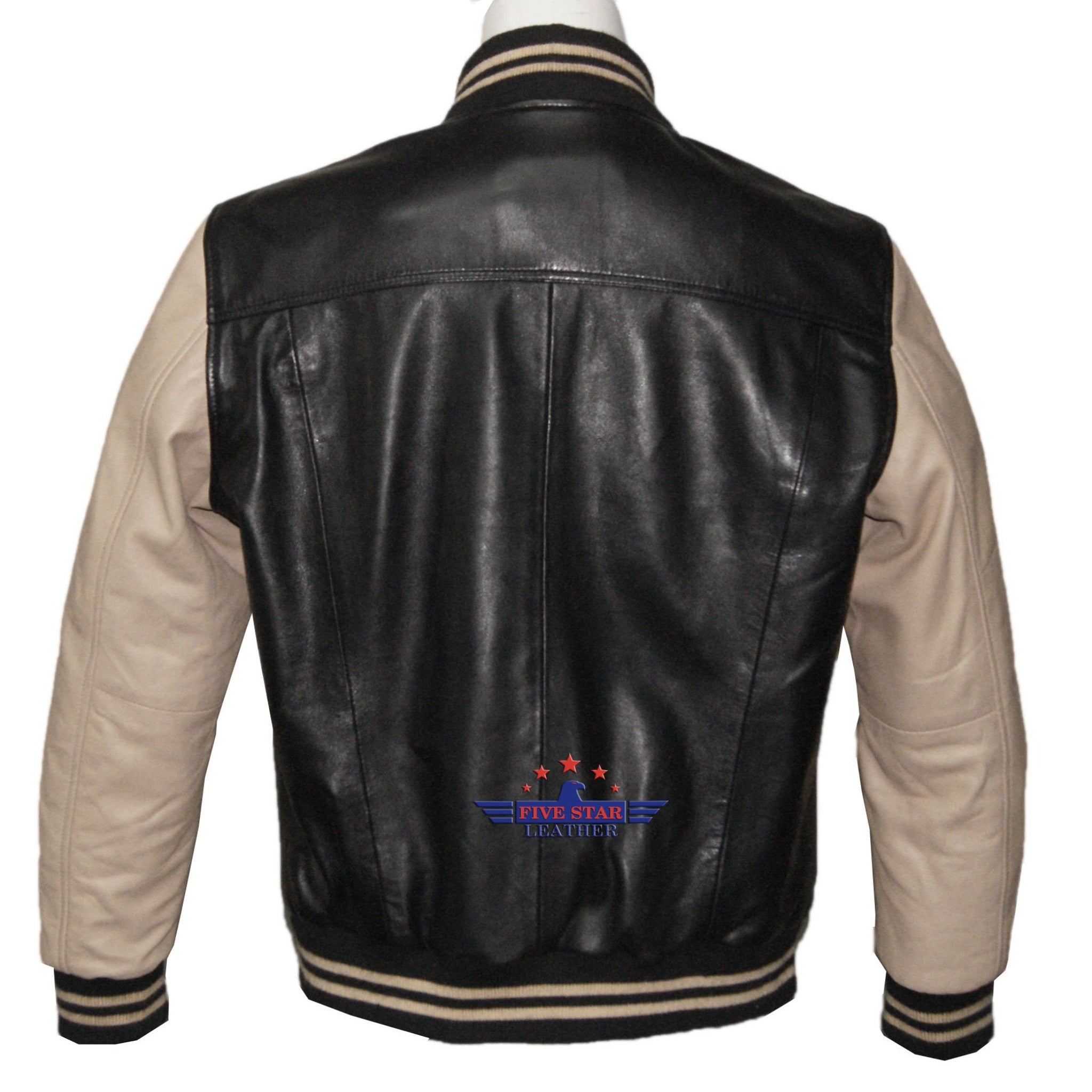 Men Real Soft Lamb Leather Puffer Varsity Baseball Bomber College Jacket School