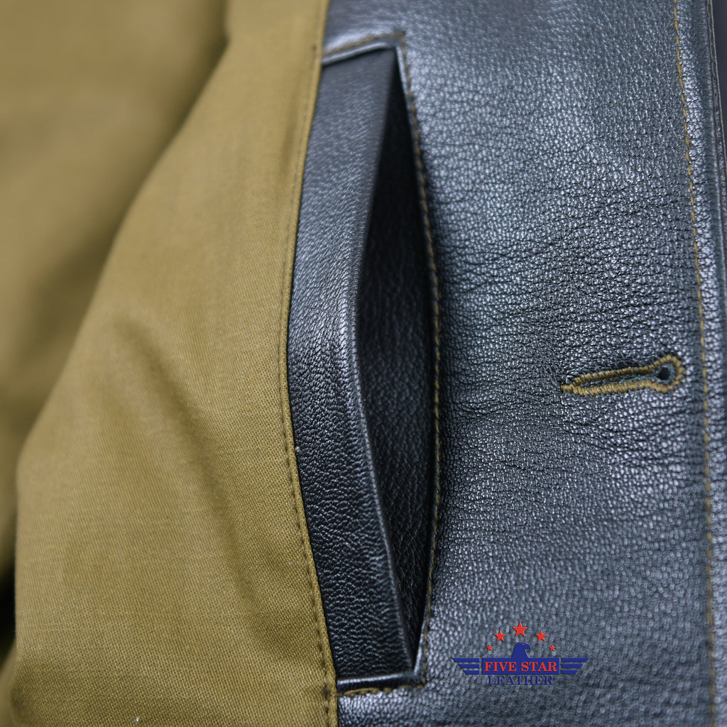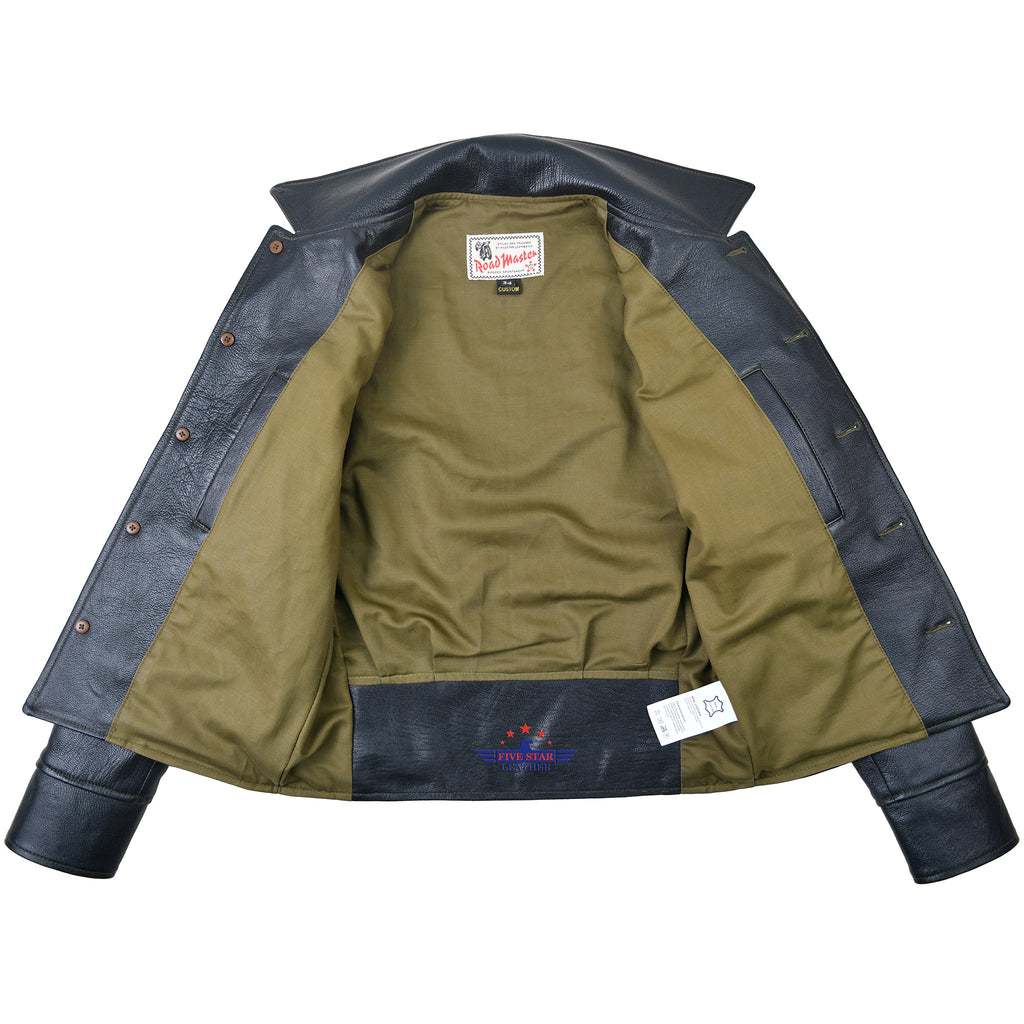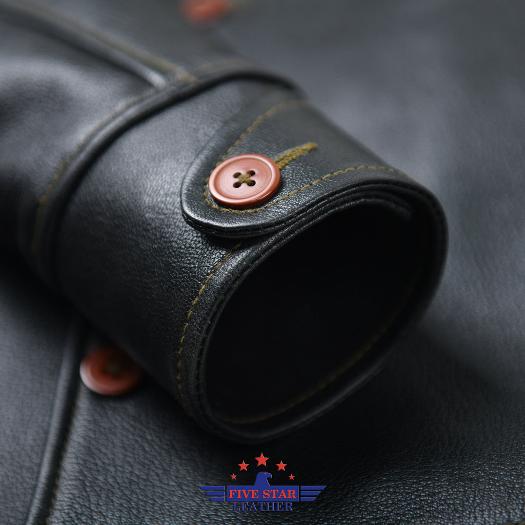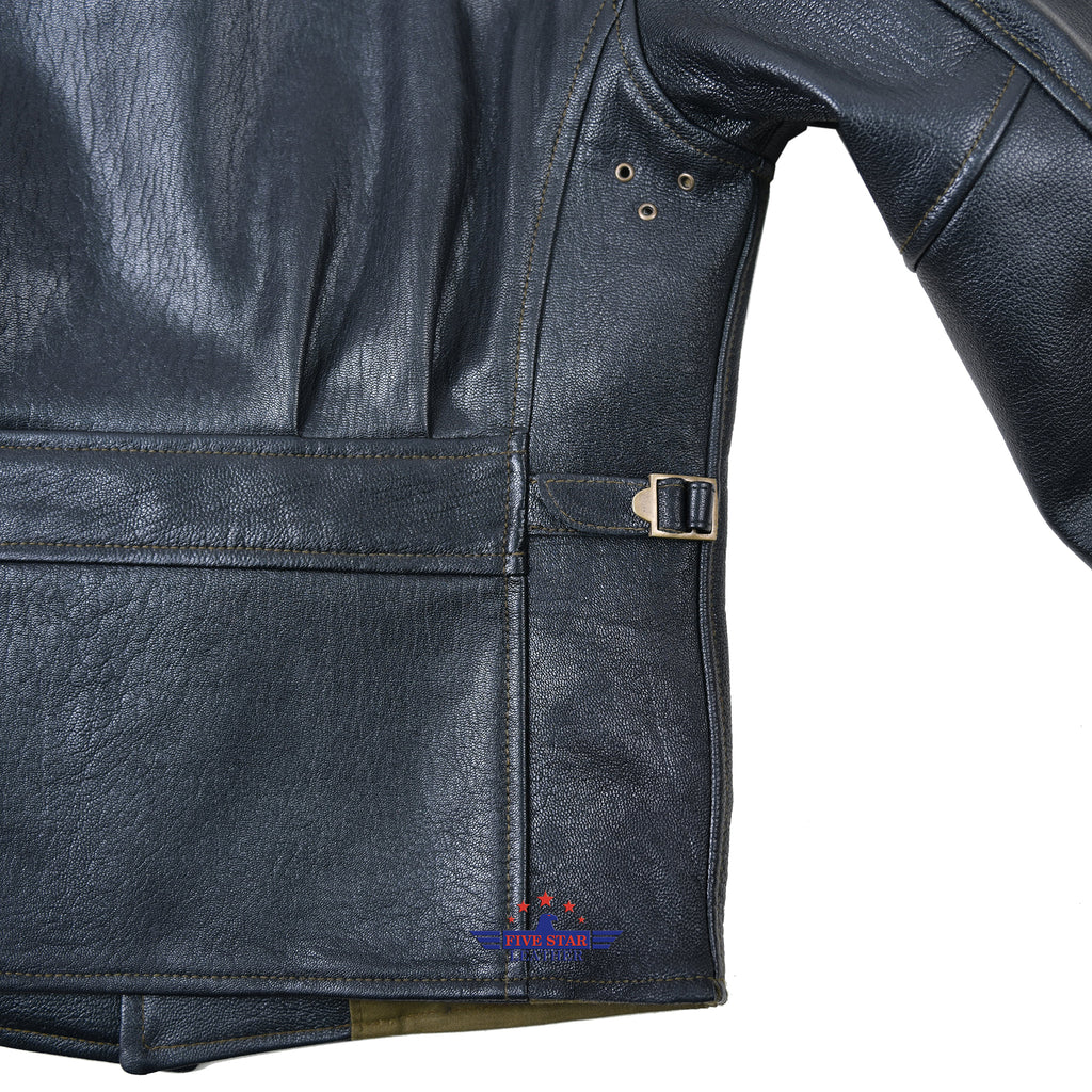 FiveStar Leather Half Belt Goat Leather Black Jacket