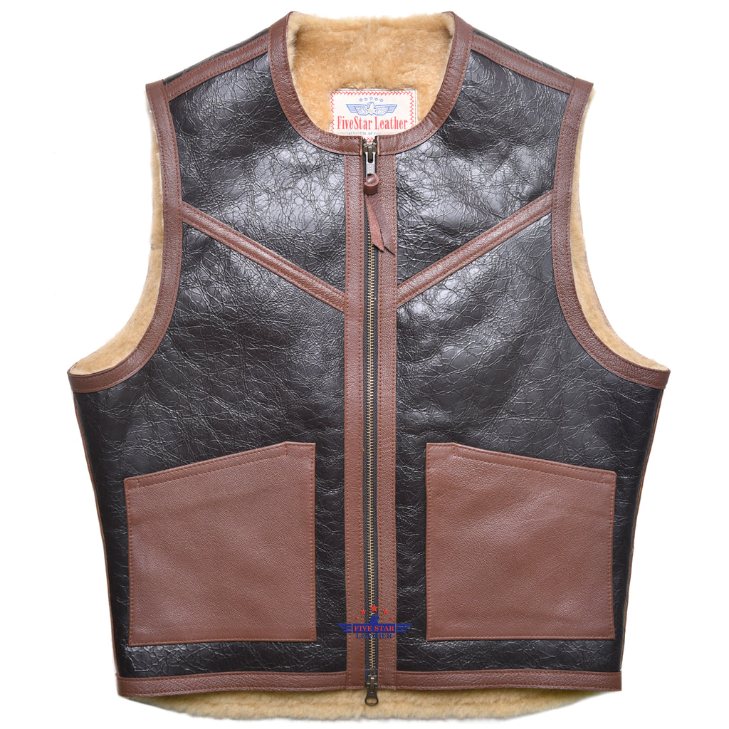 FiveStar Leather Repro Aviator Vest Seal Brown