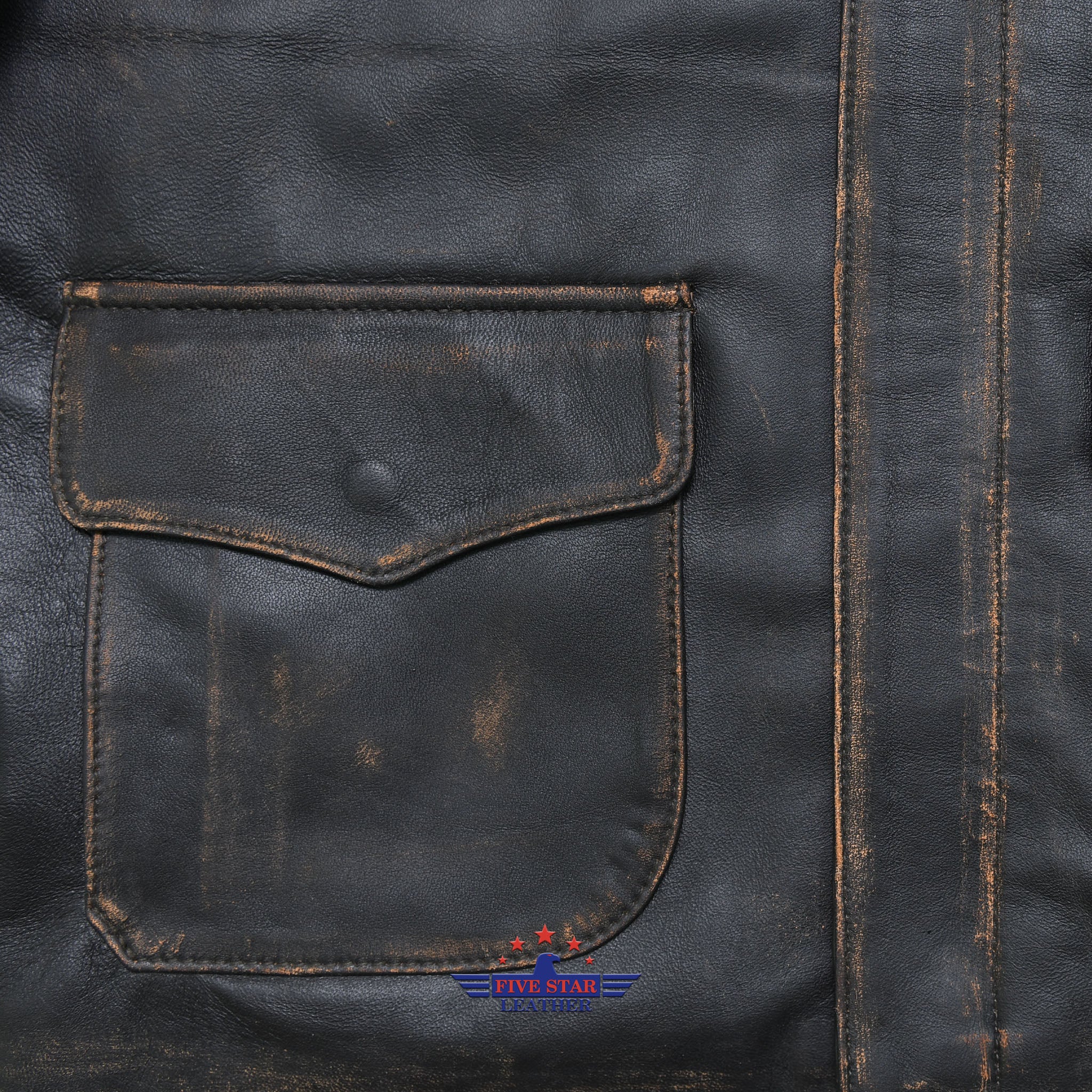 The FiveStar Leather Holy Grail Hunter Jacket is crafted with High-quality Full grain Capeskin leather Seal Distressed in a classic . This vintage-style jacket features a Y.K.K zipper, two front flap pockets and Side Entry Pocket, and one interior lining pocket for optimal storage. Elevate your style with the FiveStar Leather Holy Grail Hunter Jacket. Indulge in the finest Capeskin Seal Brown leather, creating a jacket that exudes sophistication and elegance. With a Y.K.K zipper and multiple pockets for storage, this vintage-style jacket is the epitome of luxury and convenience. Experience only the best with FiveStar.