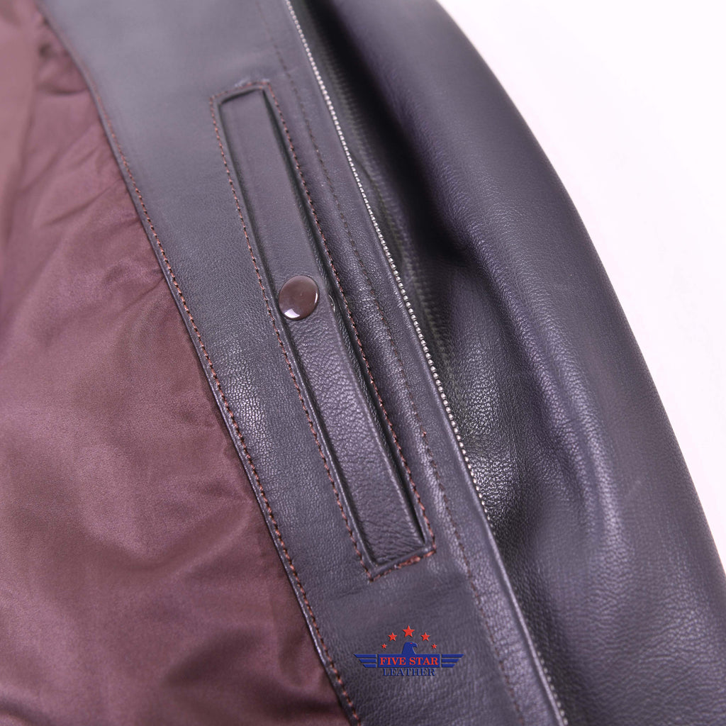 This G-1 Flight Jacket Reproduction (BUAER 55j14 – N-383S-20445) features an original Talon vintage zipper and a US Navy specification rayon lining for authentic wear. It includes a genuine mouton reddish russet brown fur collar and 100% Seal Brown wool knit cuffs made in the USA. Designed with functional details like press snaps, armpit gussets with vintage eyelets, a pen slot in the left pocket, U.S.N. stencil behind the collar, and a bi-swing pleated back for comfort. The inside pocket is crafted from unbleached cotton drill. Made from premium goatskin leather, it’s finished with expert stitching and carries a U.S. trademarked design, imported to ensure quality and authenticity.