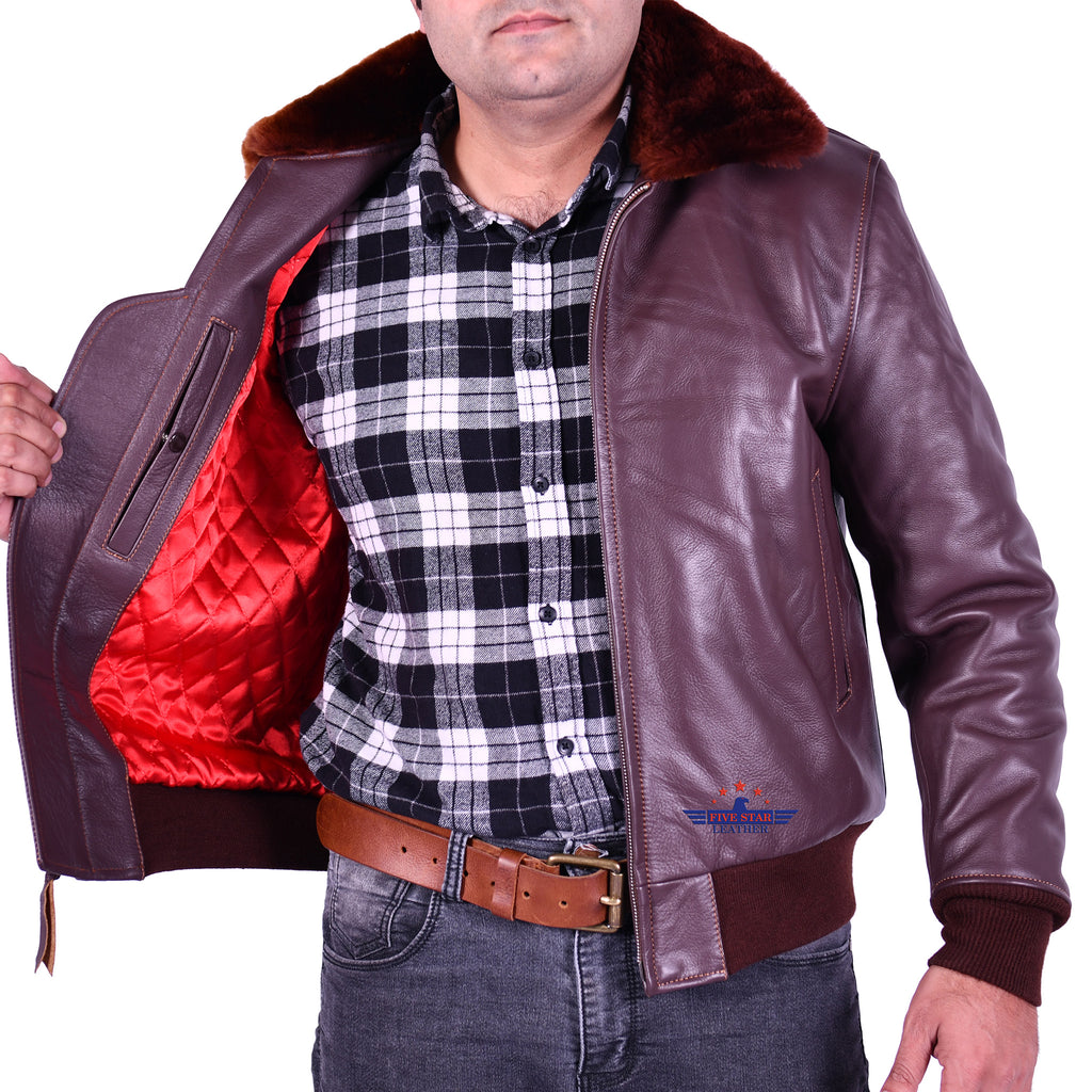 Men Sky King Wind Breaker Jacket Real Steerhide Leather Mouton Fur Collar
