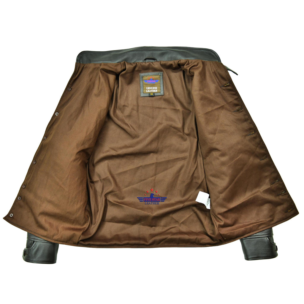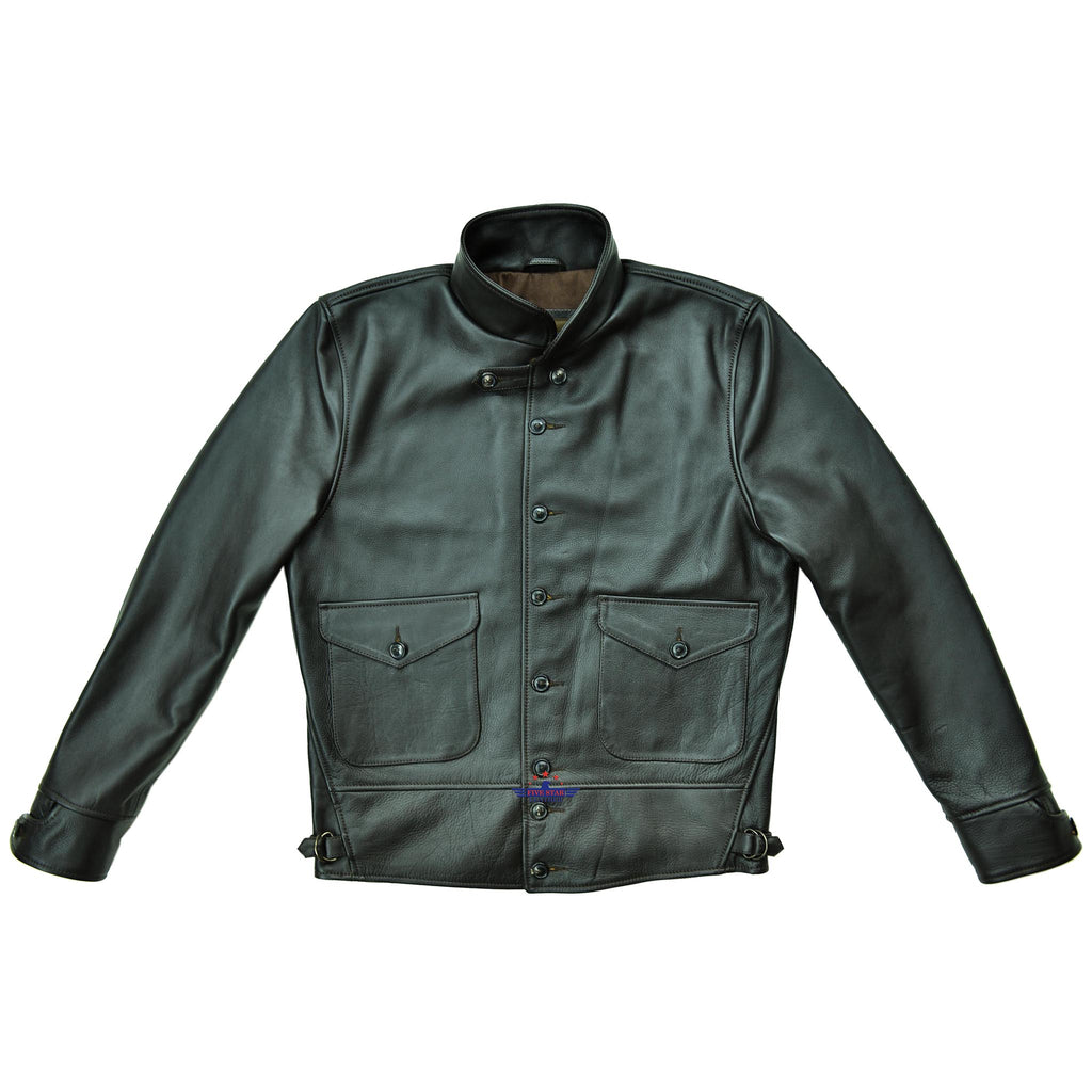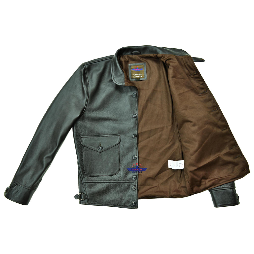 Men's Repro 1930's Vintage Cossack Real Seal Brown Cowhide Leather Jacket