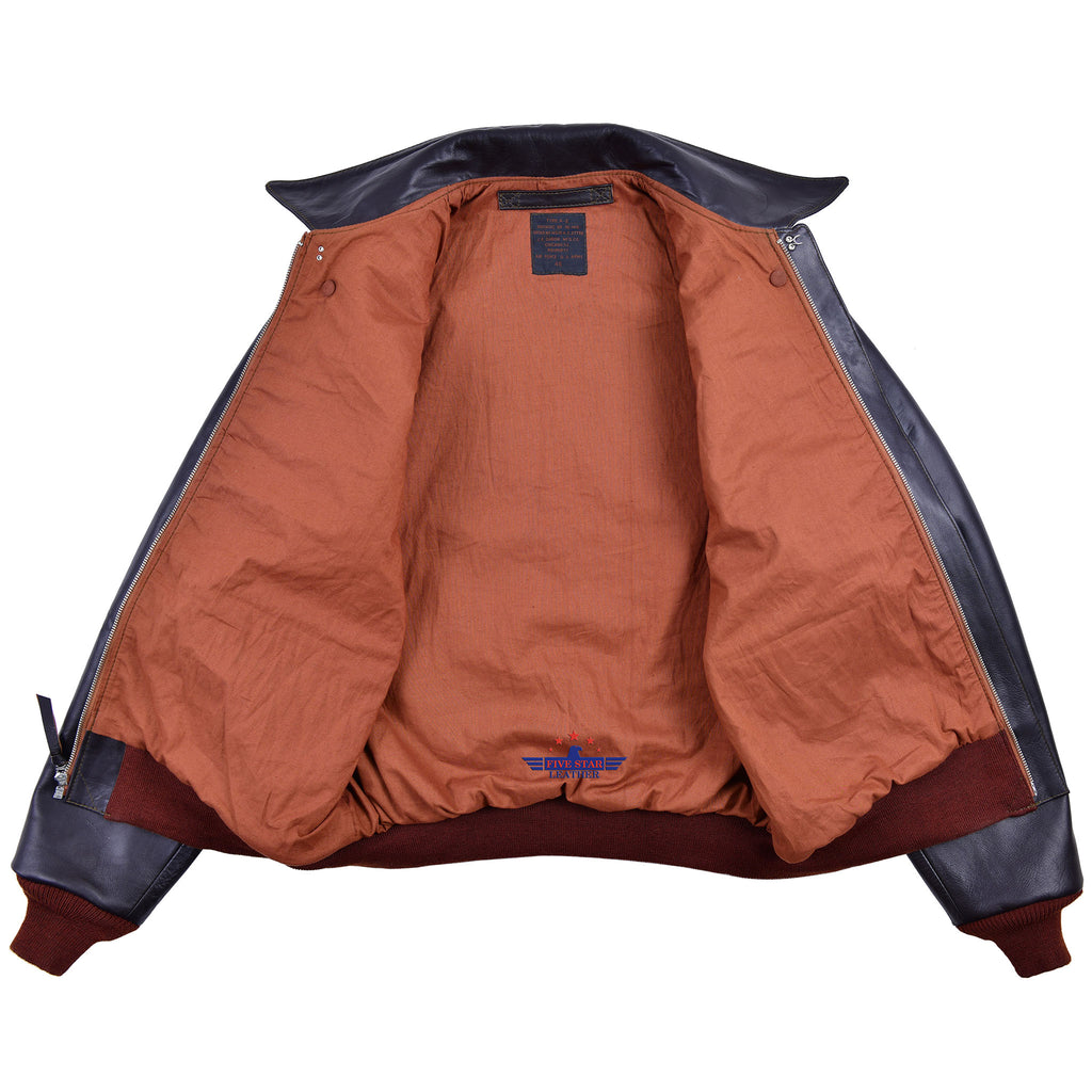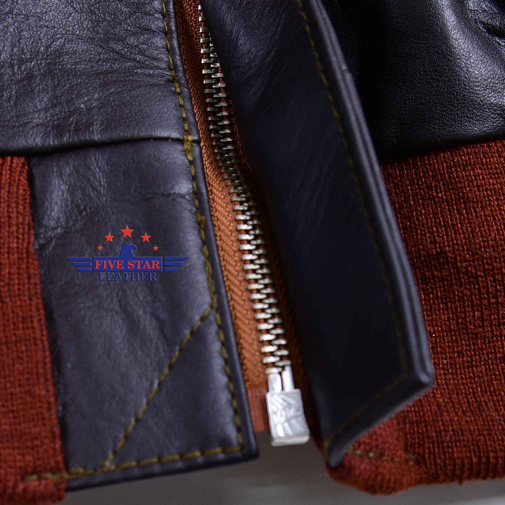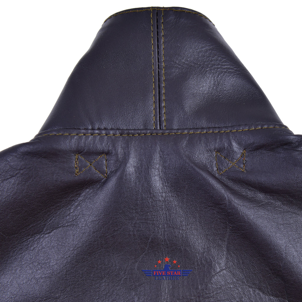 FiveStar Leather Repro Dubow A2 Leather Flight Jacket made from our Special Horsehide Leather Veg. Tanned, 100% Real Blend wool acrylic Knitting's In Dull Purple Original DTM Color, Olive Green Thread Stitching, Repro Talon Zipper Fastening, 100% Cotton lining true to original Color, and this A2 Jacket have the true and Authentic Pattern Details of A2 J. A. DUBOW MFG. Co. Drawing No. 30-1415, Order No. W535 A.C. 27798