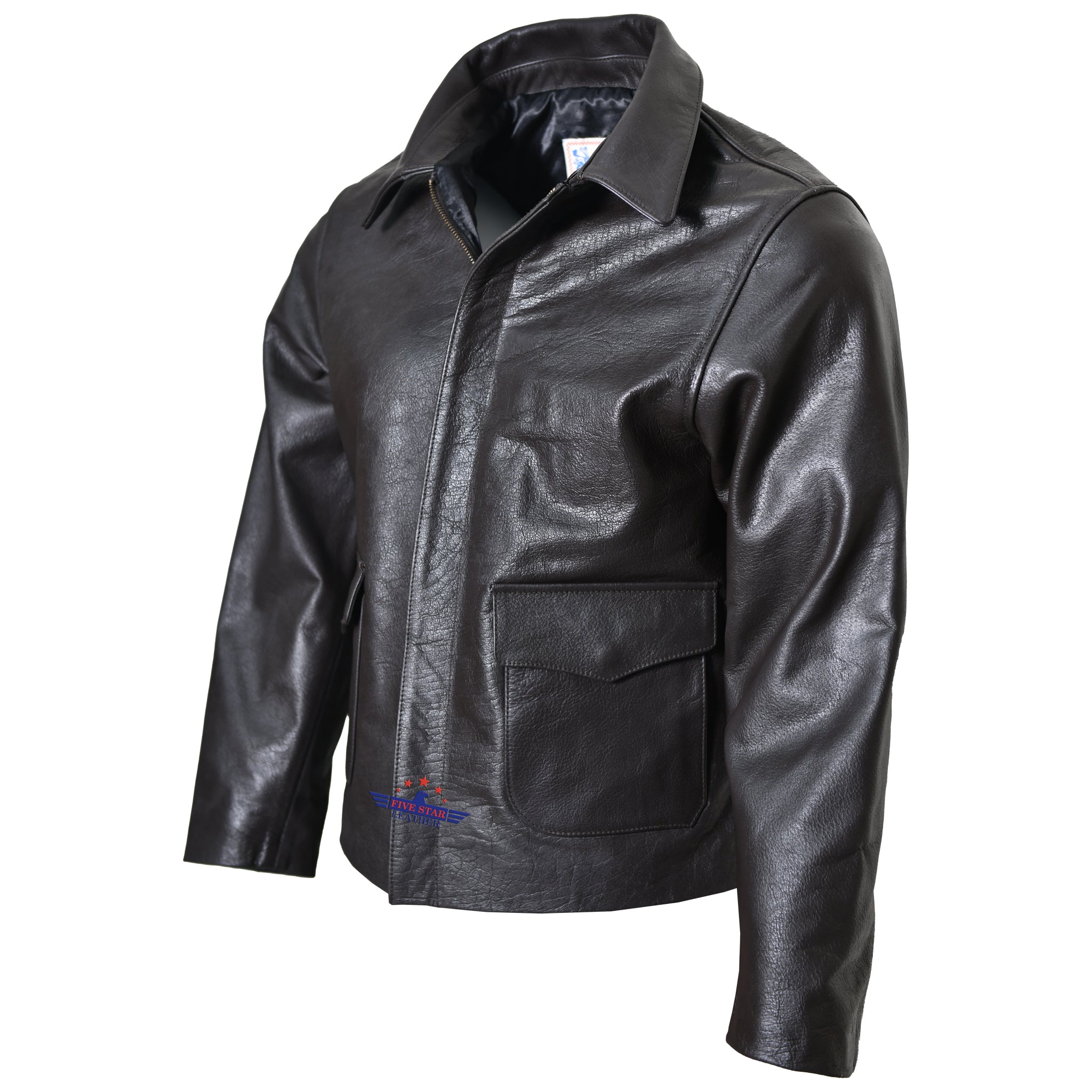 The FiveStar Leather Holy Grail Hunter Jacket is crafted with High-quality Full grain Buffalo leather Seal Brown Leather . This vintage-style jacket features a Y.K.K zipper, two front flap pockets and Side Entry Pocket, and one interior lining pocket for optimal storage. Elevate your style with the FiveStar Leather Holy Grail Hunter Jacket. Indulge in the finest Buffalo Seal Brown leather, creating a jacket that exudes sophistication and elegance. With a Y.K.K zipper and multiple pockets for storage, this vintage-style jacket is the epitome of luxury and convenience. Experience only the best with FiveStar.