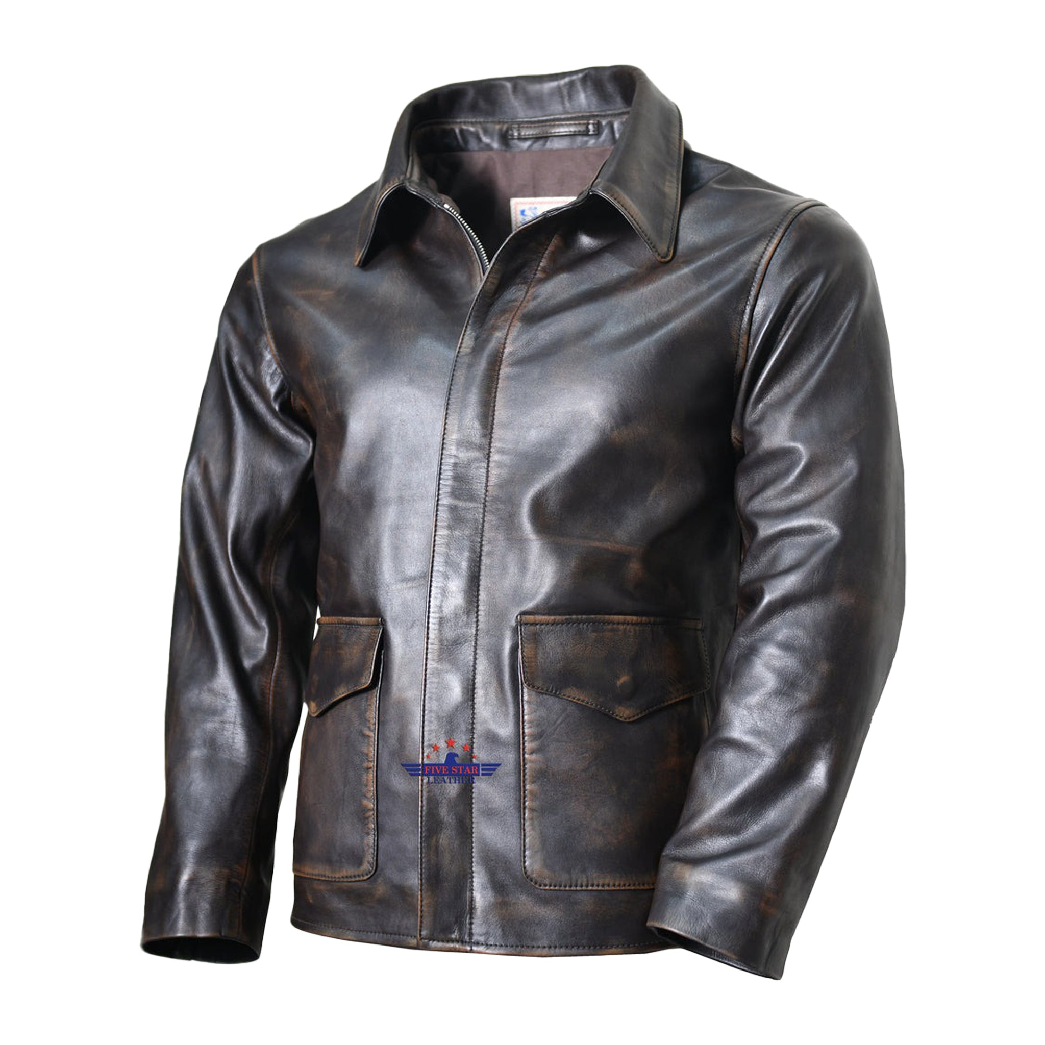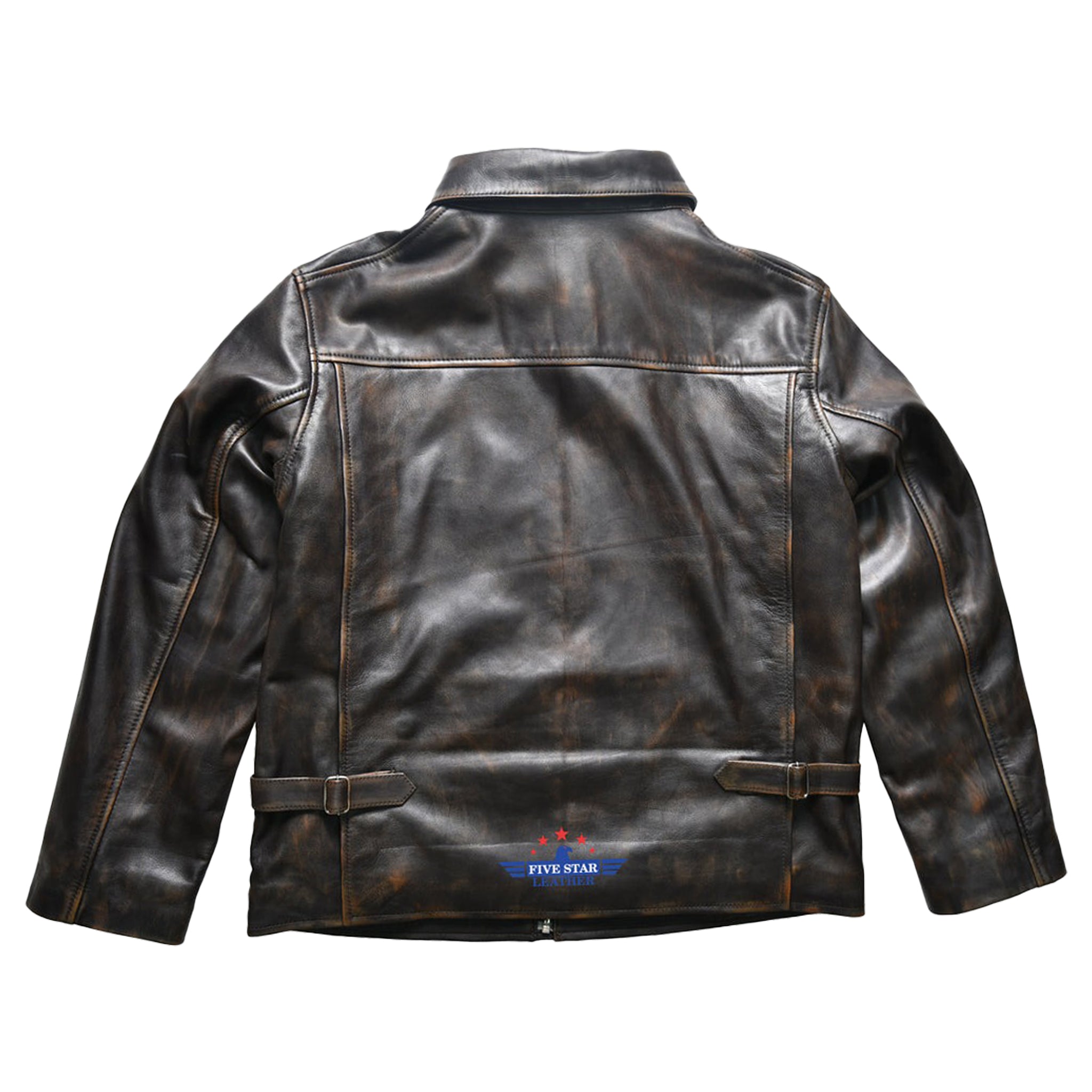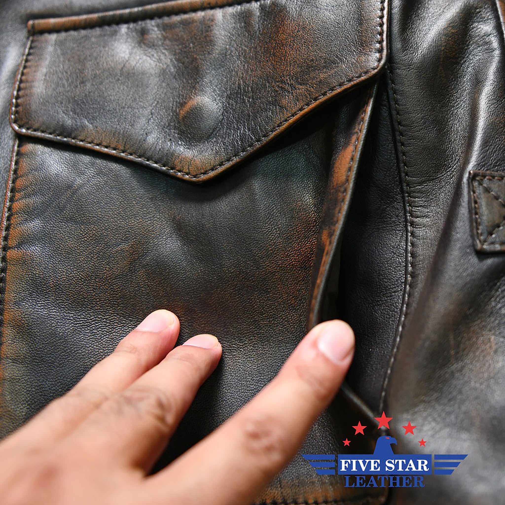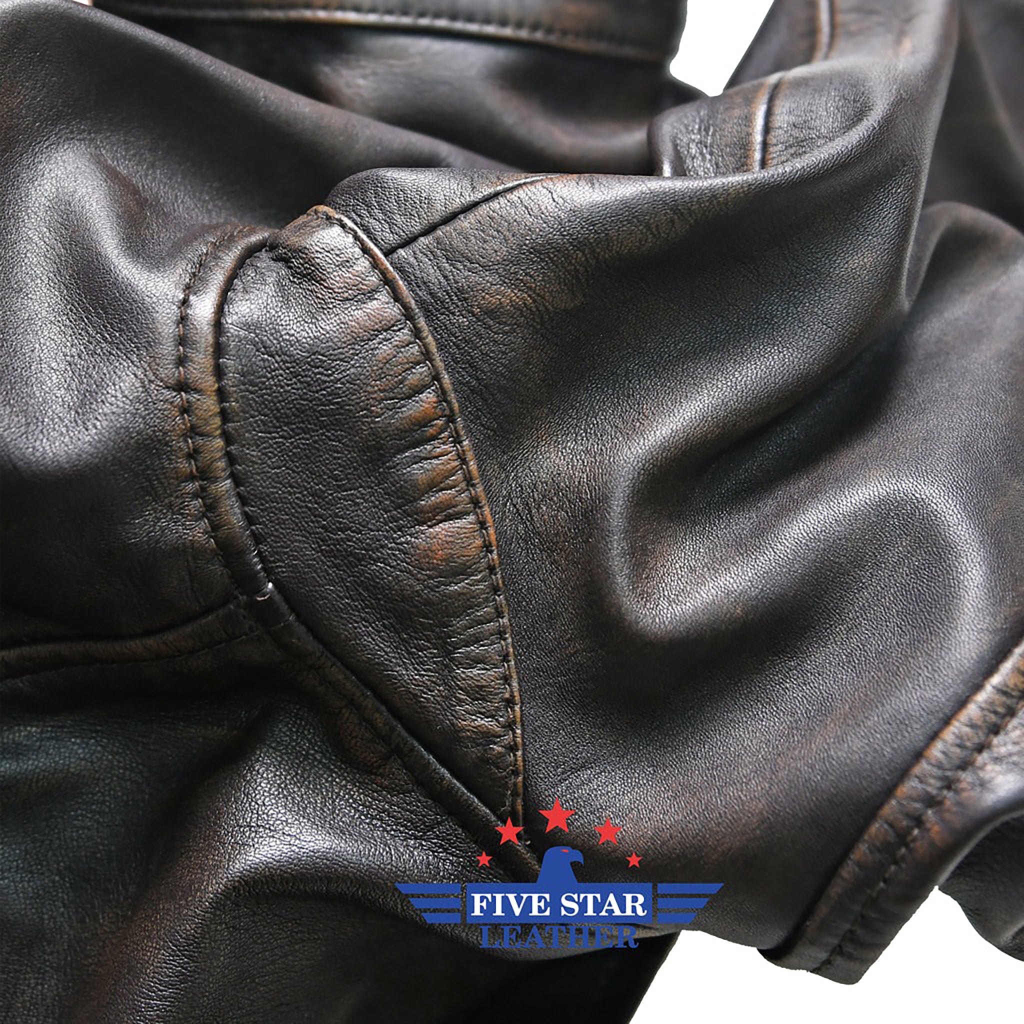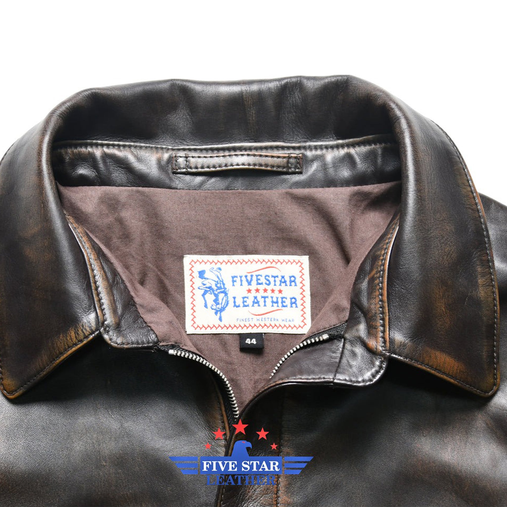 FiveStar Leather Men Adventurer Jacket Capeskin Seal Brown Distressed