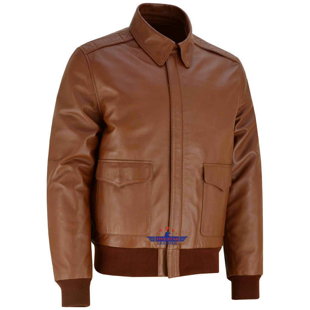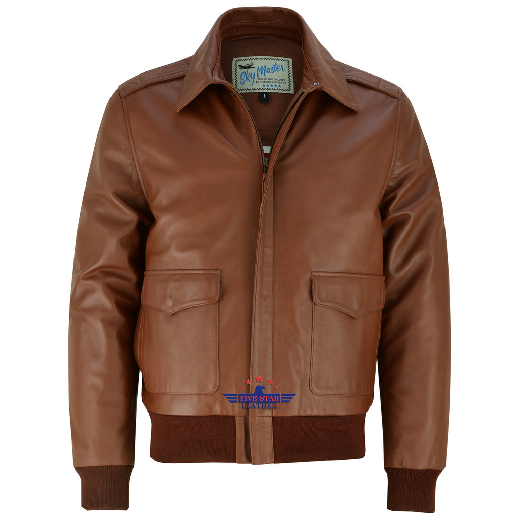 Indulge in the ultimate luxury with our Men's Air Force A-2 Capeskin Leather Flight Bomber Jacket, crafted from exquisite Reddish Cognac Capeskin Leather and lined with high-quality cotton. Featuring a front zipper fastening, this jacket is a true masterpiece in both style and functionality. Embrace sophistication and elegance with our FiveStar Leather Type A2 Jacket.