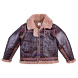 Men's Classic B-3 WWII Real Sheep Shearling Bomber Pilot US Jacket Seal Brown Facings