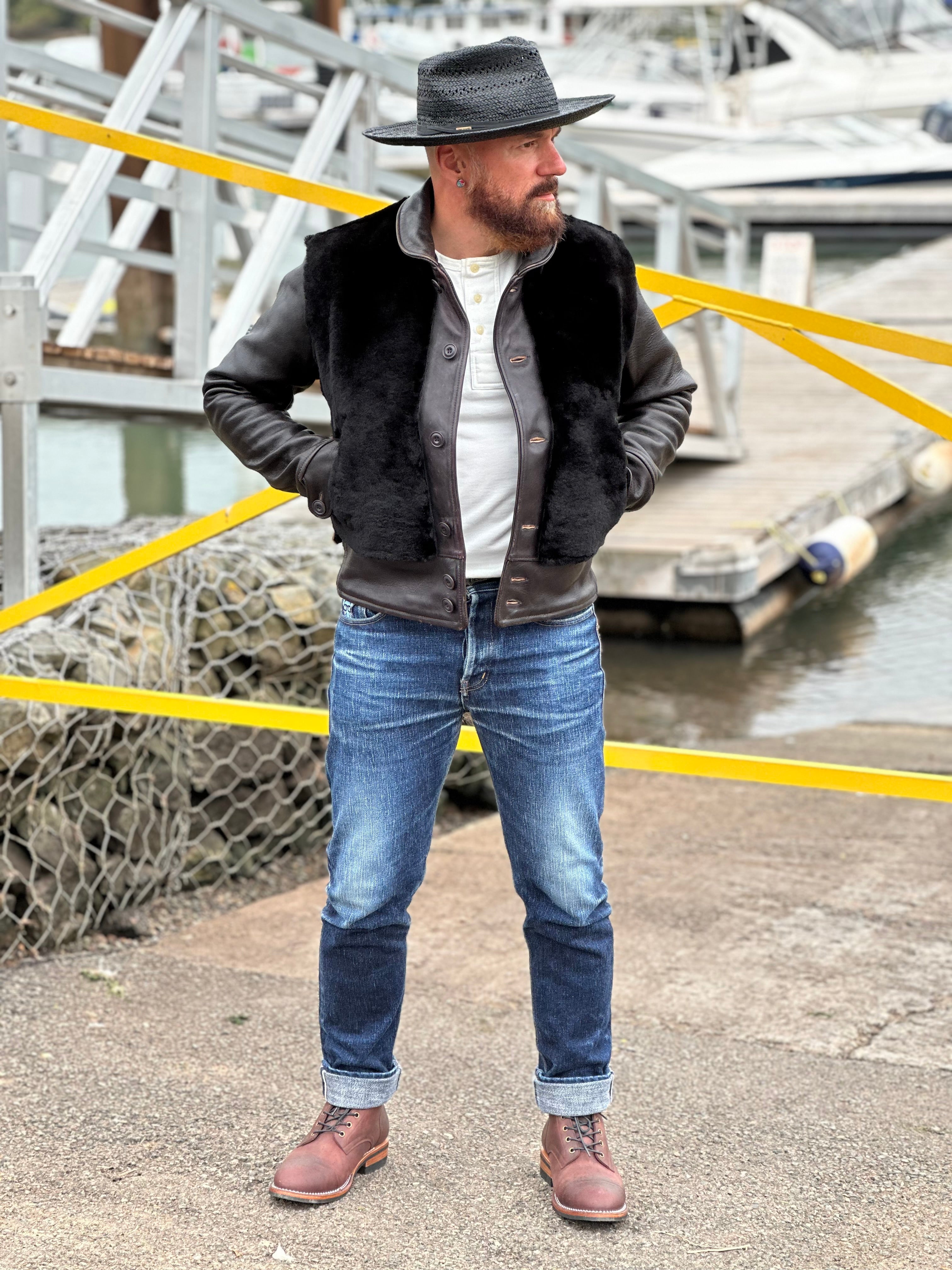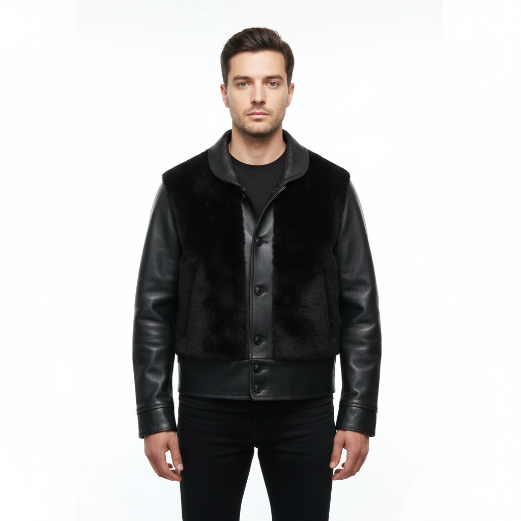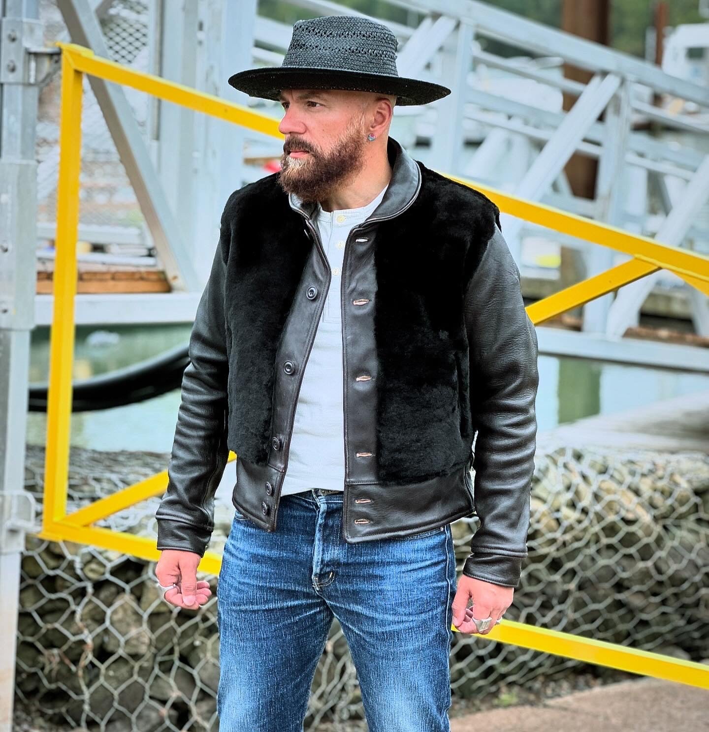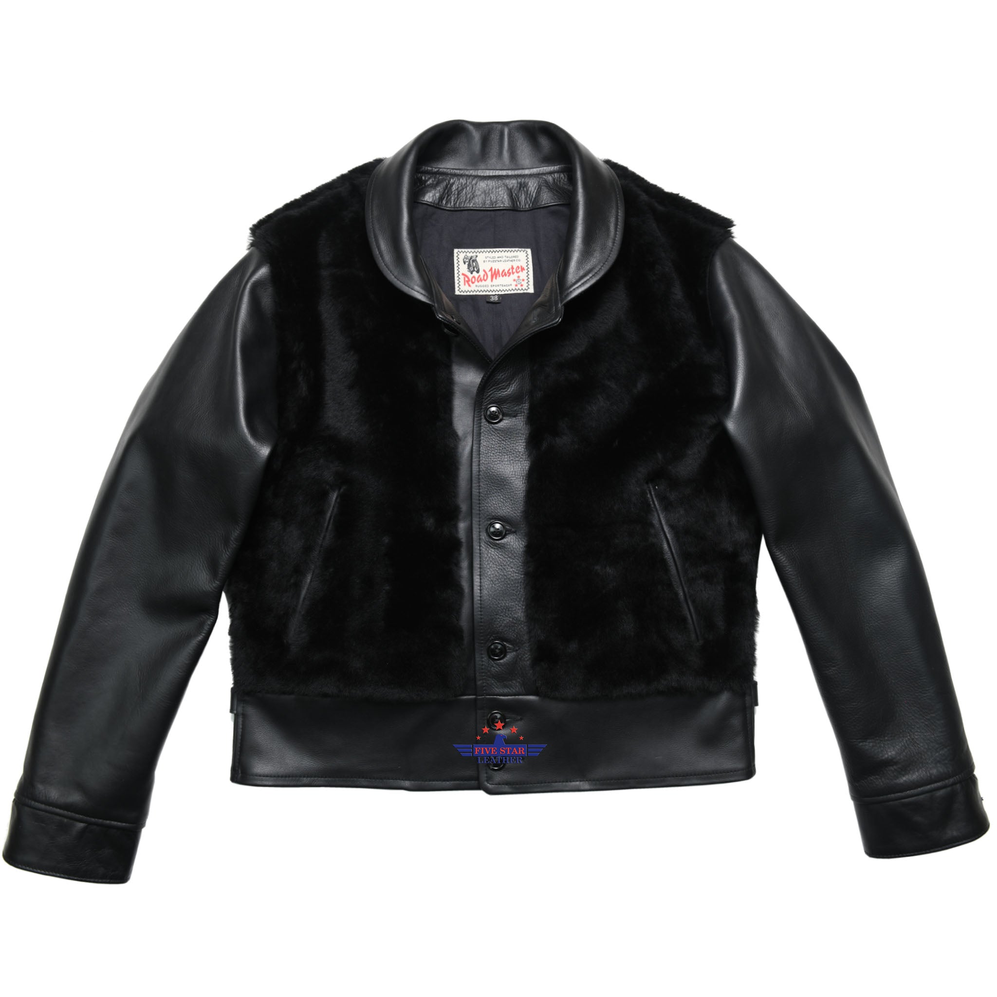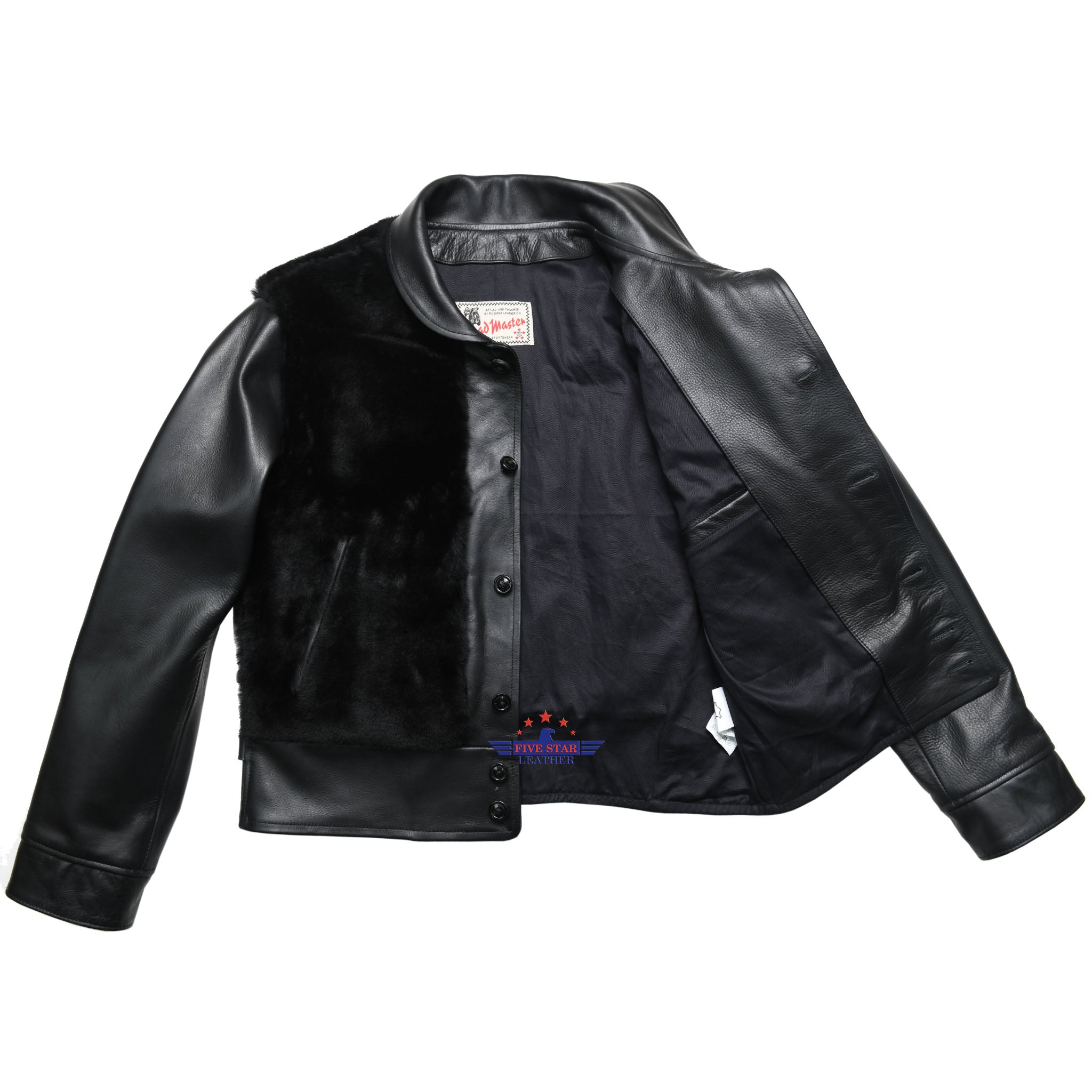 Indulge in luxurious style with FiveStar Leather's 1930s Grizzly Jacket. Handcrafted with genuine Horse Hide black leather With Mouton Fur Black, it has the back sheepskin panels. The 100% cotton lining ensures unrivaled comfort while the Horn Buttons closure and Brass Buckles add a touch of vintage charm. Custom sizes available for a perfect fit.