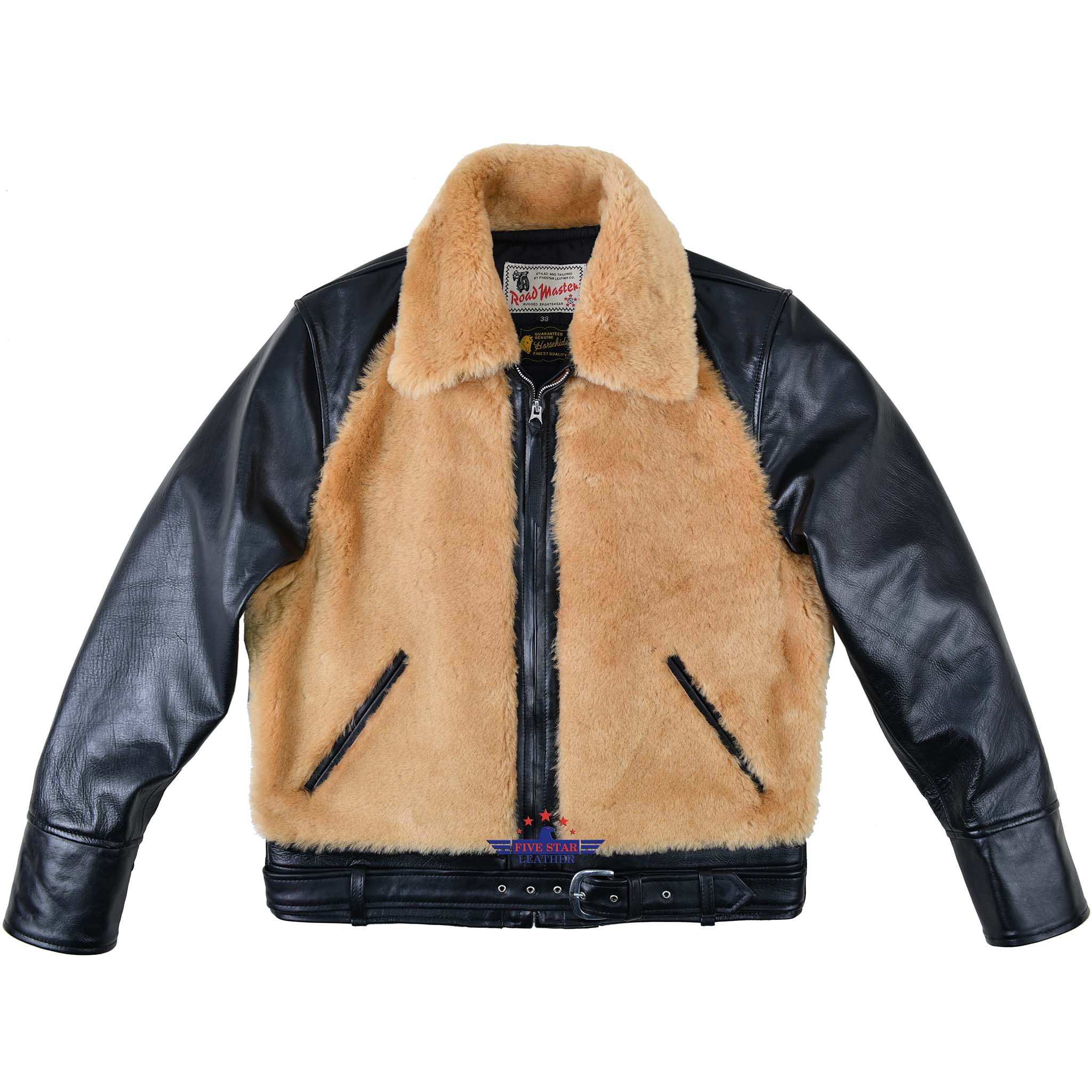 FiveStar Leather 1930s Grizzly Jacket Blonde Fur with HorseHide Black Leather